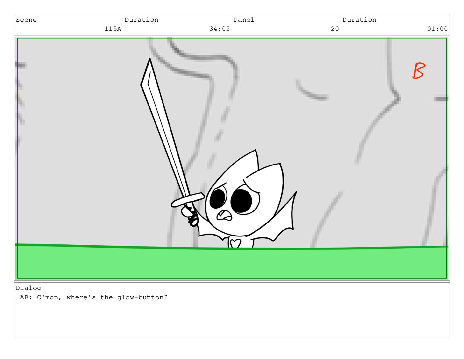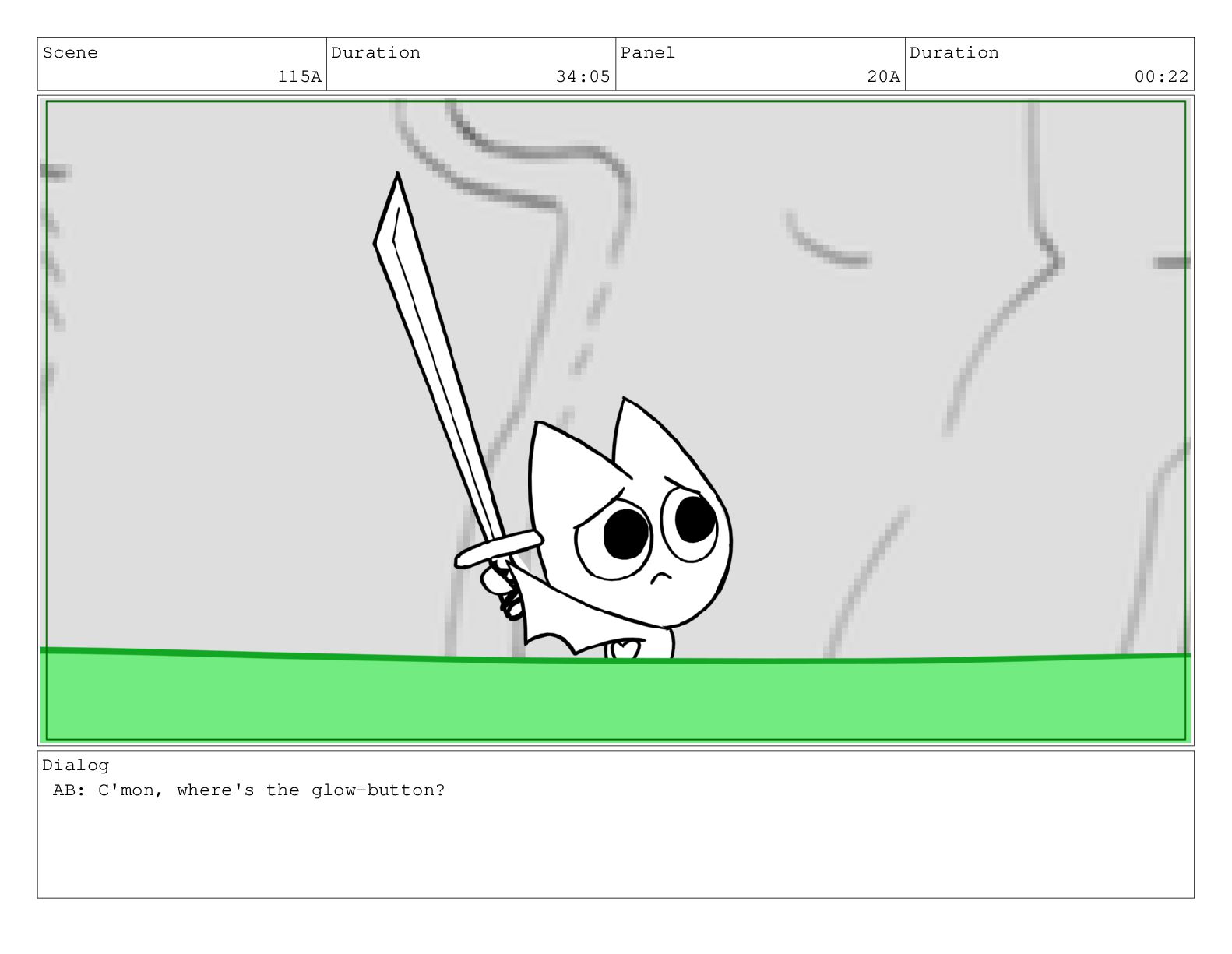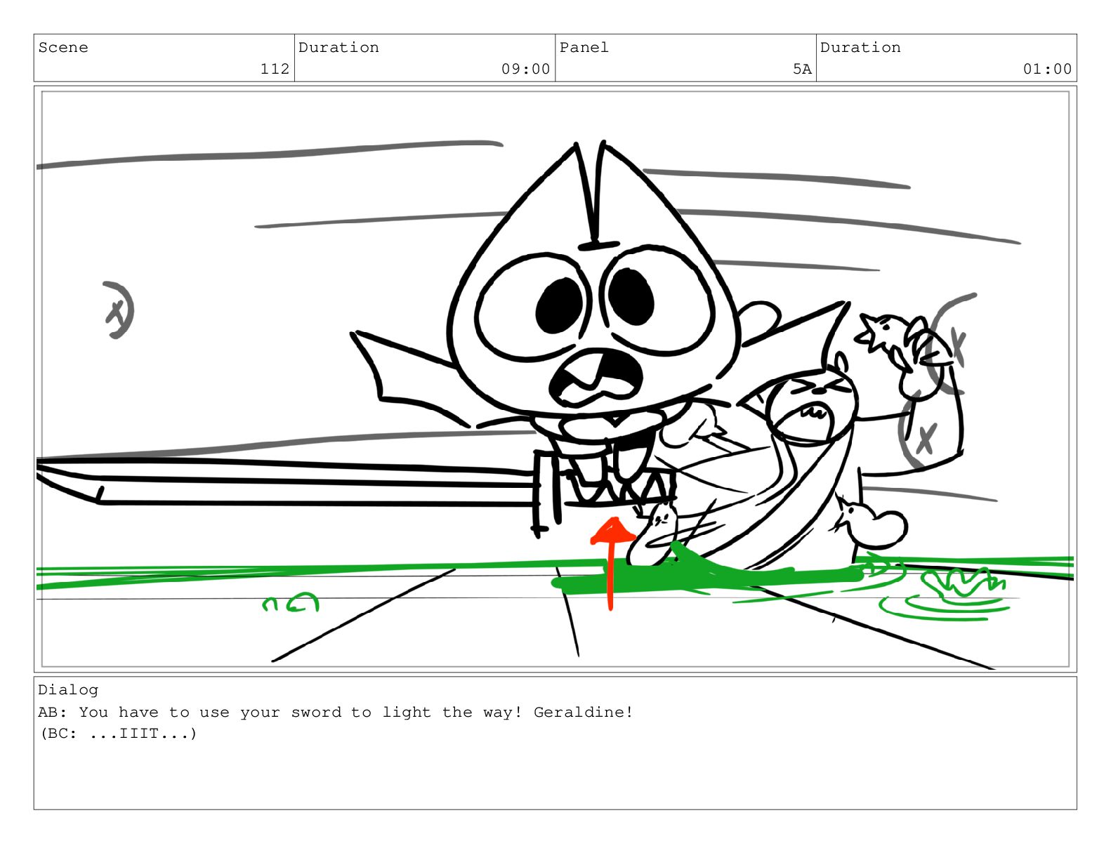 Scene 112 Duration 09:00 Panel 5A Duration 01:00 Dialog AB: