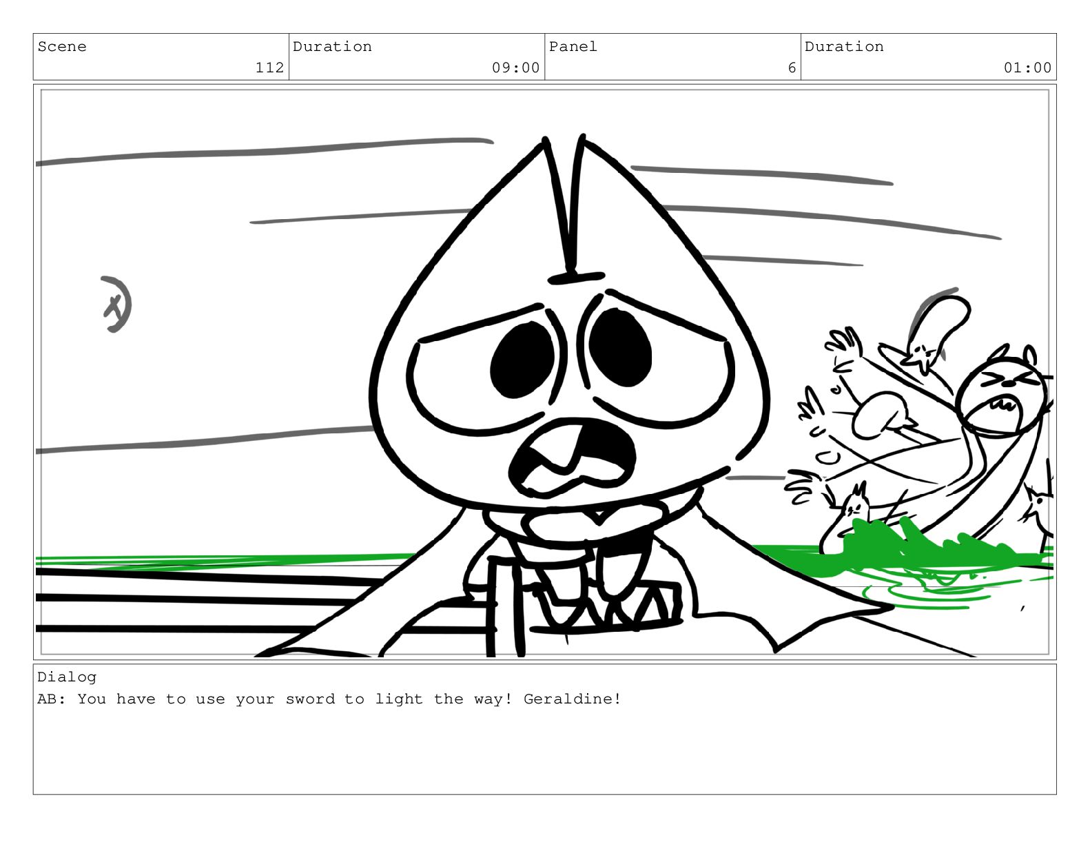 Scene 112 Duration 09:00 Panel 6 Duration 01:00 Dialog AB: