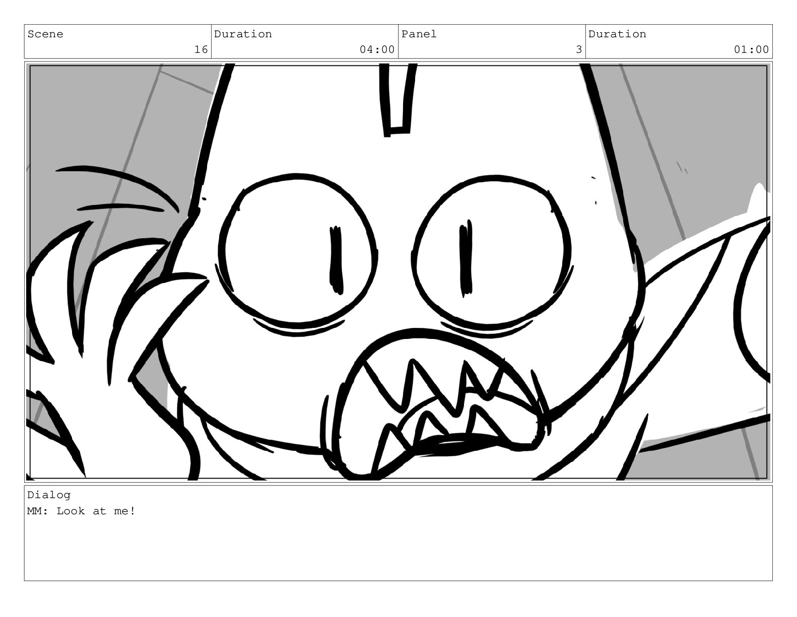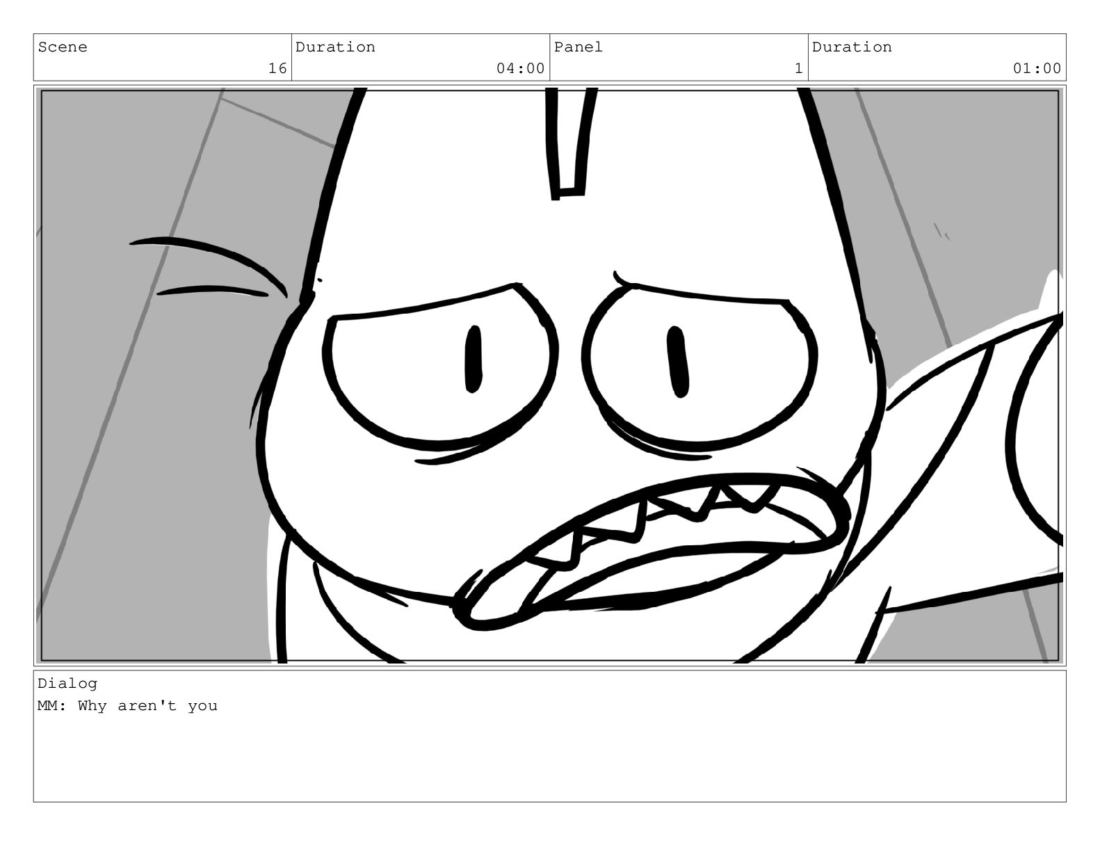 Scene 28 Duration 16:00 Panel 16 Duration 01:00 Dialog MM: