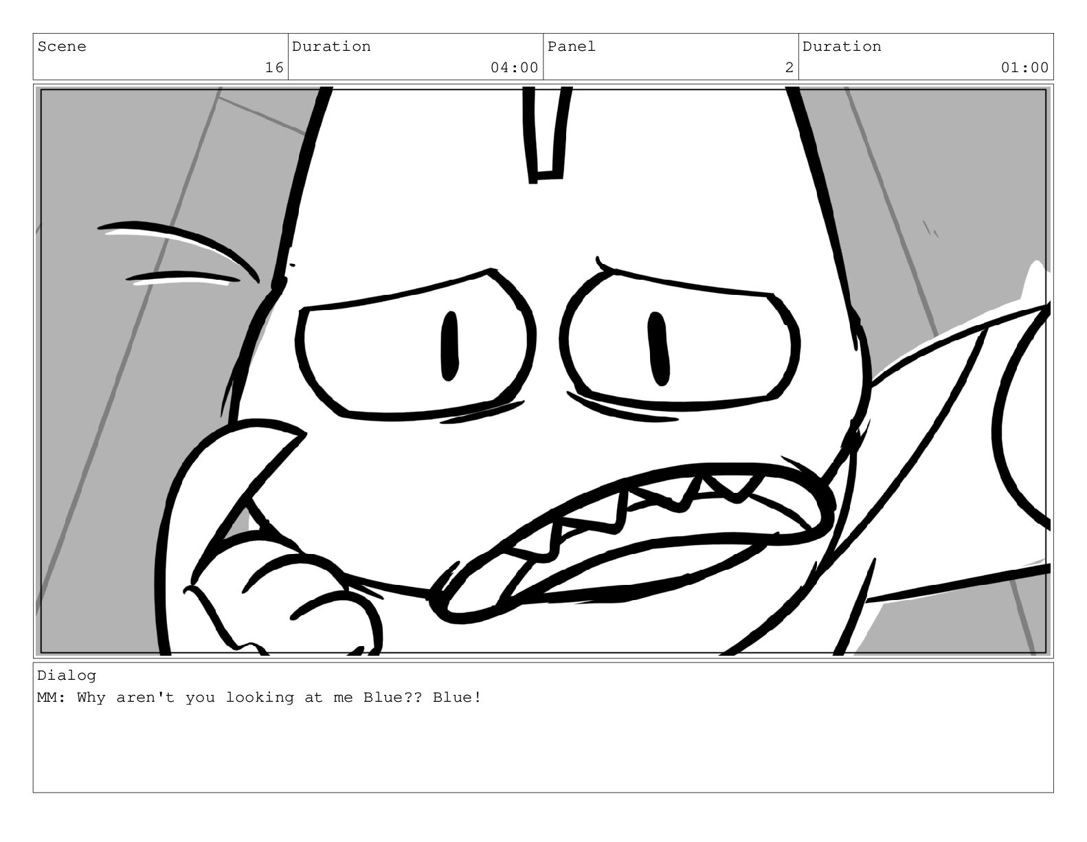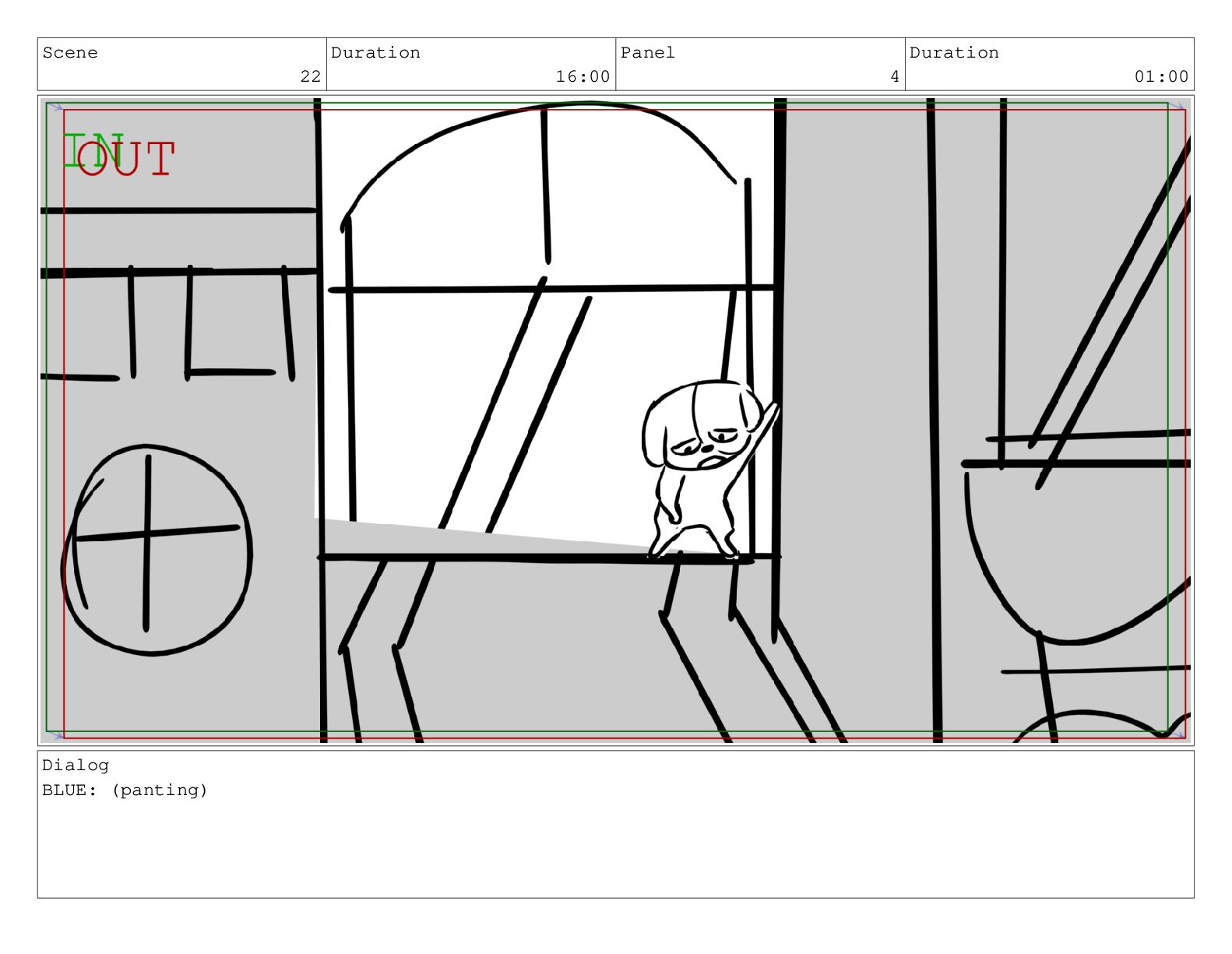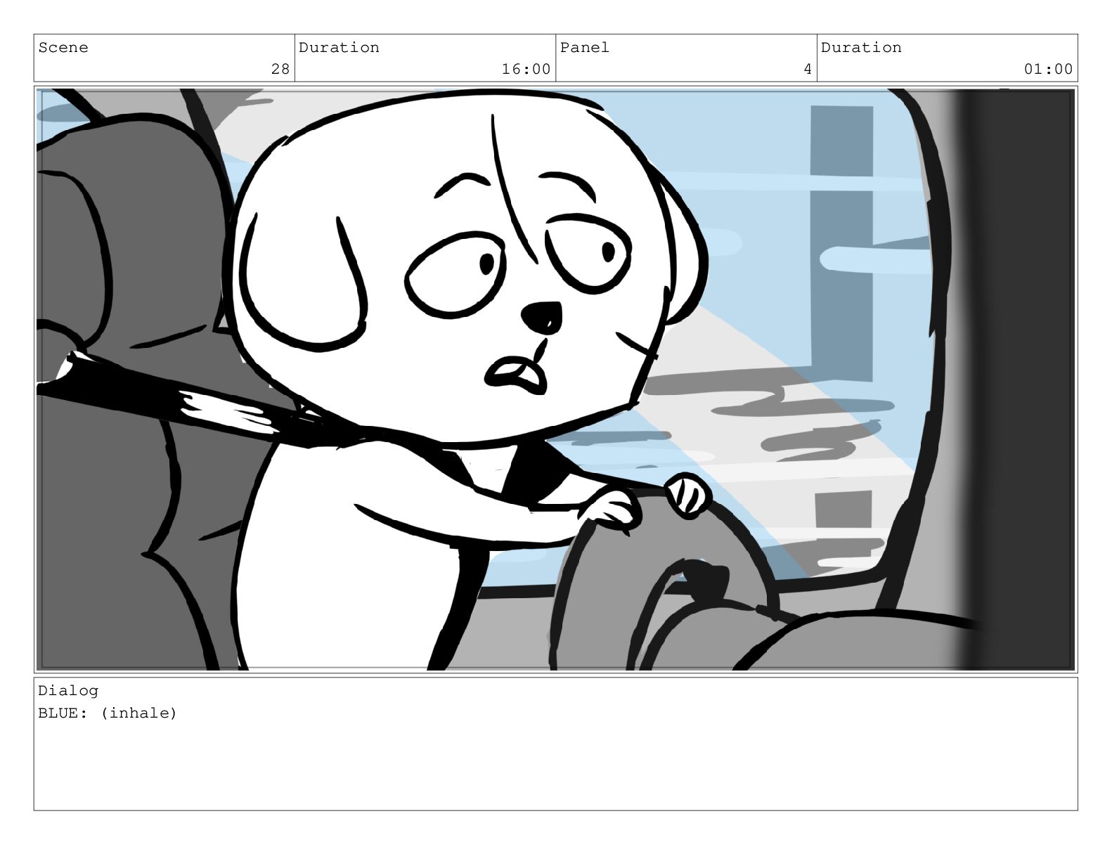 Scene 28 Duration 16:00 Panel 4 Duration 01:00 Dialog BLUE: