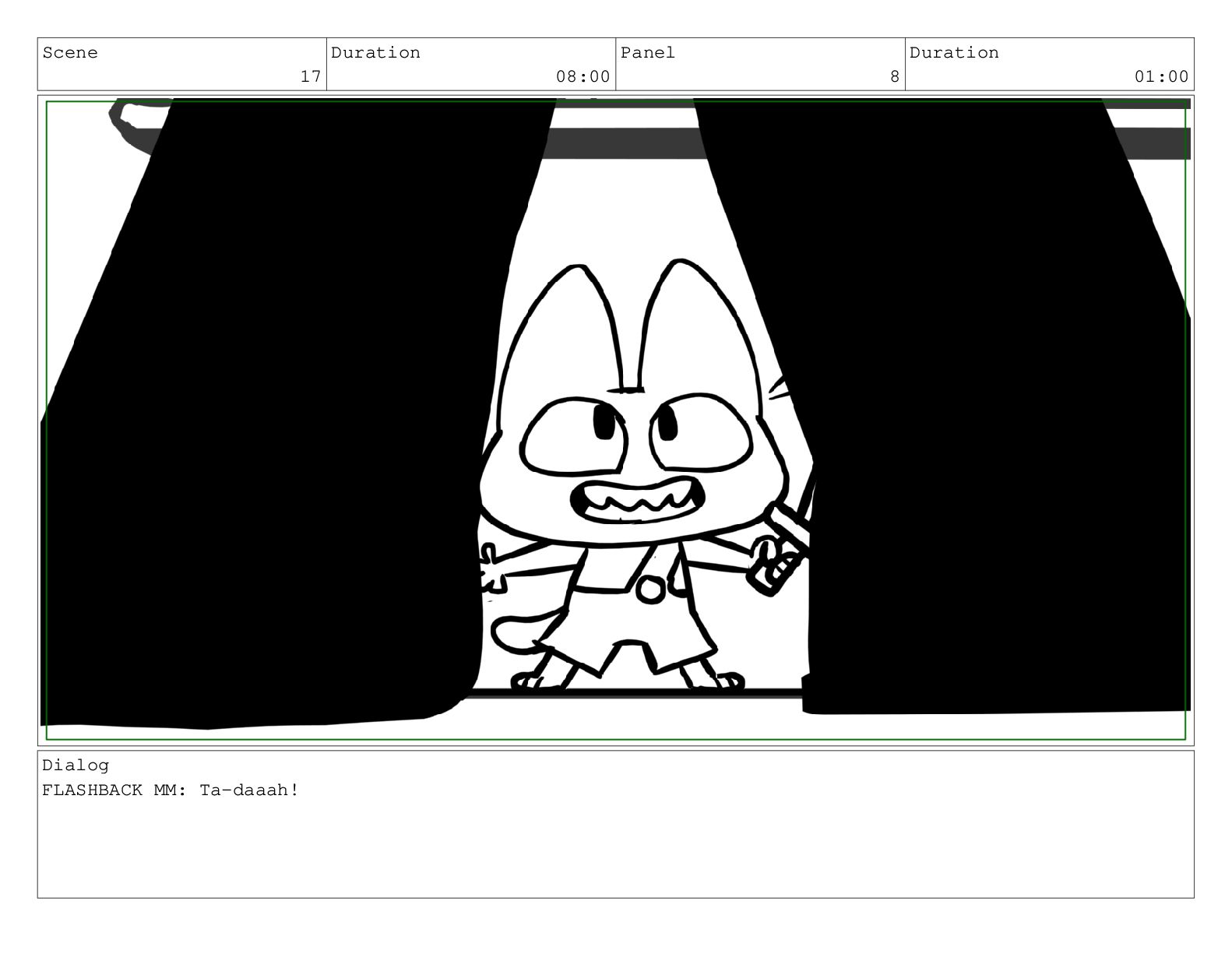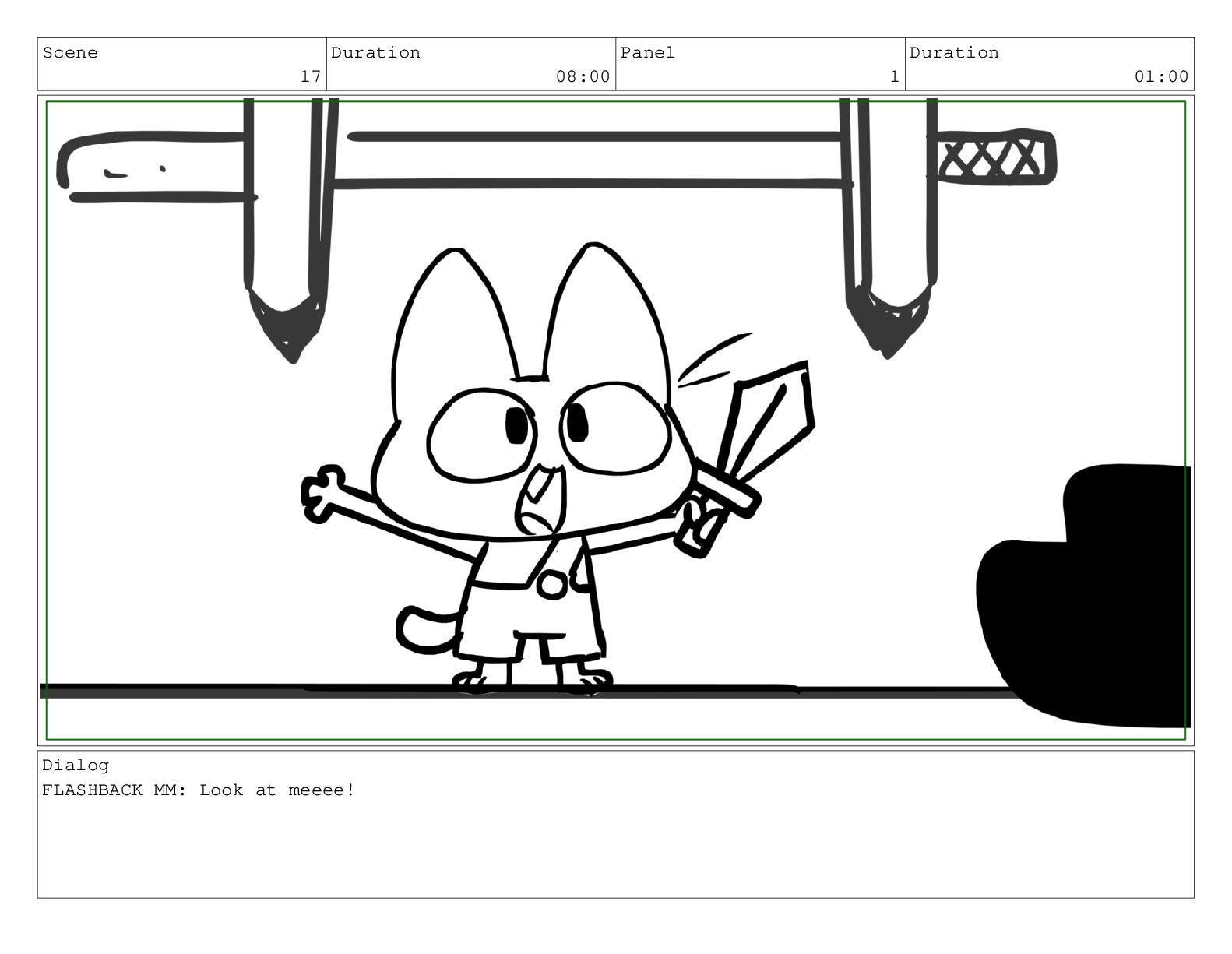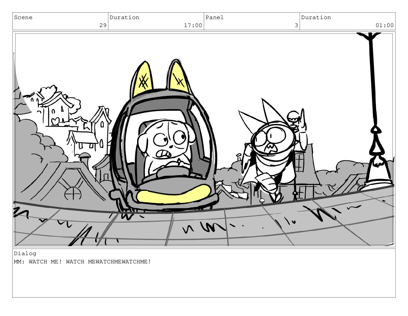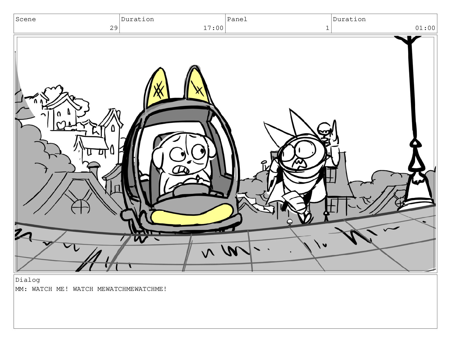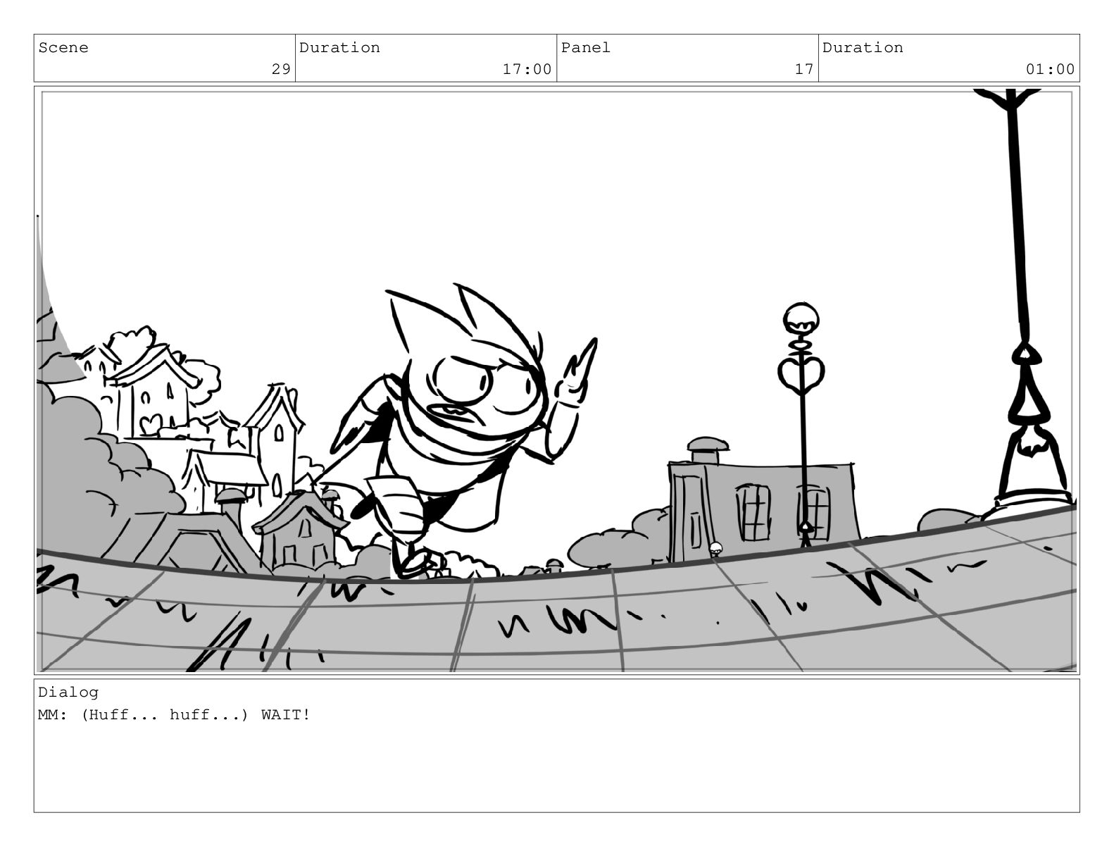 Scene 29 Duration 17:00 Panel 17 Duration 01:00 Dialog MM: