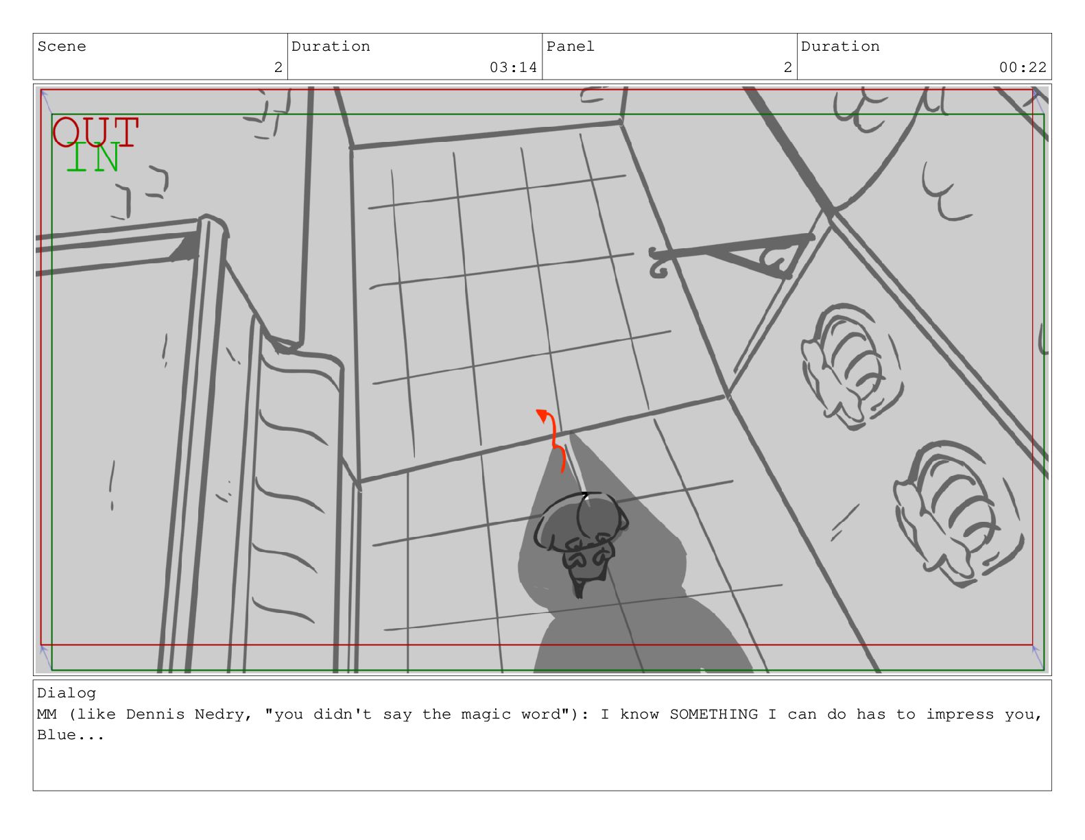 Scene 2 Duration 03:14 Panel 2 Duration 00:22 Dialog MM