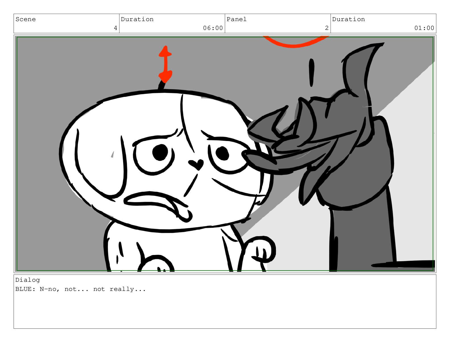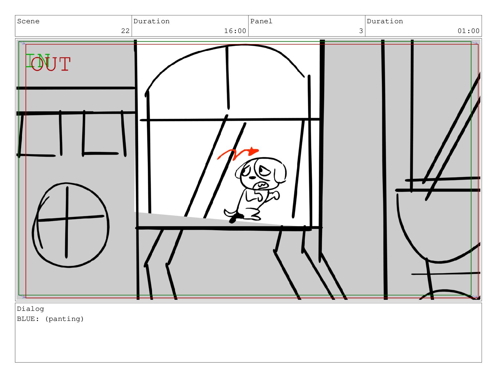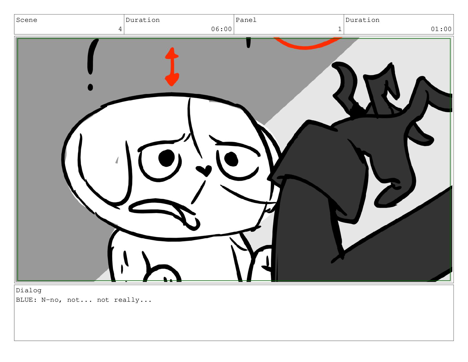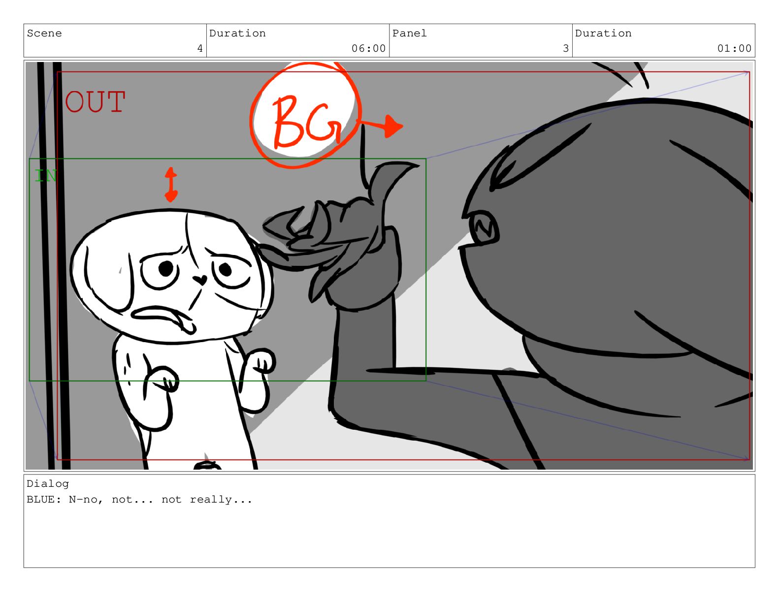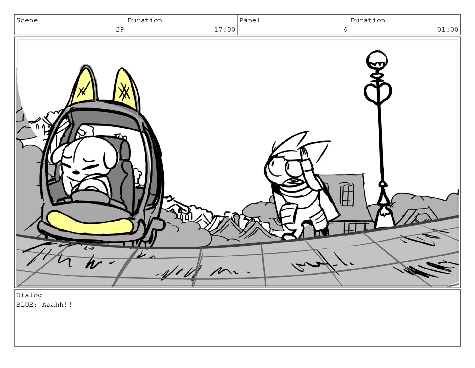 Scene 29 Duration 17:00 Panel 6 Duration 01:00 Dialog BLUE:
