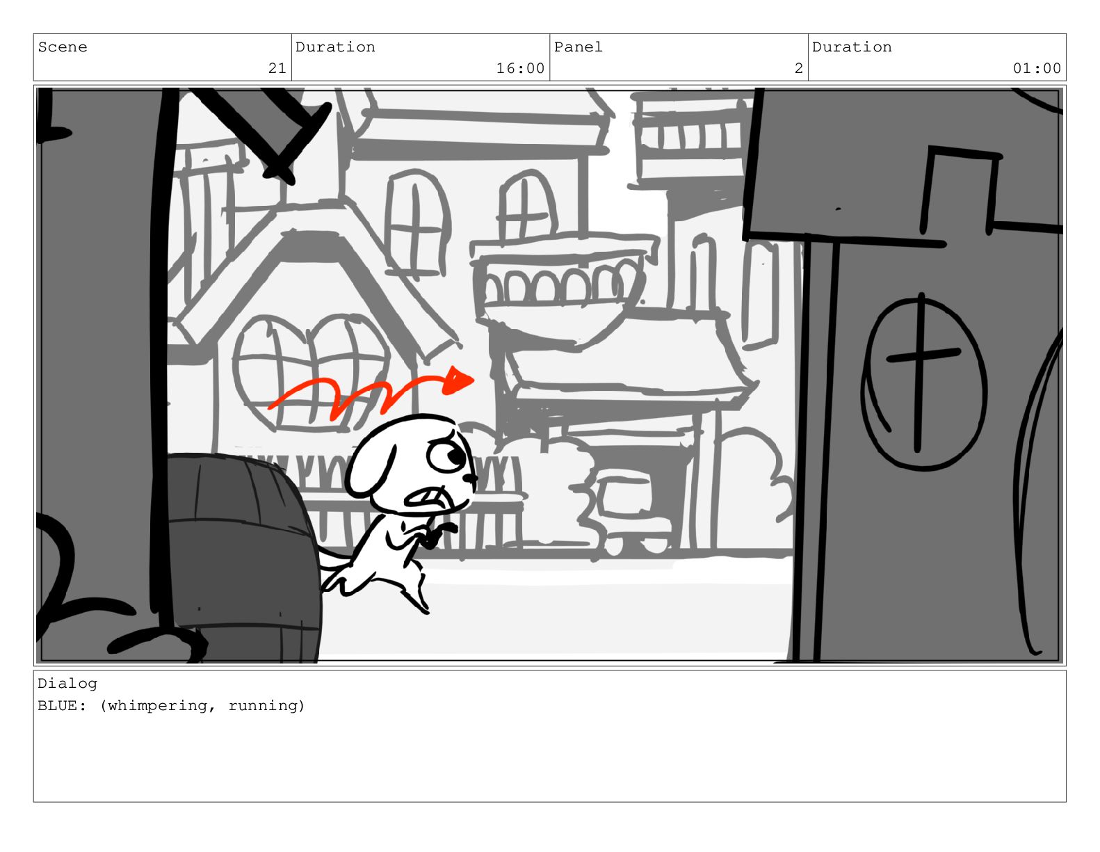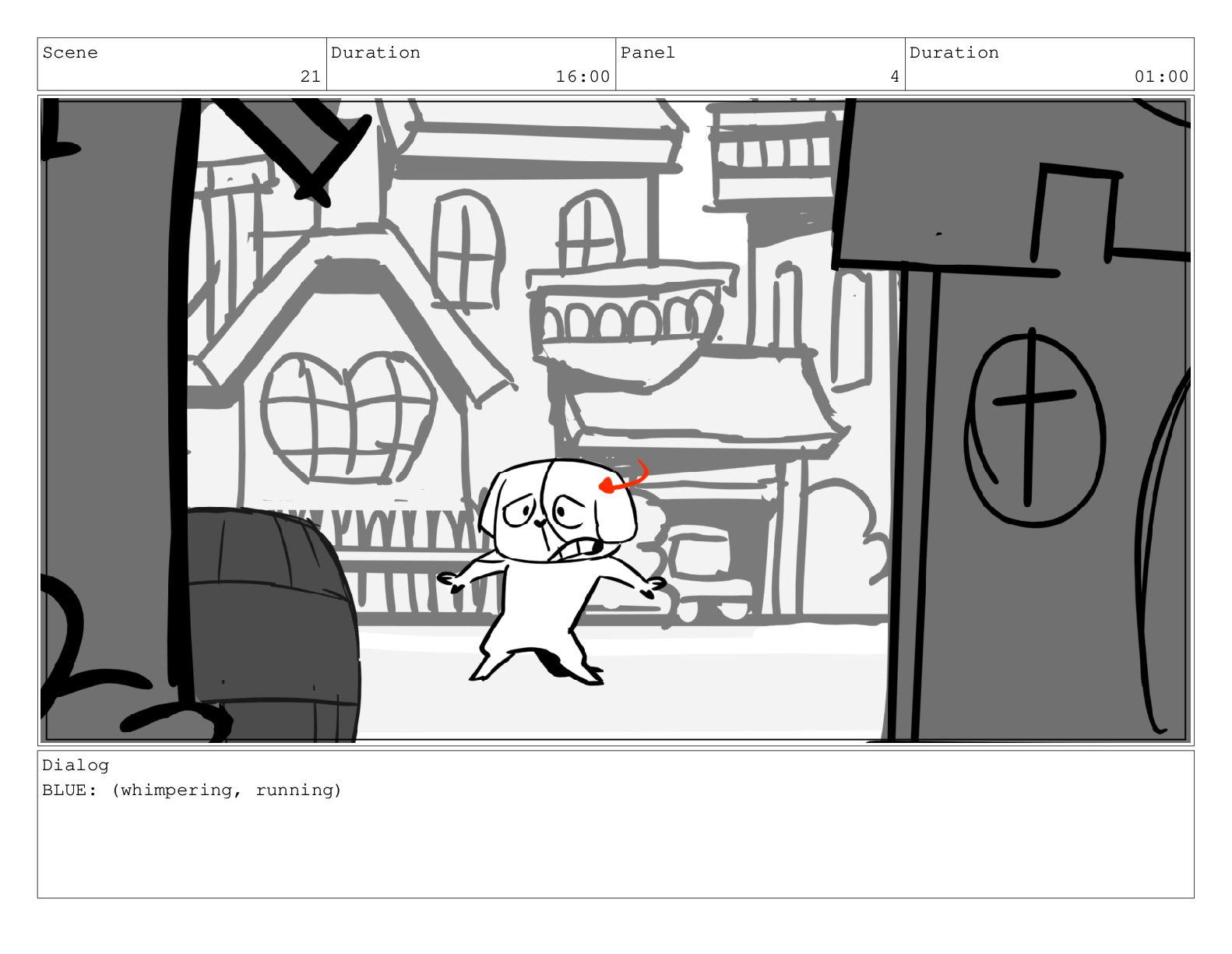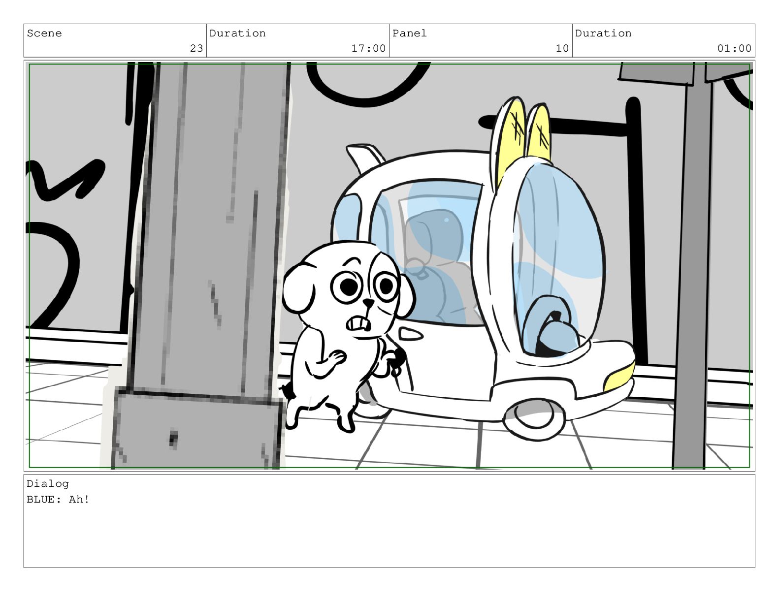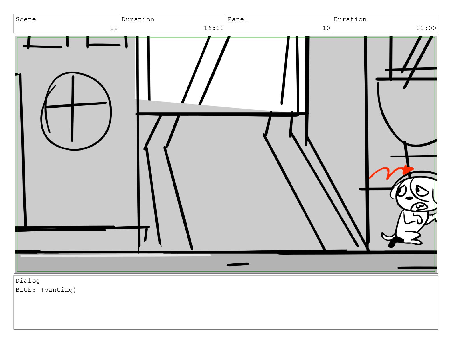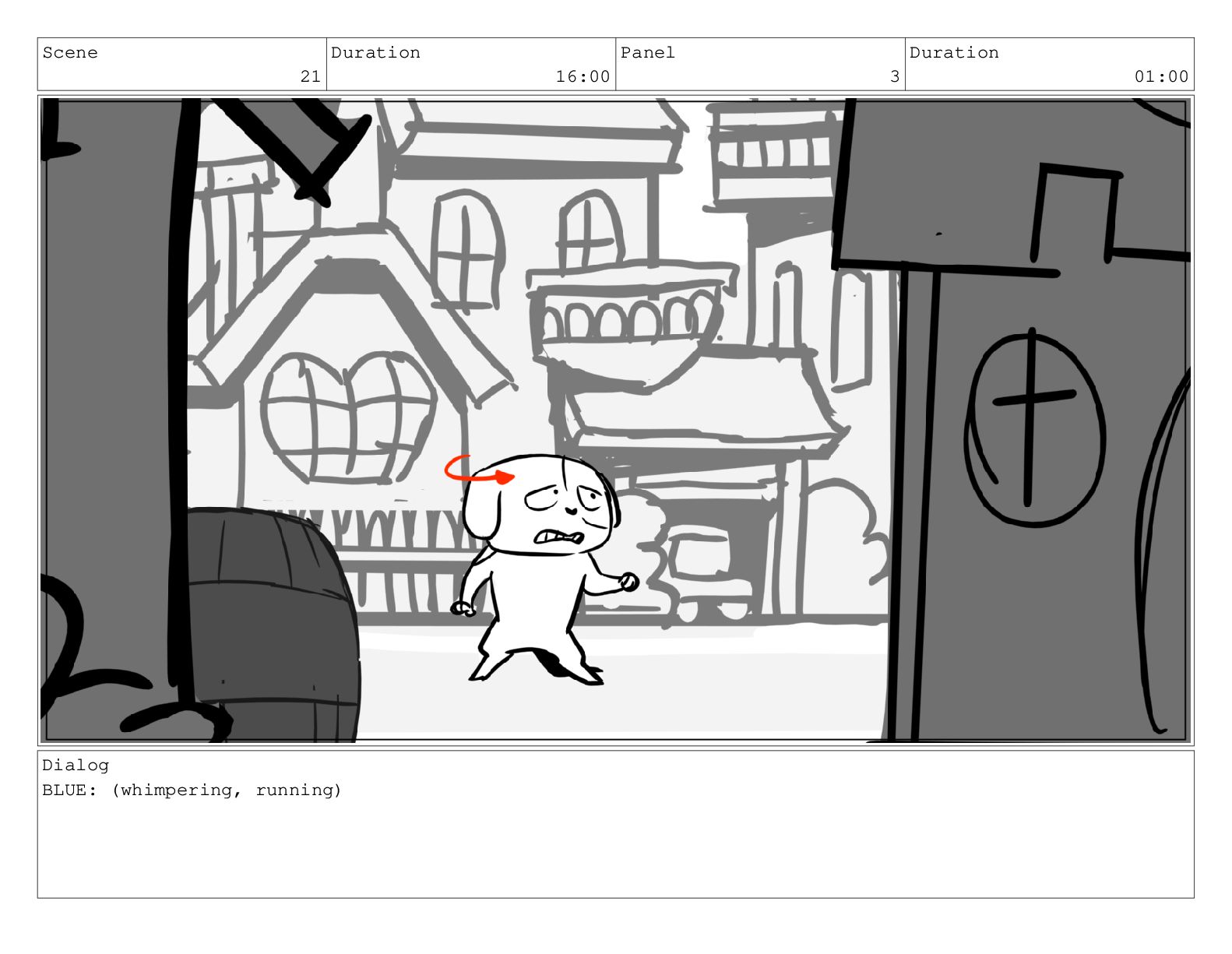 Scene 29 Duration 17:00 Panel 6 Duration 01:00 Dialog BLUE: