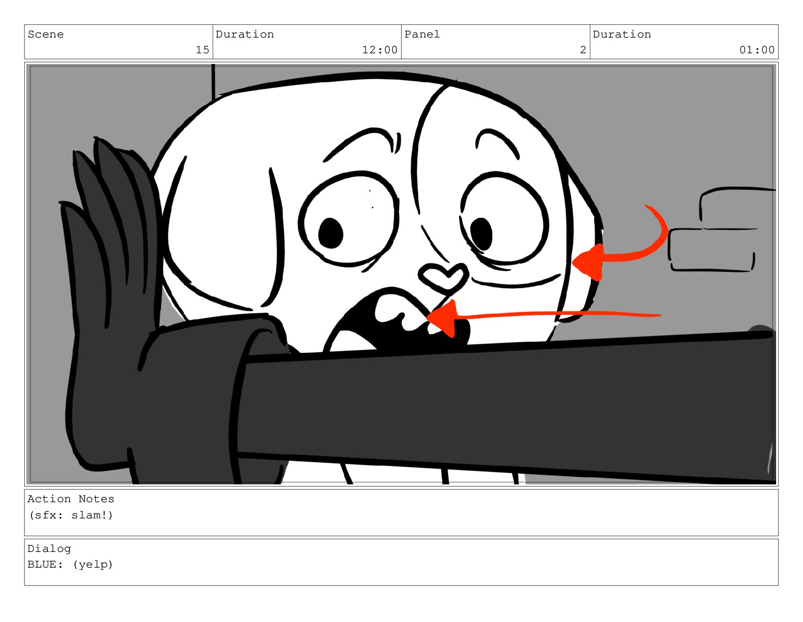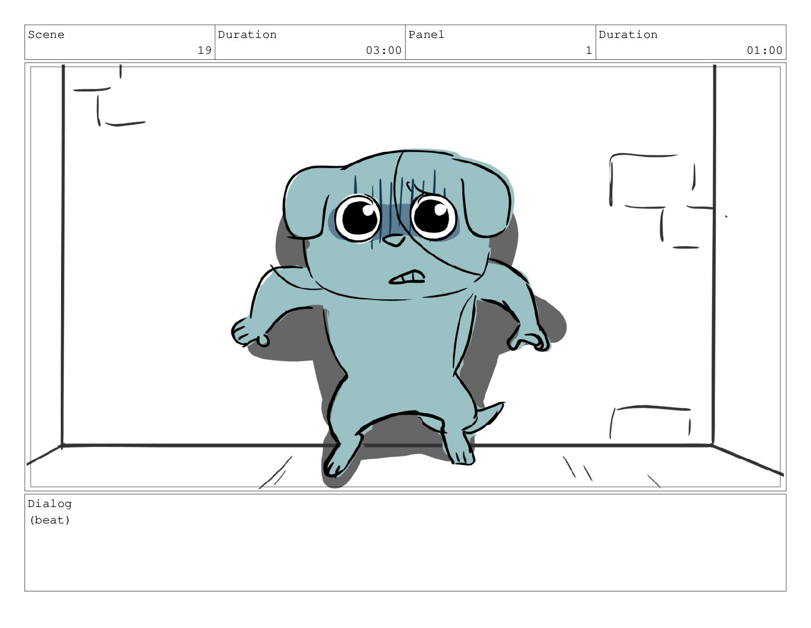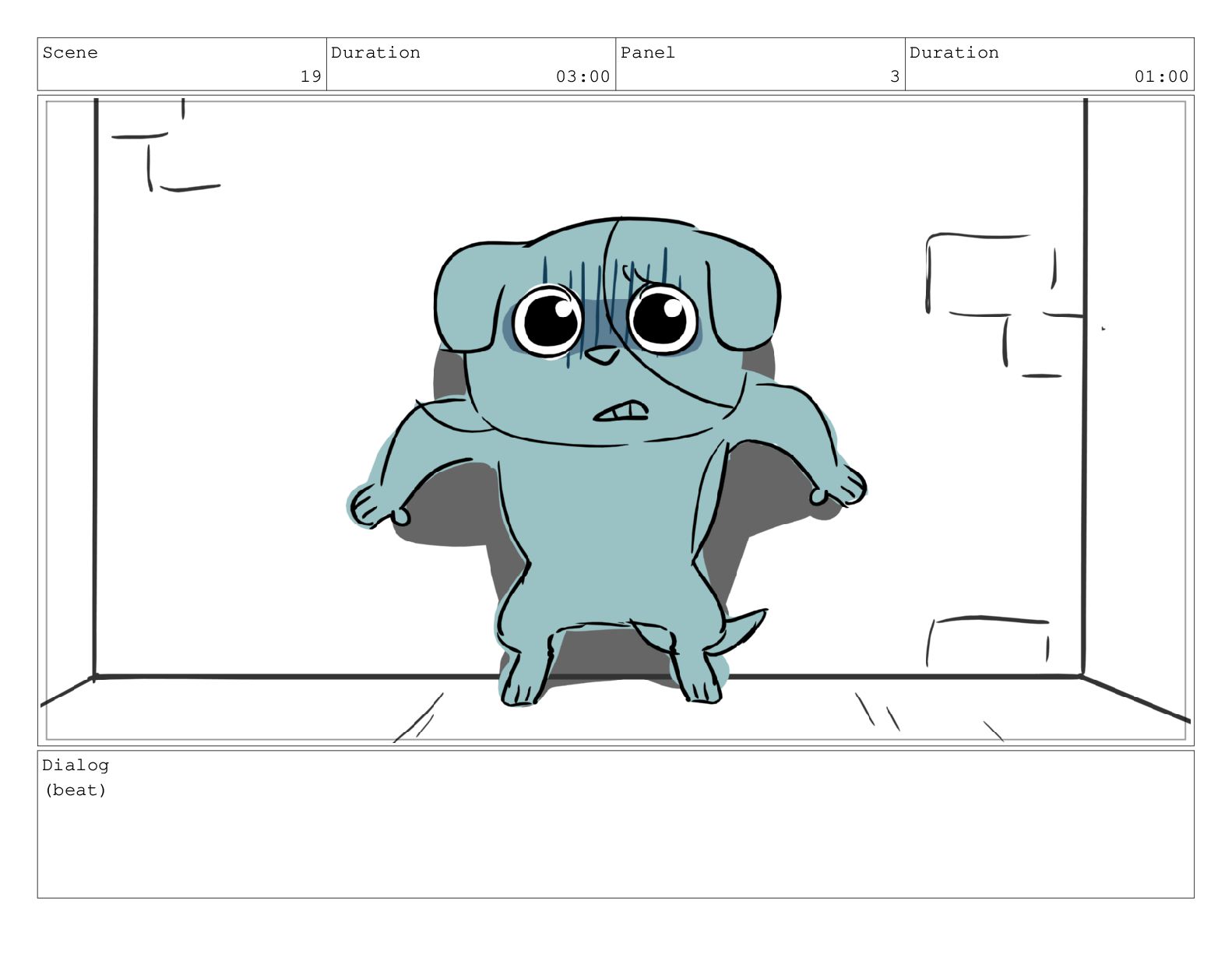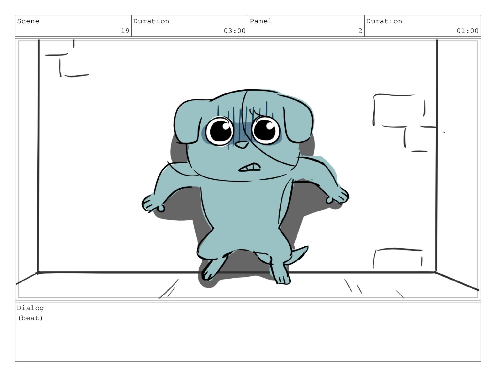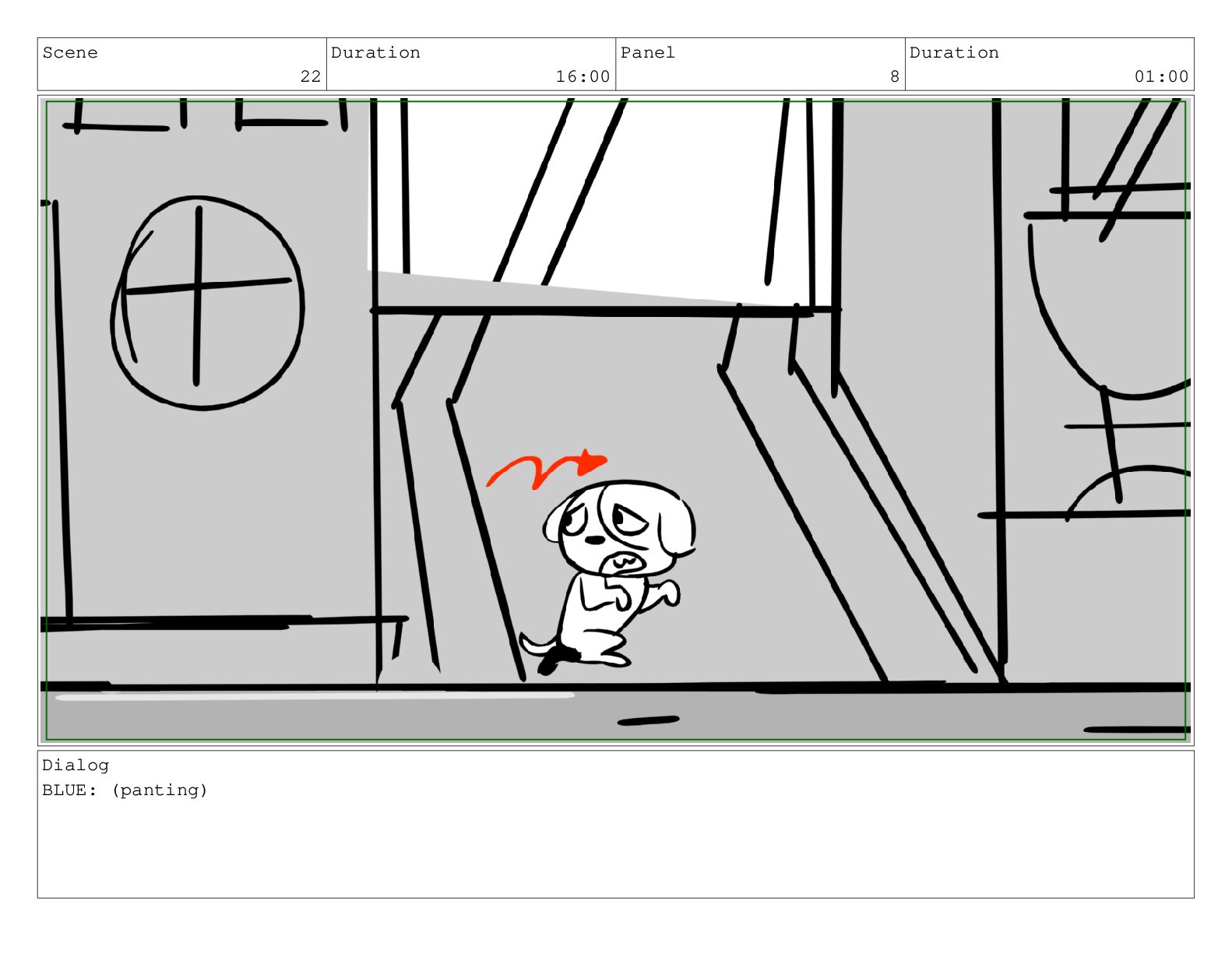 Scene 29 Duration 17:00 Panel 6 Duration 01:00 Dialog BLUE: