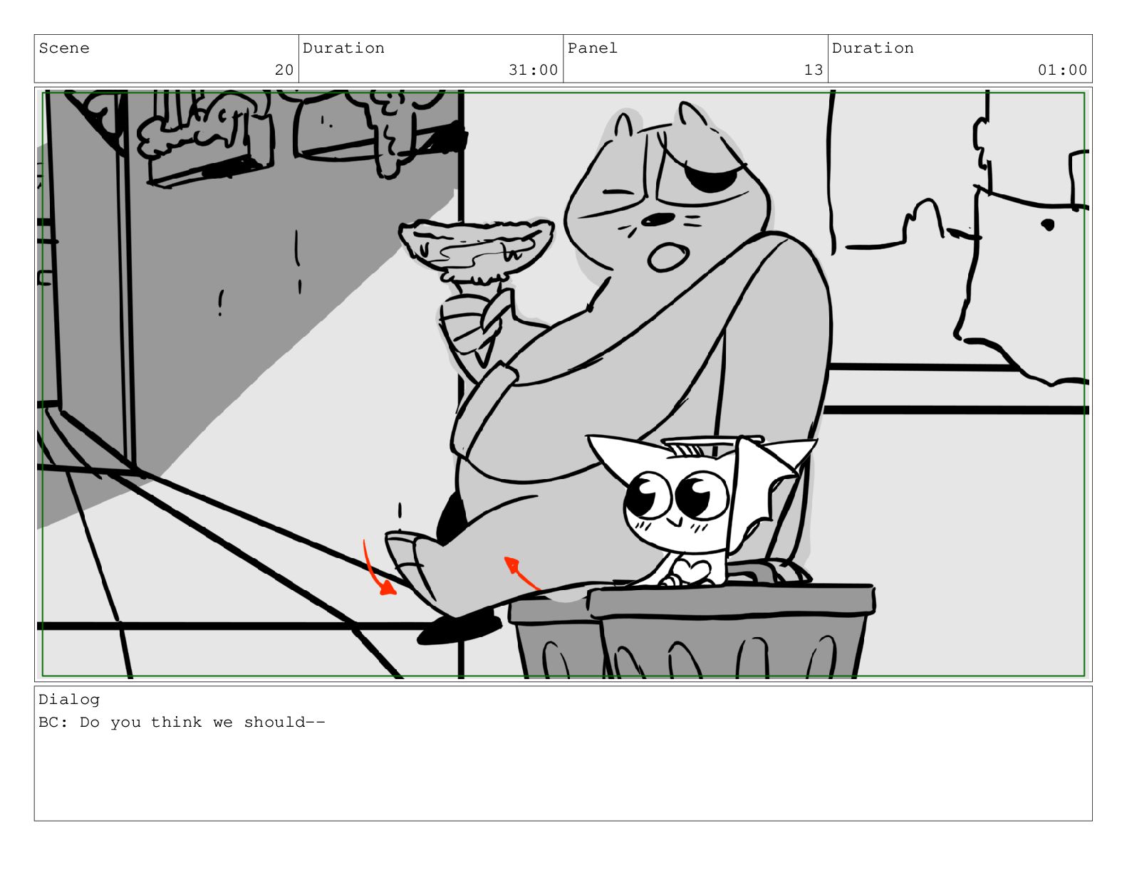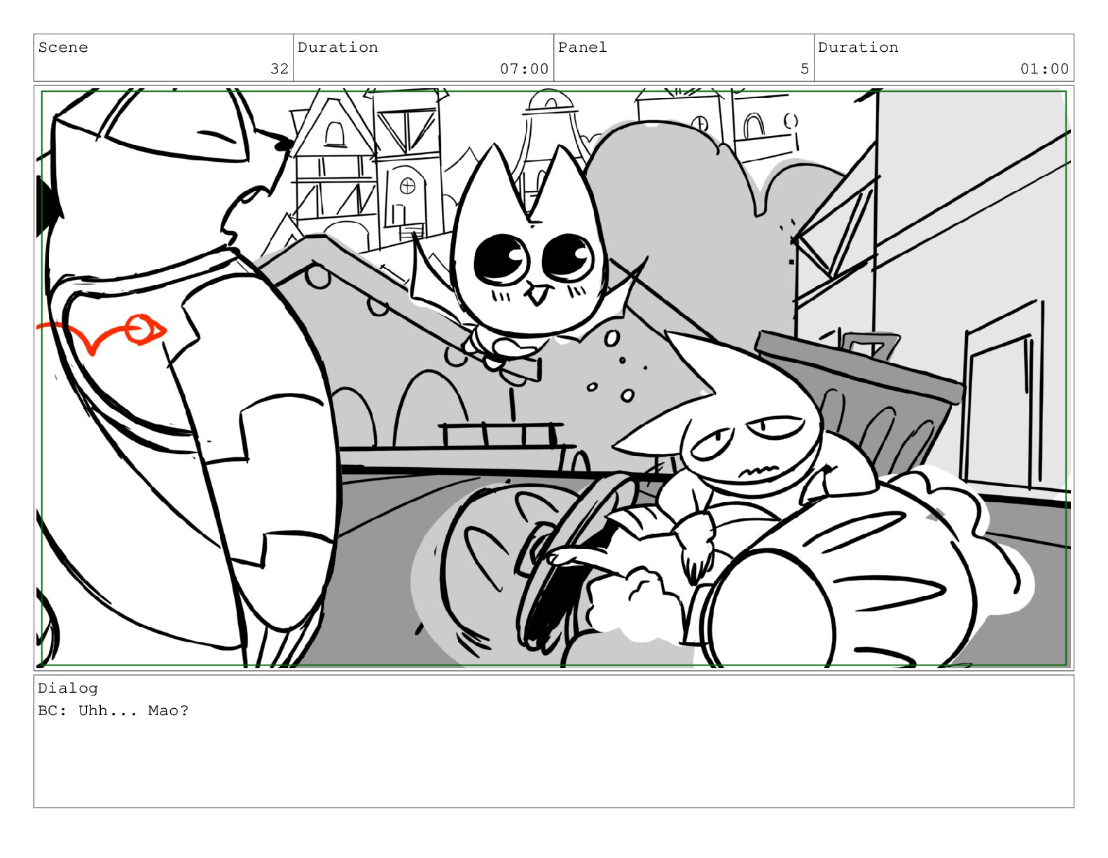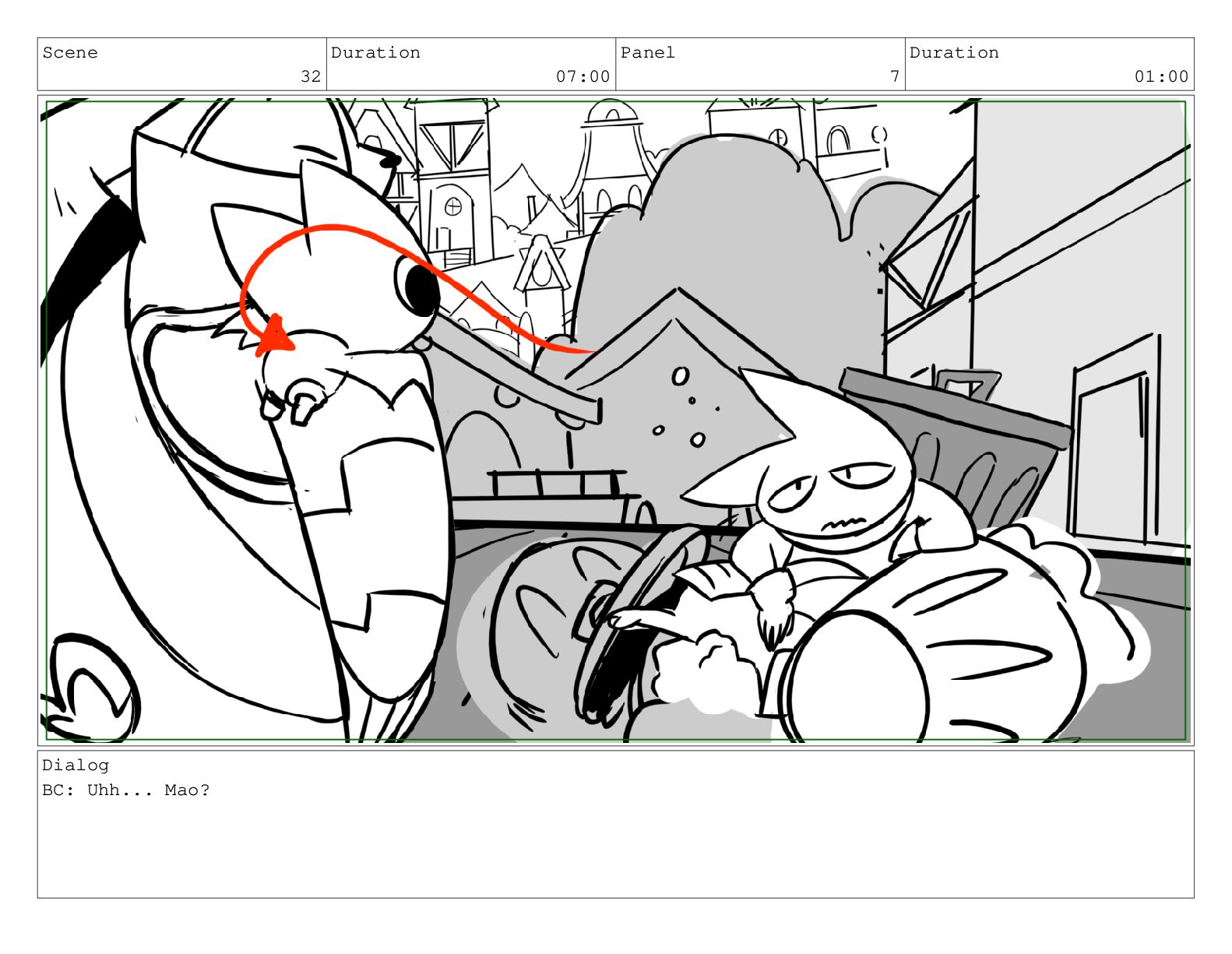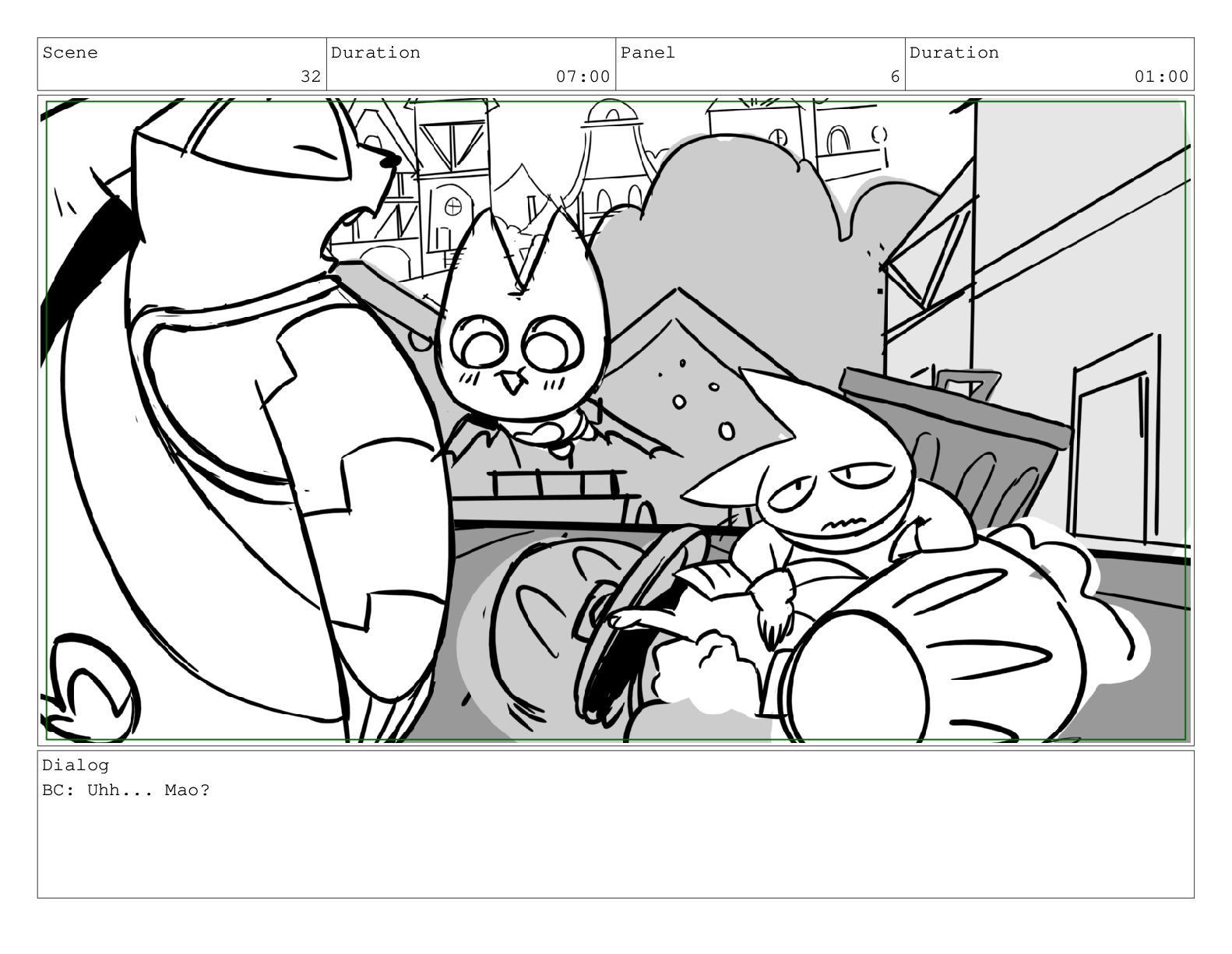 Scene 32 Duration 07:00 Panel 6 Duration 01:00 Dialog BC: