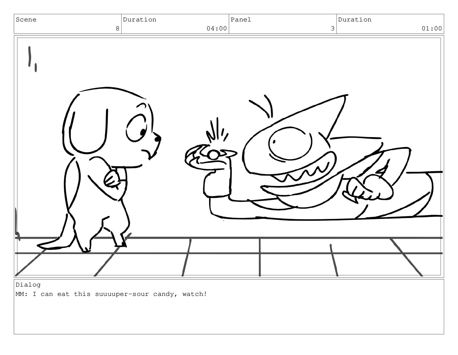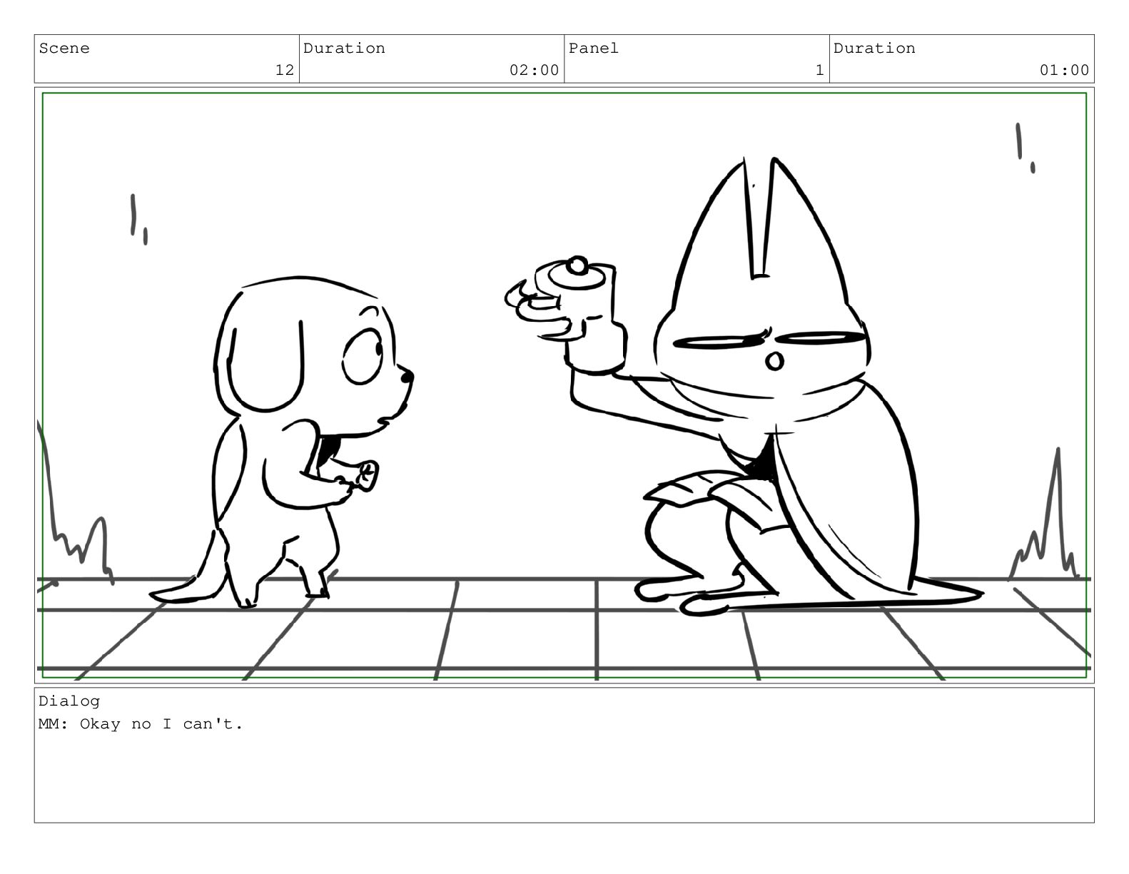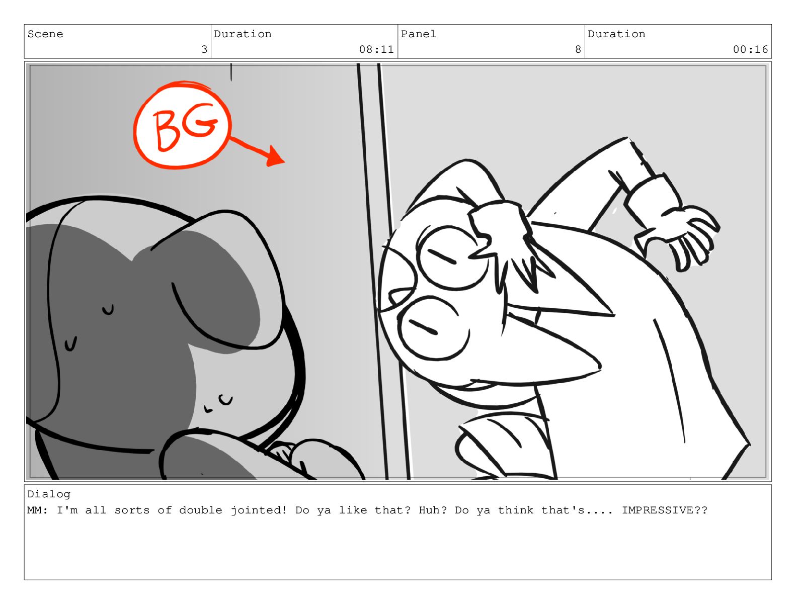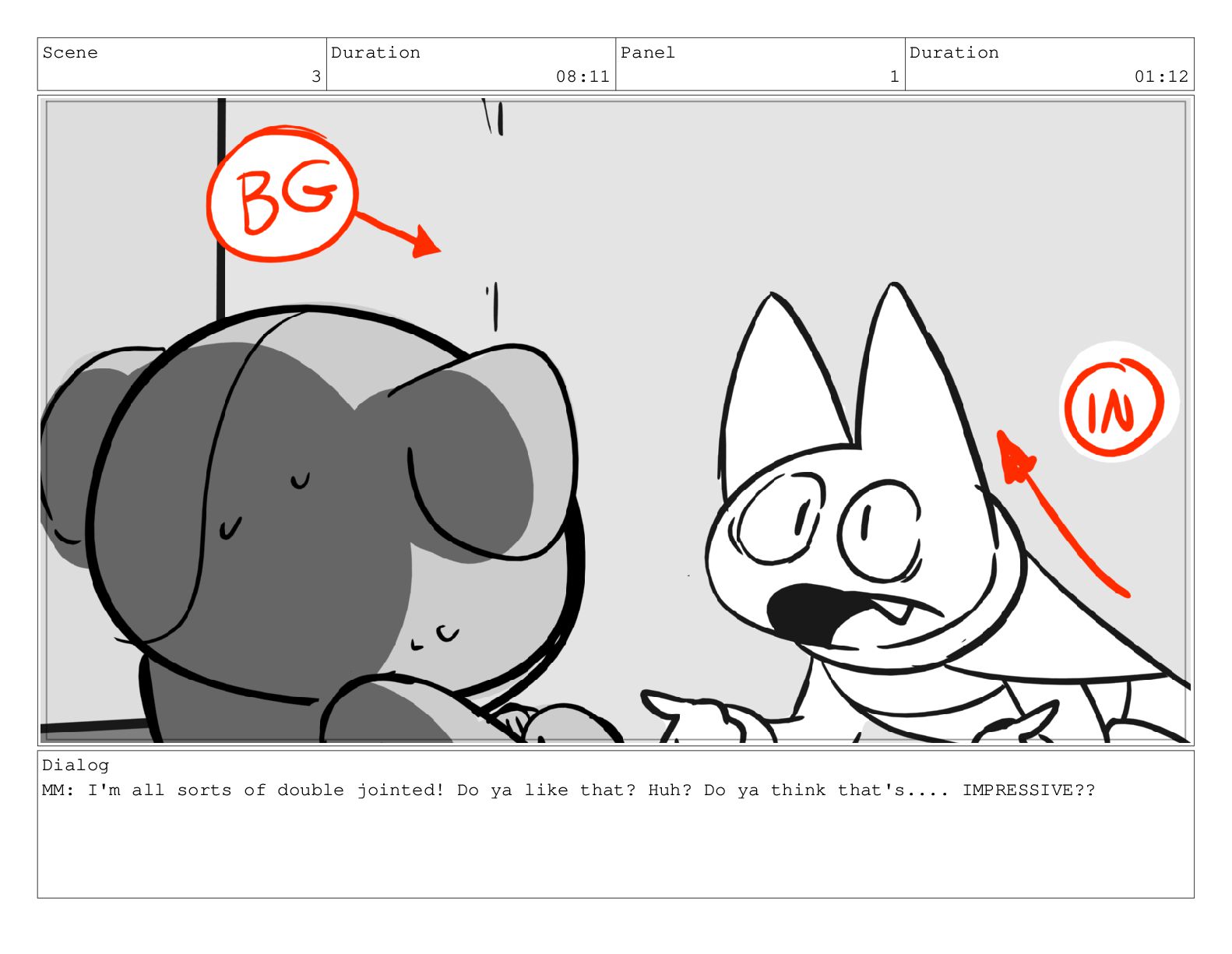 Scene 3 Duration 08:11 Panel 1 Duration 01:12 Dialog MM: