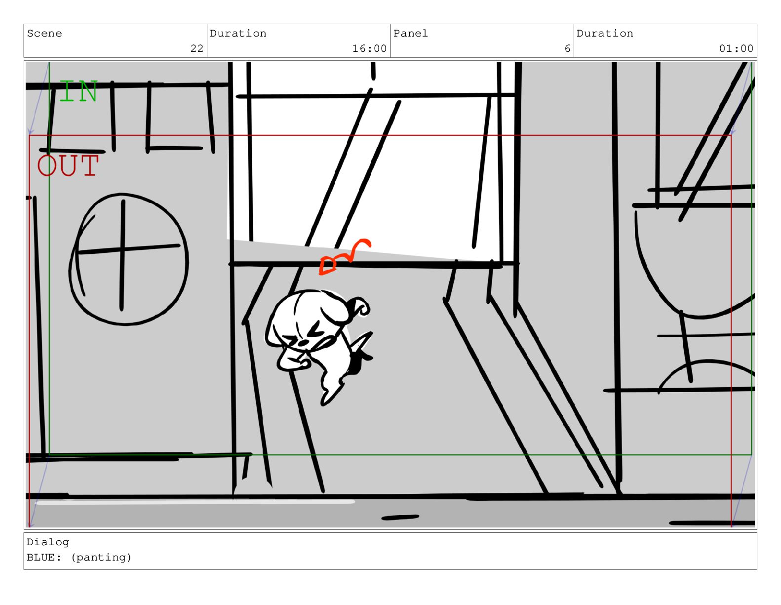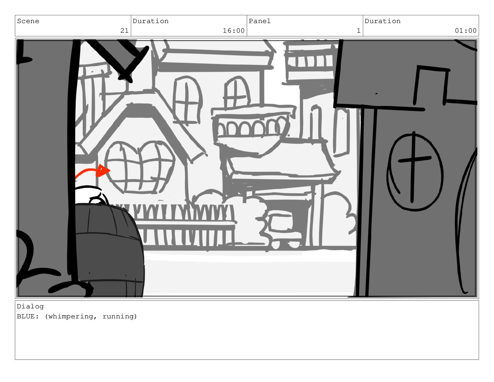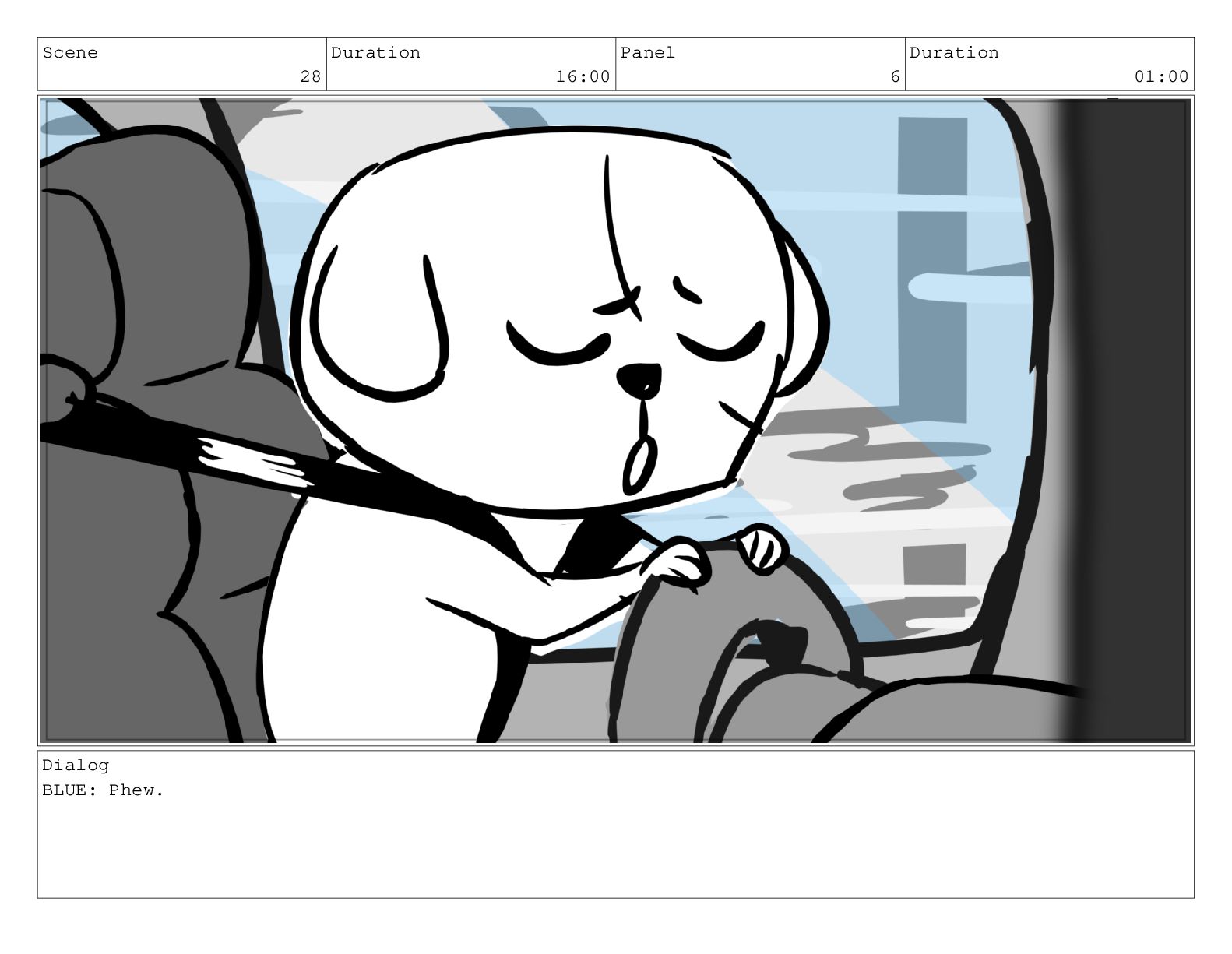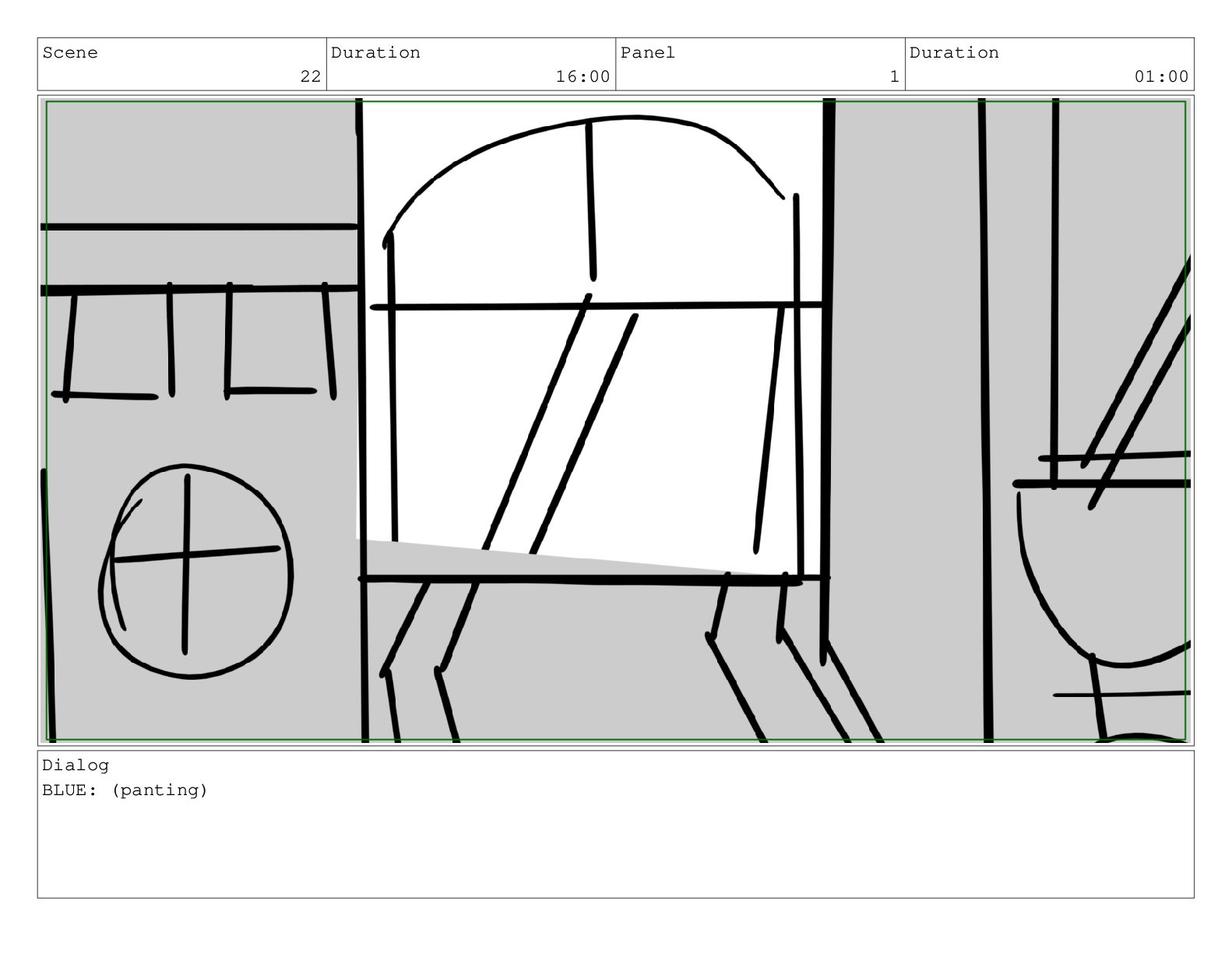 Scene 28 Duration 16:00 Panel 6 Duration 01:00 Dialog BLUE: