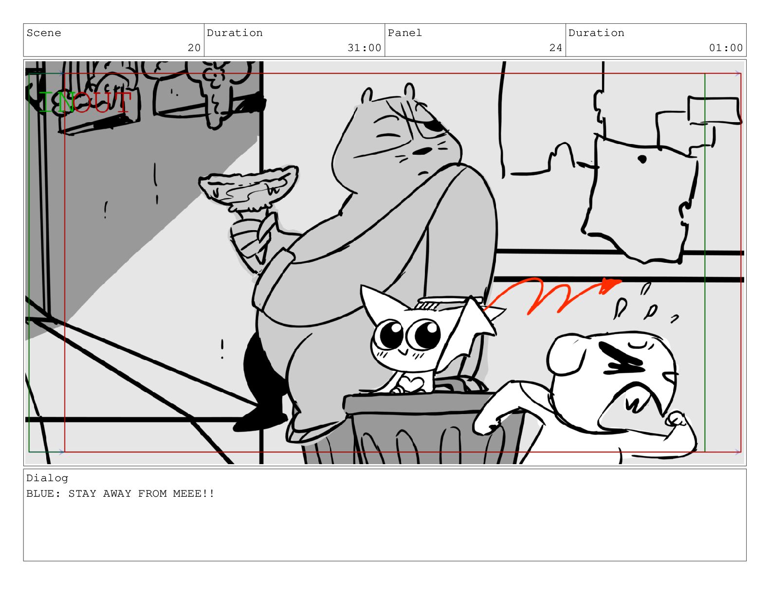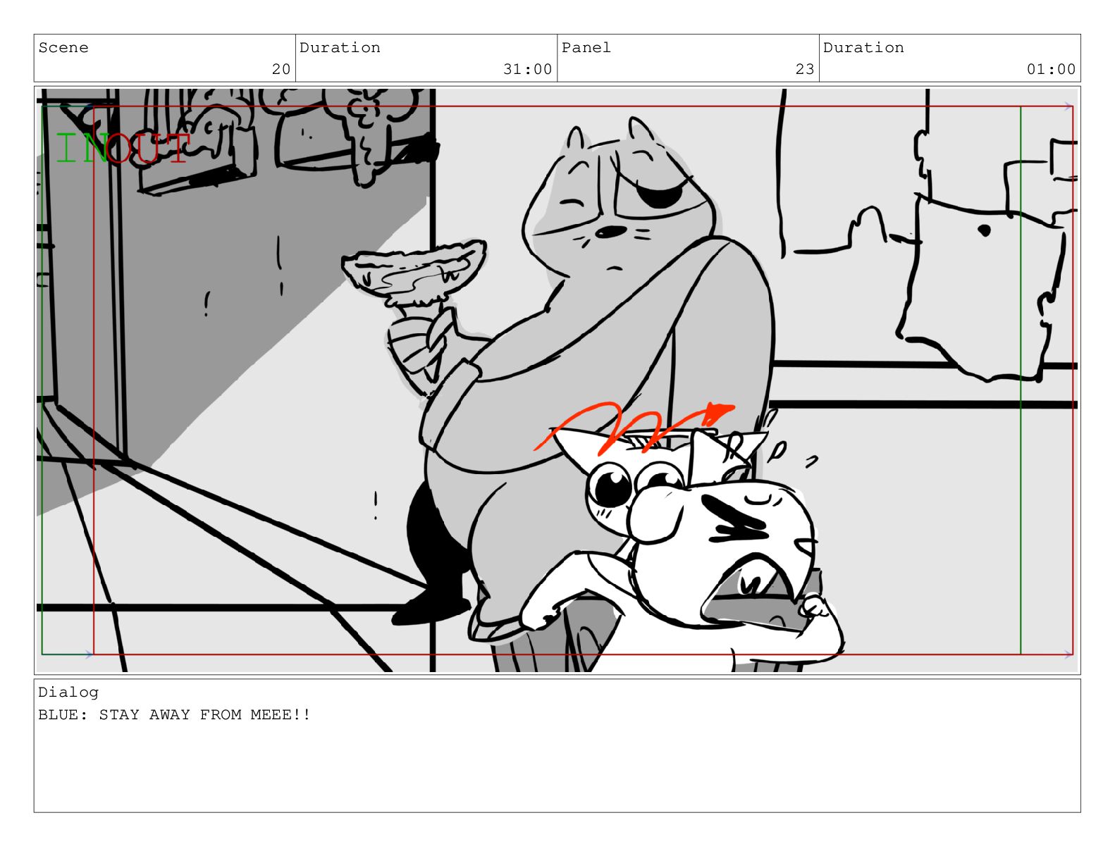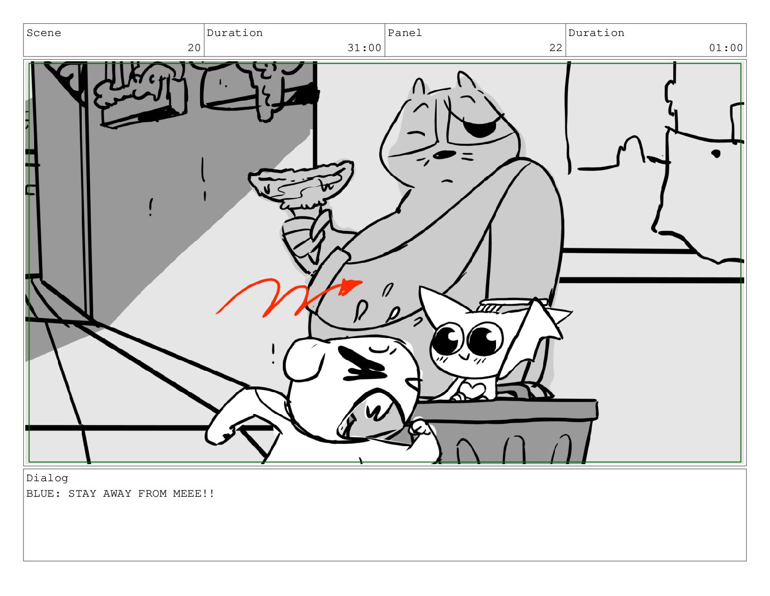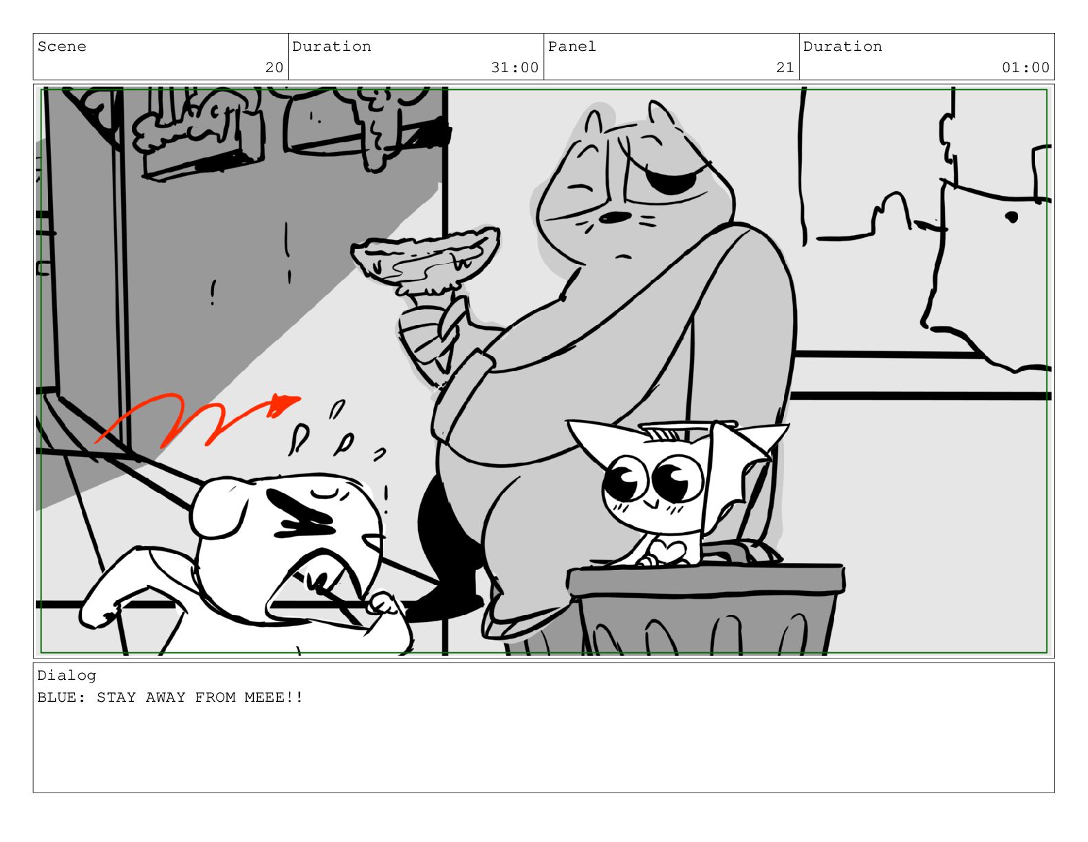 Scene 28 Duration 16:00 Panel 6 Duration 01:00 Dialog BLUE: