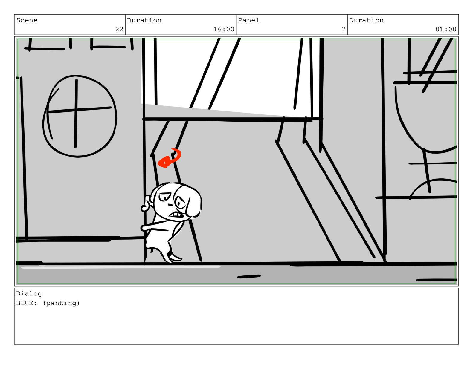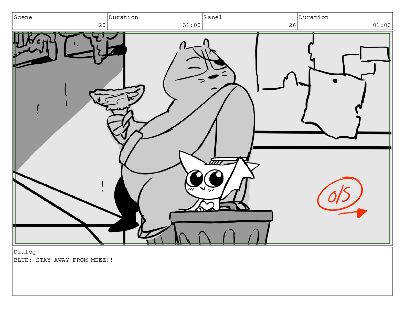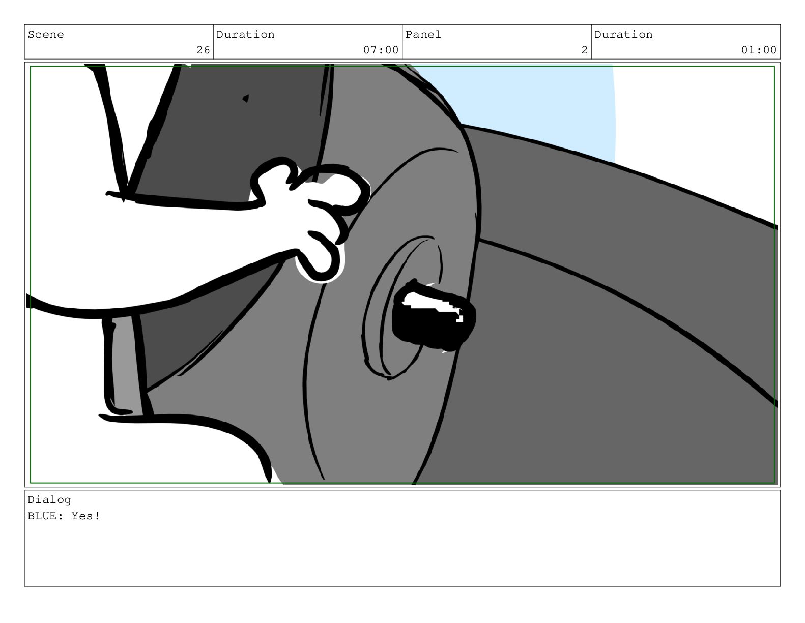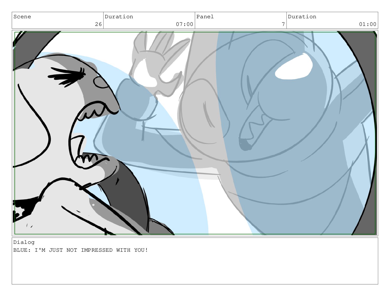 Scene 26 Duration 07:00 Panel 7 Duration 01:00 Dialog BLUE: