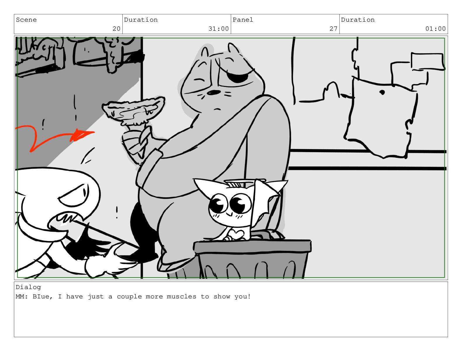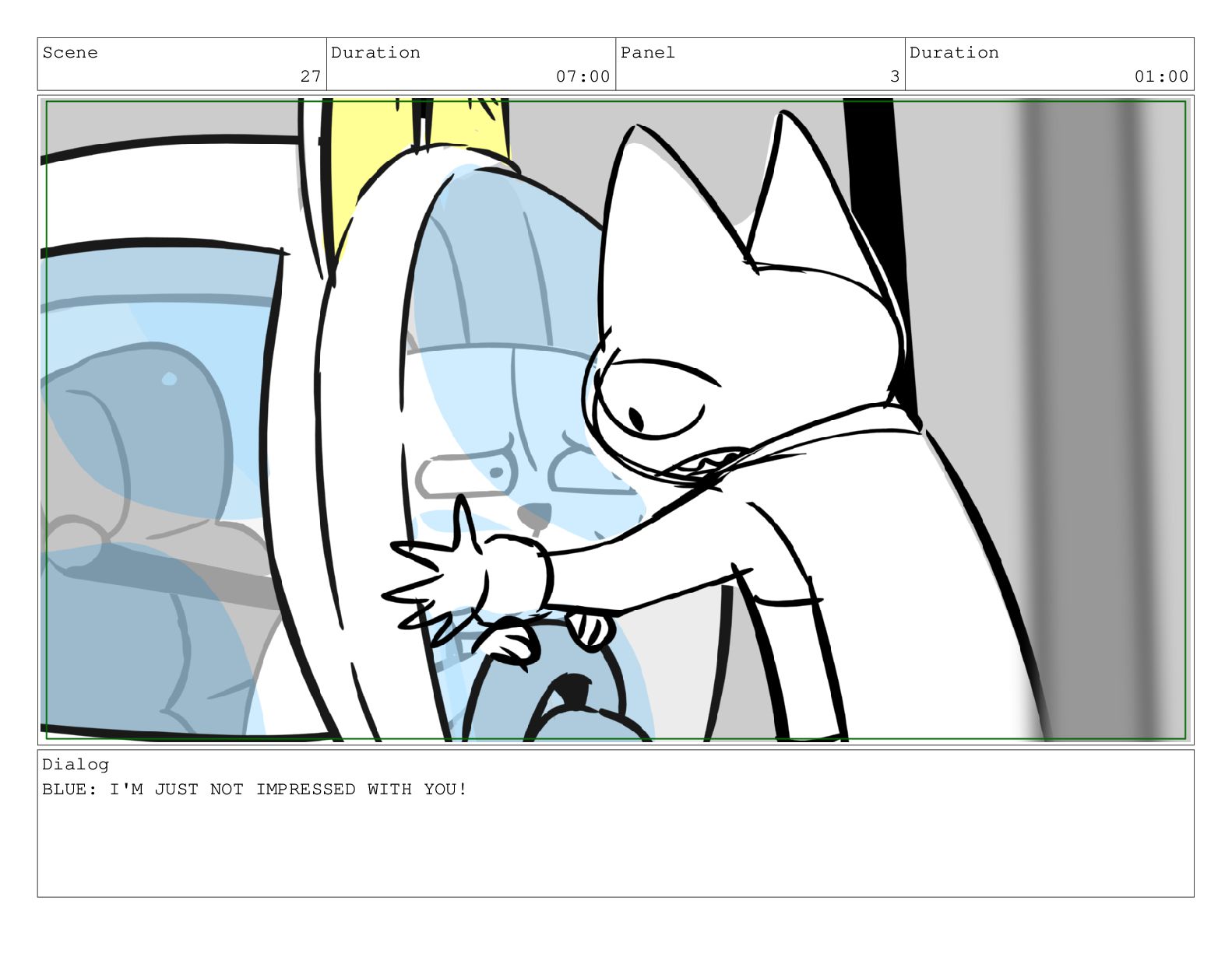 Scene 27 Duration 07:00 Panel 3 Duration 01:00 Dialog BLUE: