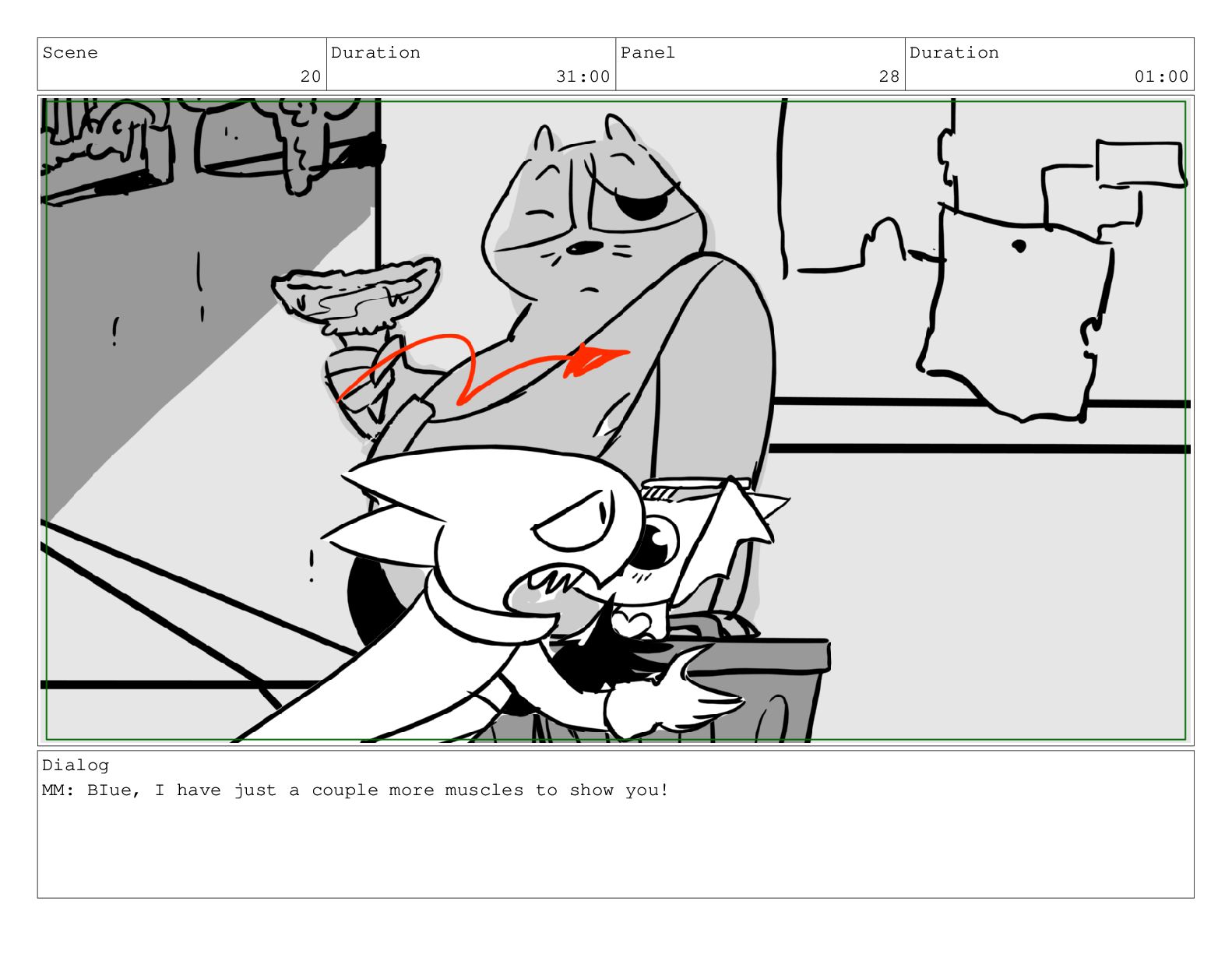Scene 28 Duration 16:00 Panel 8 Duration 01:00 Action Notes