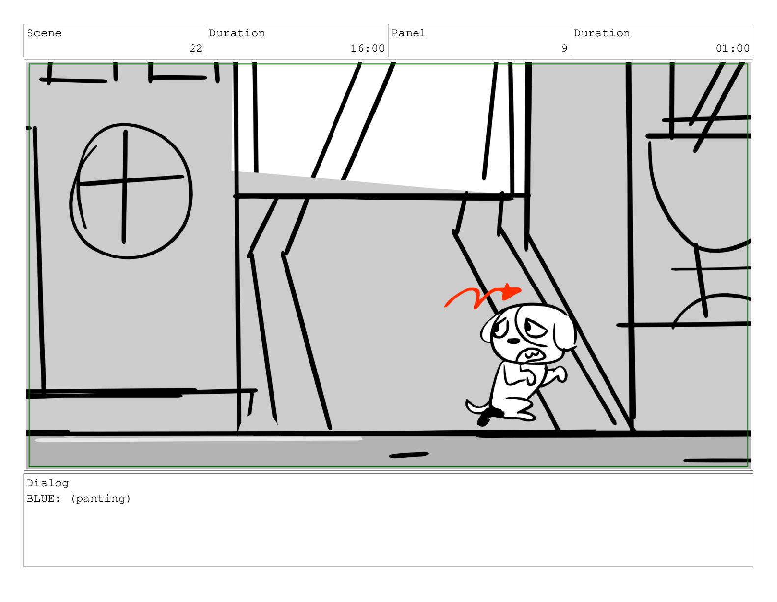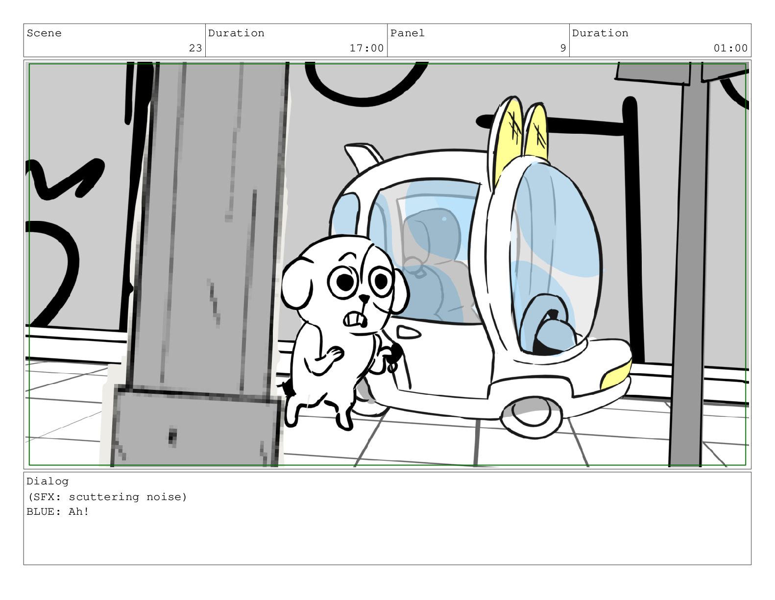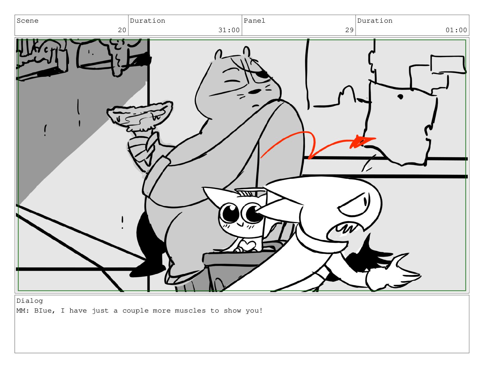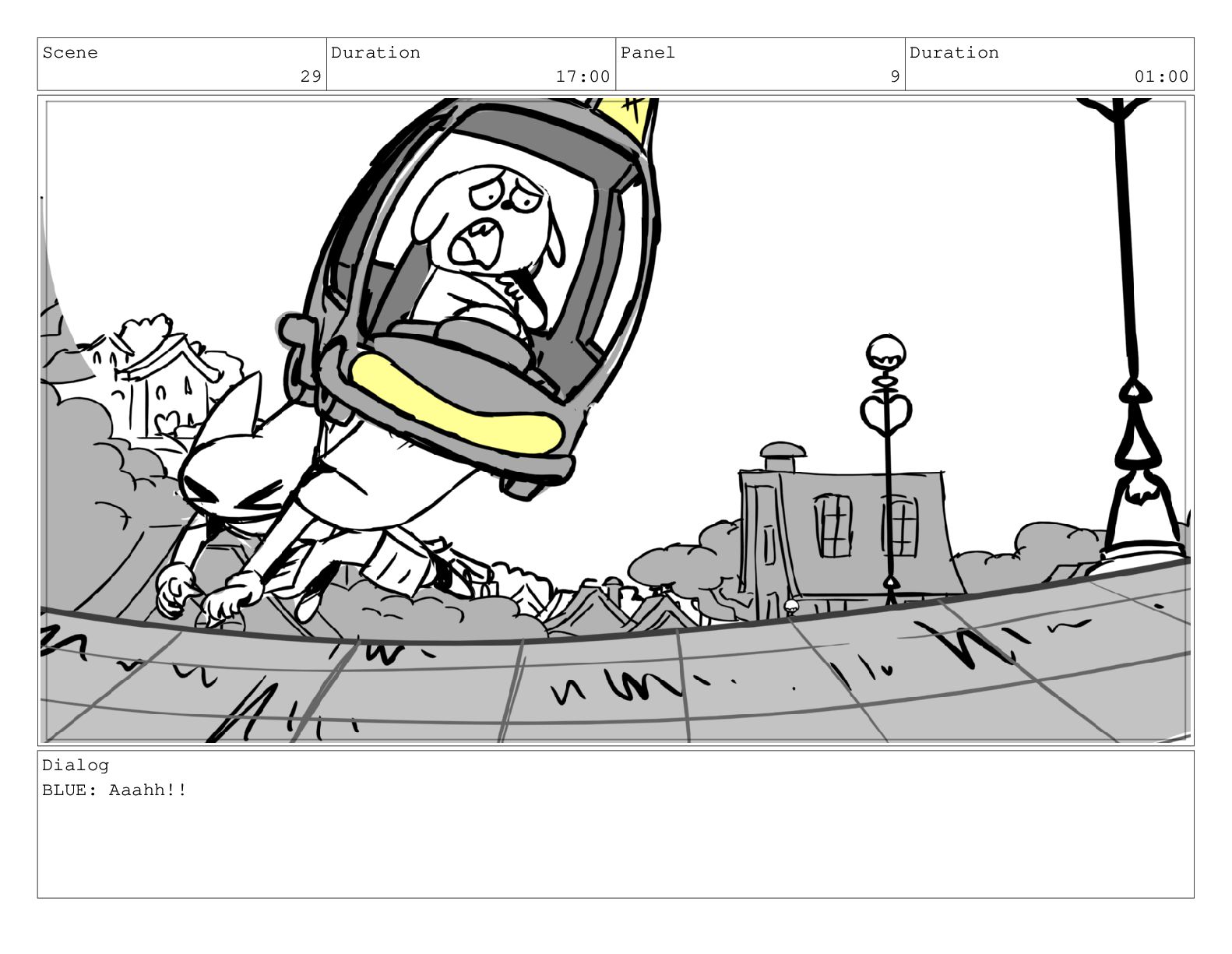 Scene 29 Duration 17:00 Panel 9 Duration 01:00 Dialog BLUE: