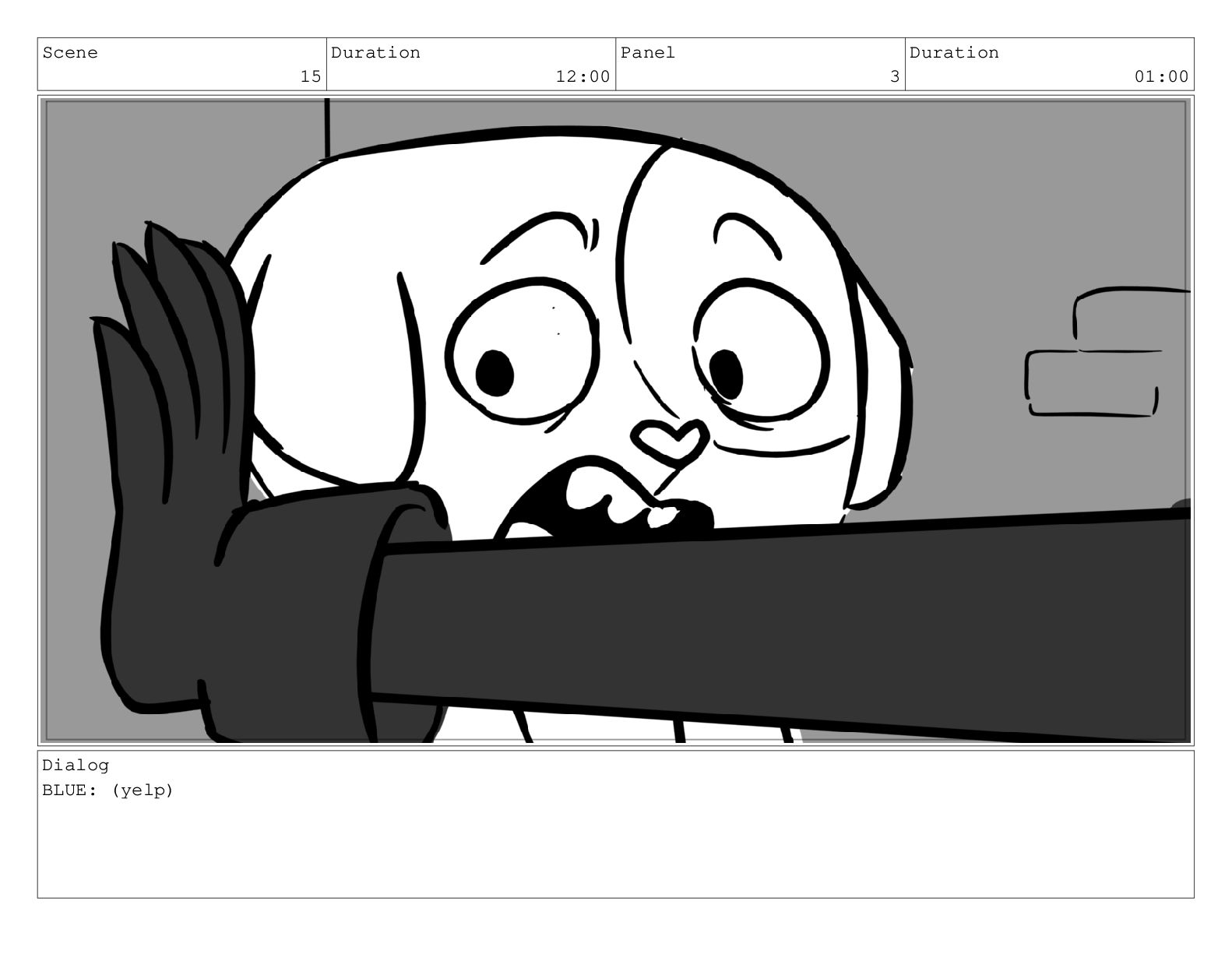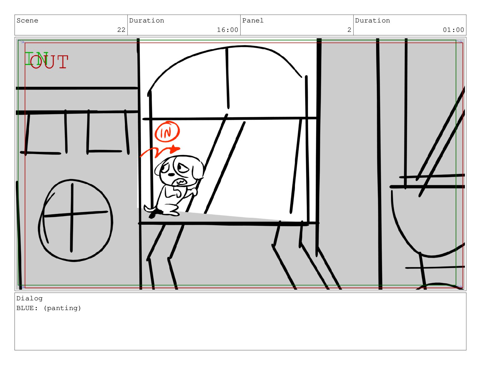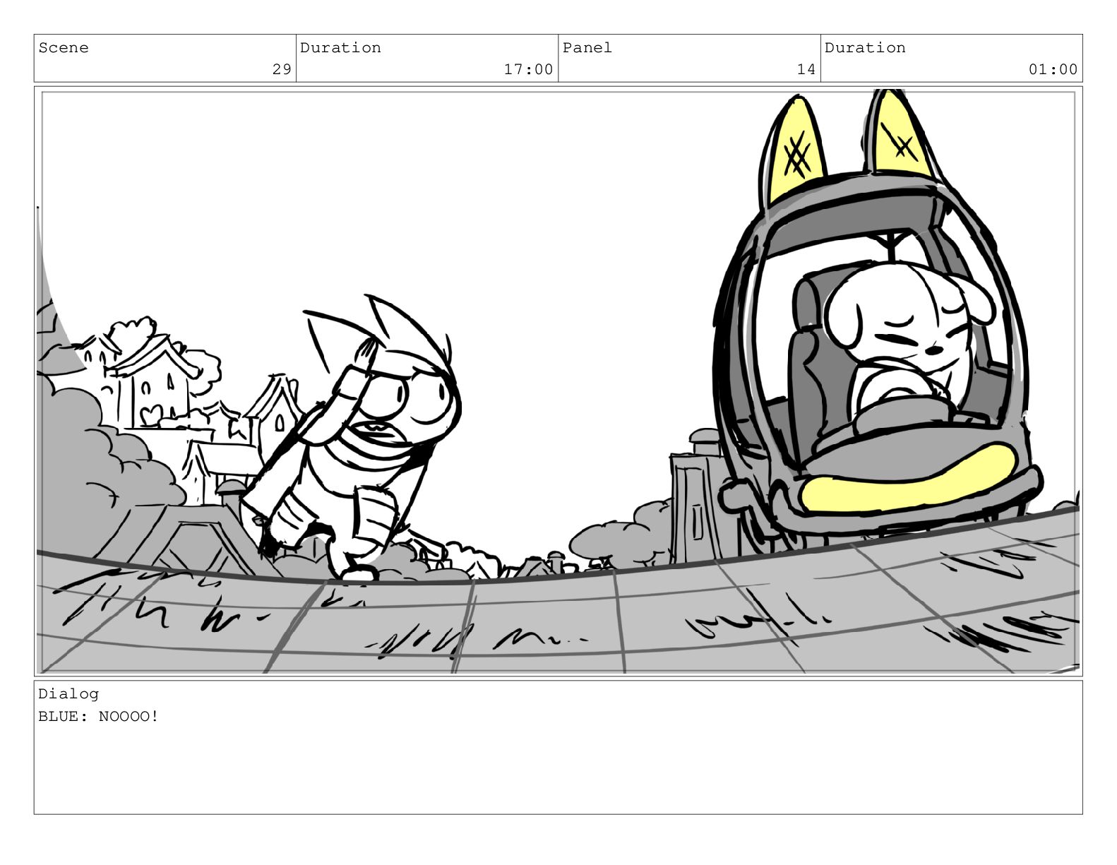 Scene 29 Duration 17:00 Panel 14 Duration 01:00 Dialog BLUE: