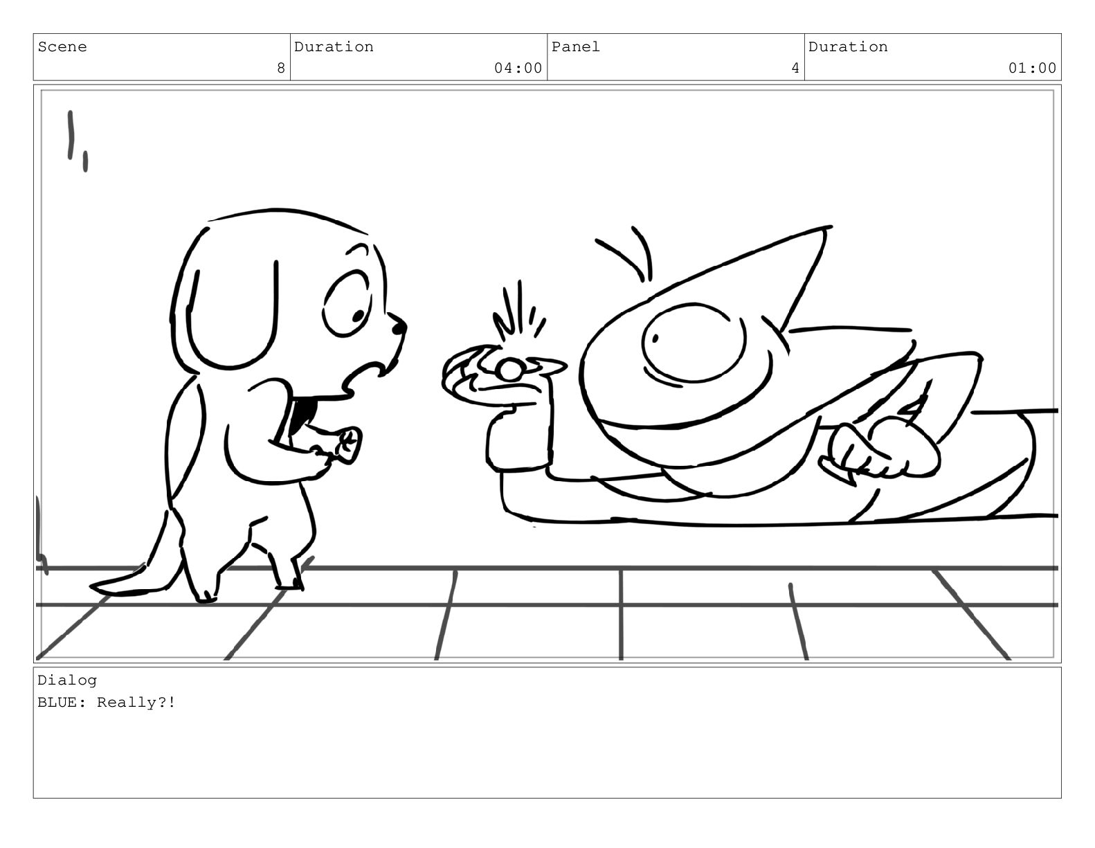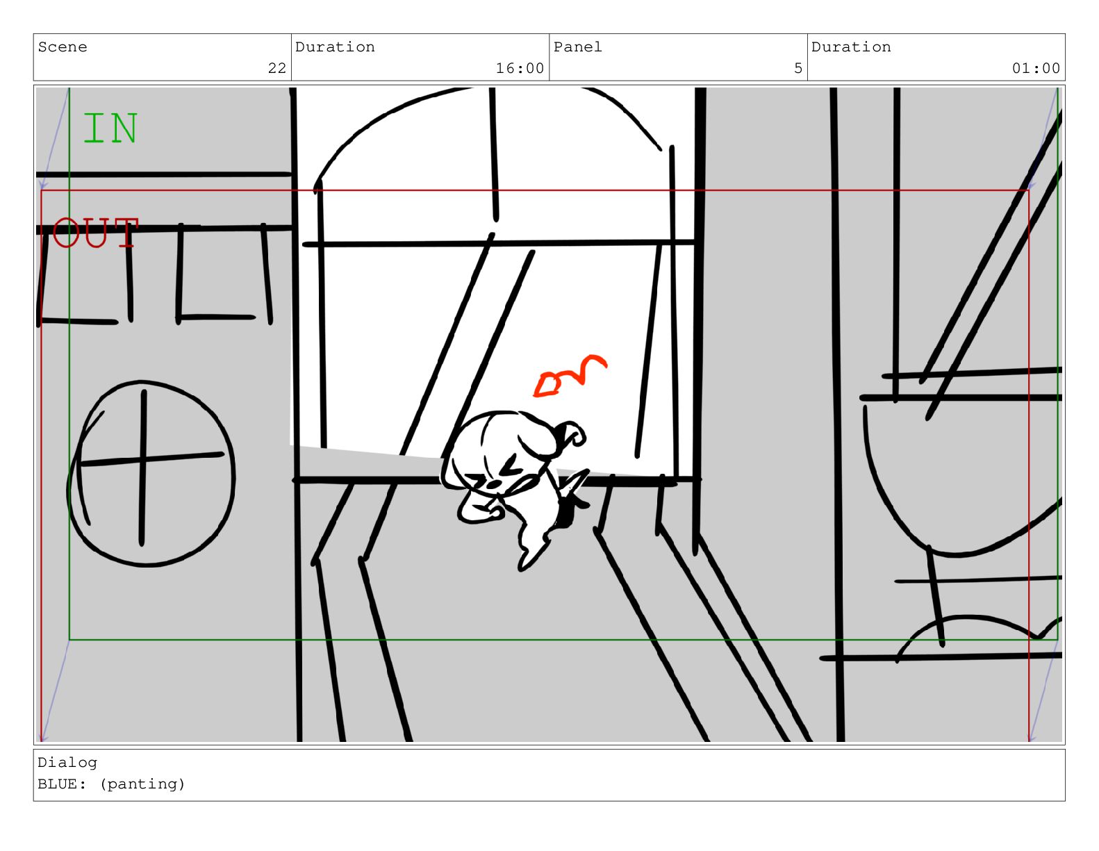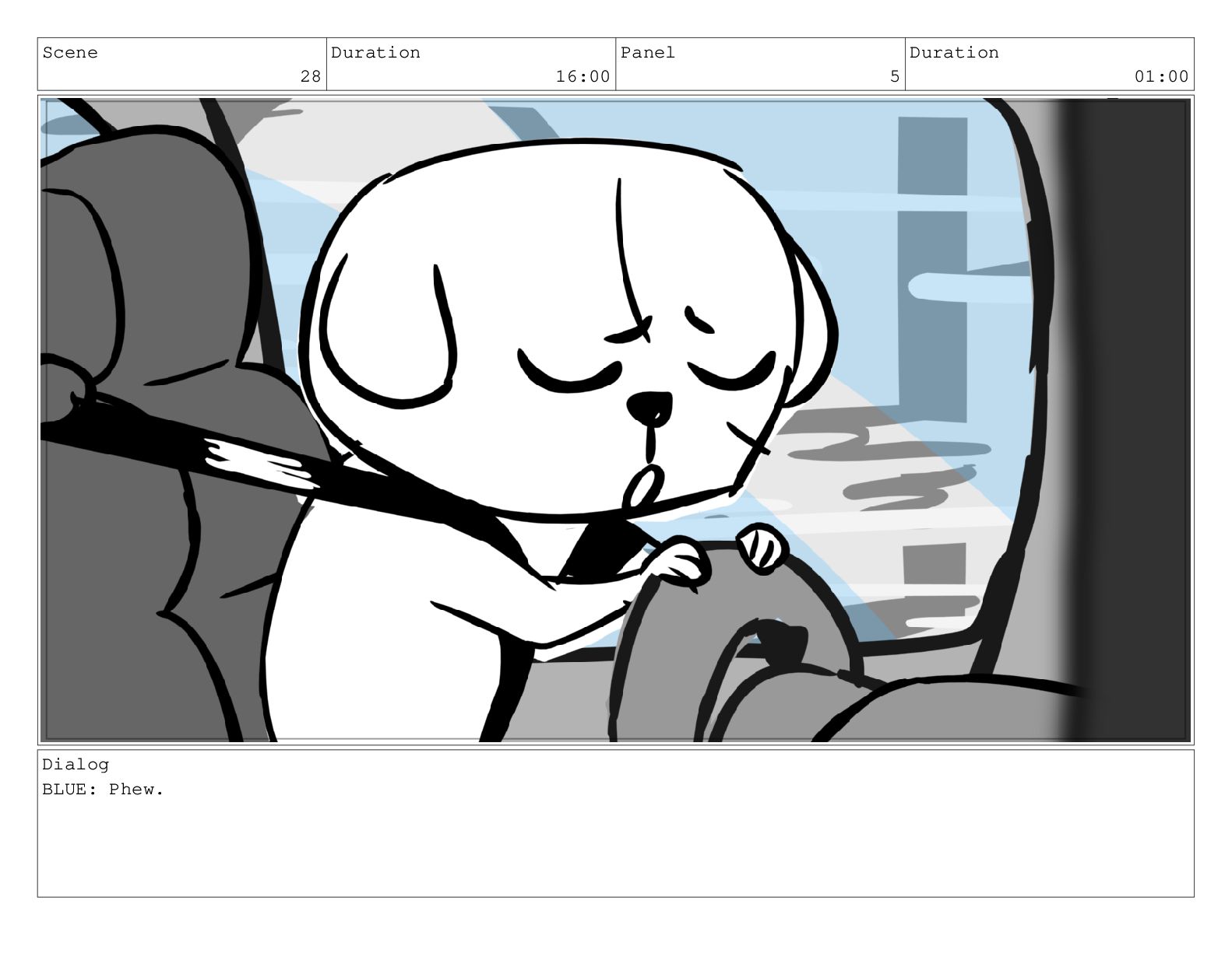 Scene 28 Duration 16:00 Panel 5 Duration 01:00 Dialog BLUE: