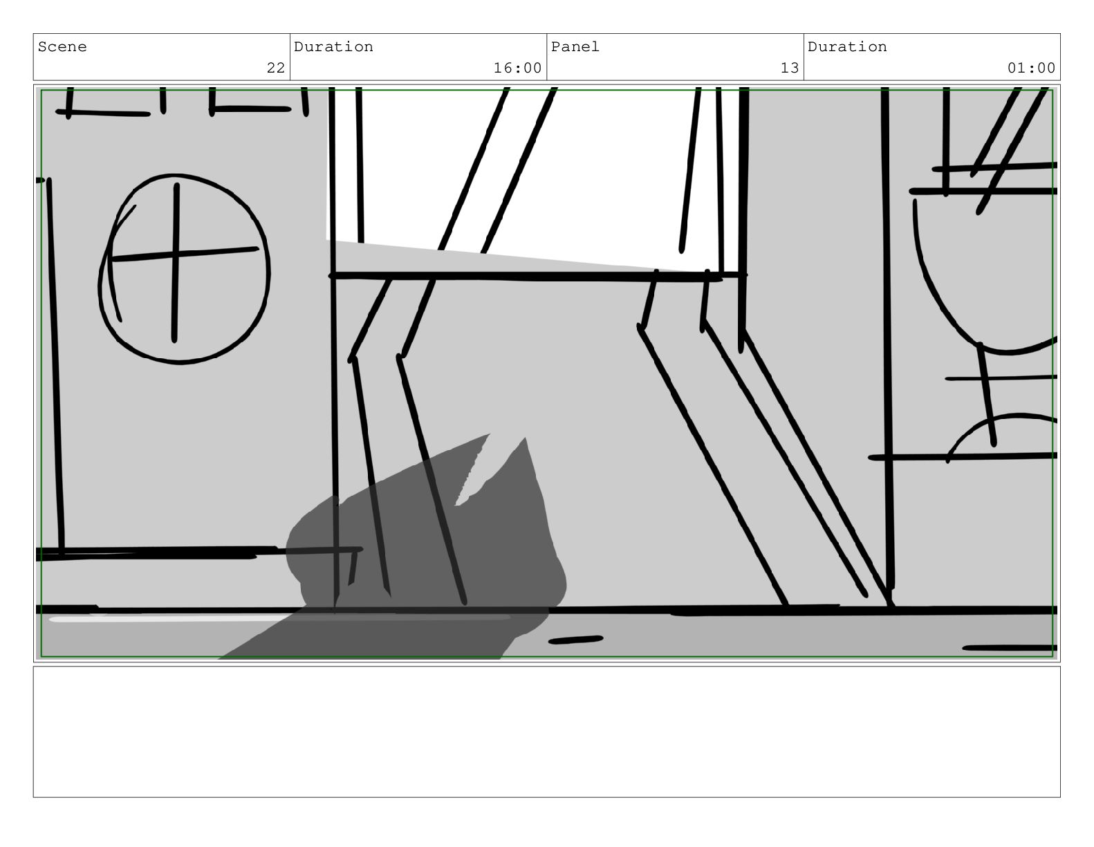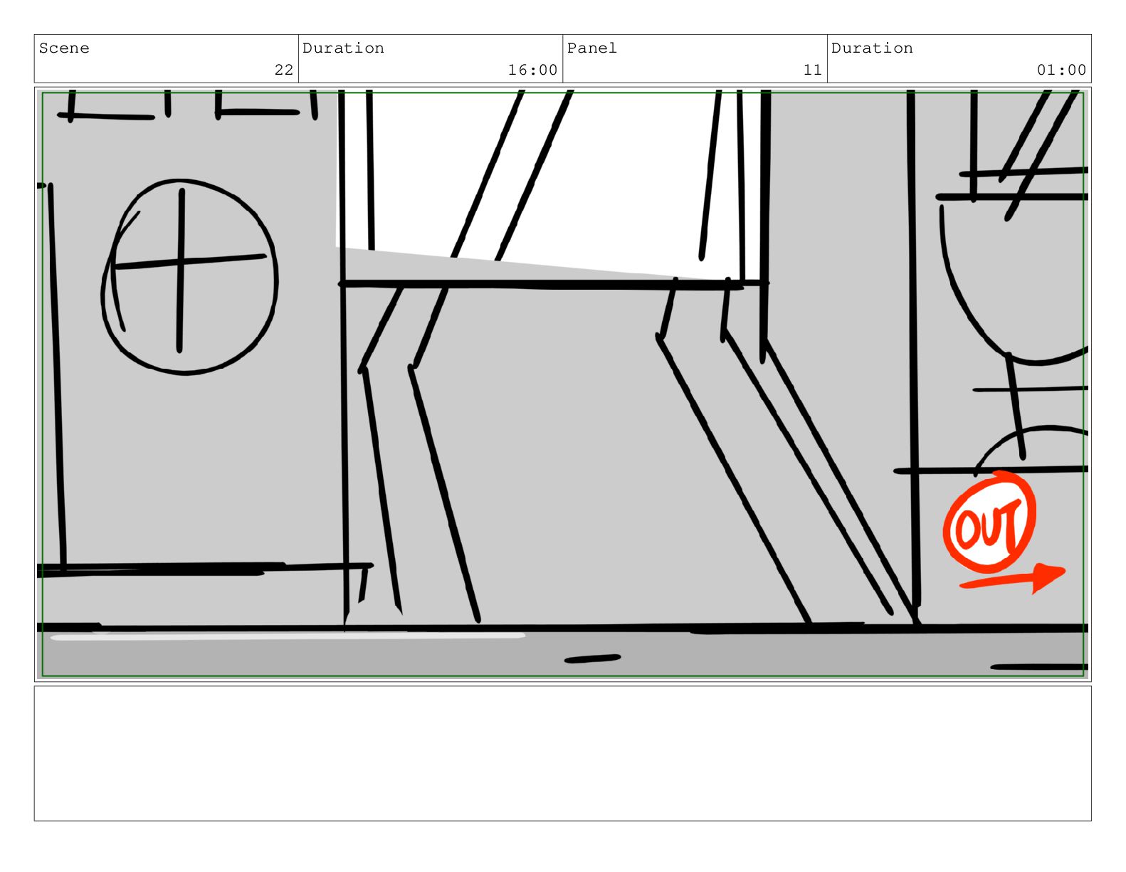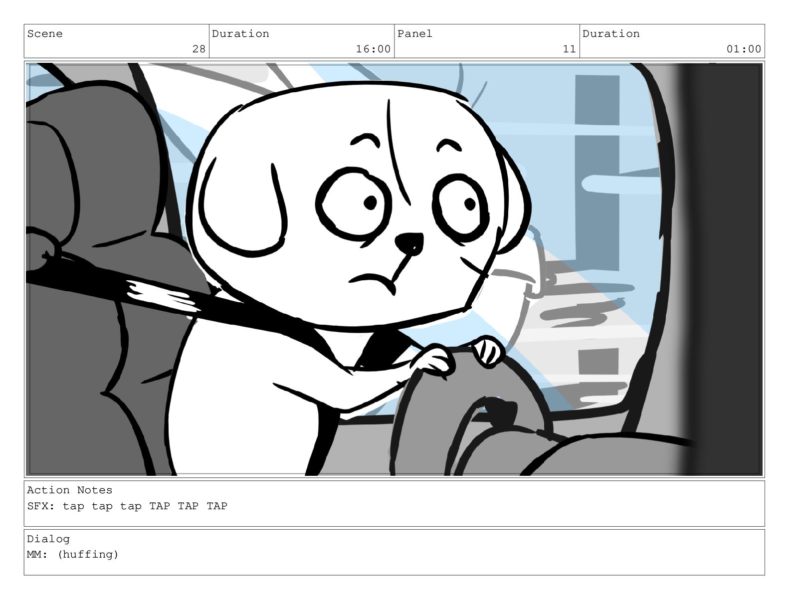 Scene 28 Duration 16:00 Panel 11 Duration 01:00 Action Notes