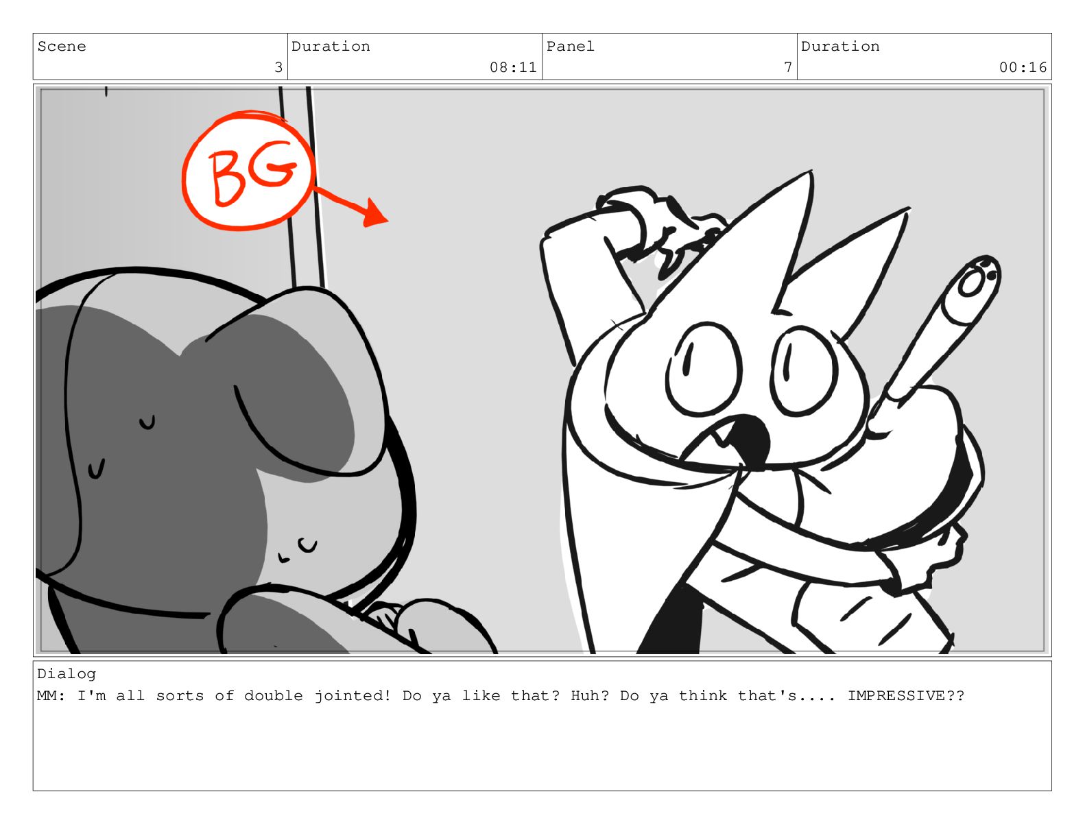 Scene 32 Duration 07:00 Panel 7 Duration 01:00 Dialog BC: