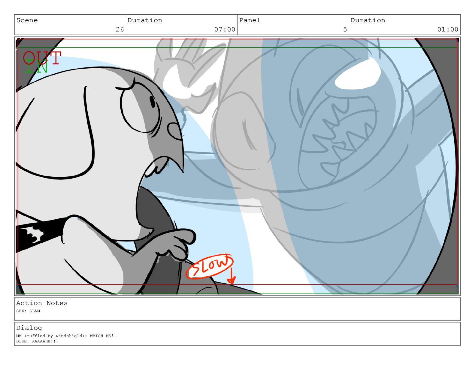 Scene 26 Duration 07:00 Panel 5 Duration 01:00 Action Notes
