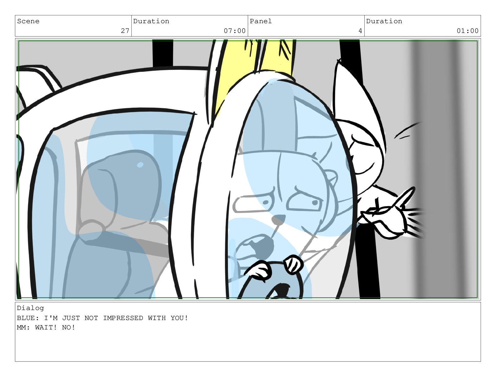 Scene 27 Duration 07:00 Panel 4 Duration 01:00 Dialog BLUE: