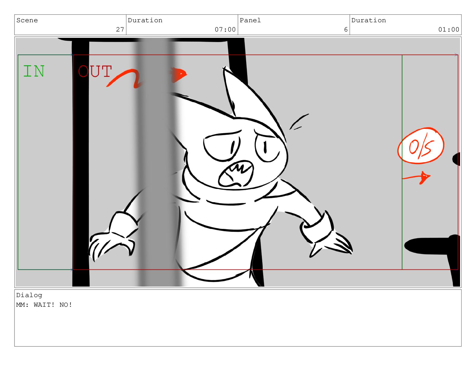 Scene 27 Duration 07:00 Panel 6 Duration 01:00 Dialog MM: