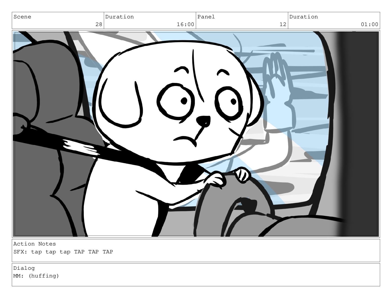 Scene 28 Duration 16:00 Panel 12 Duration 01:00 Action Notes