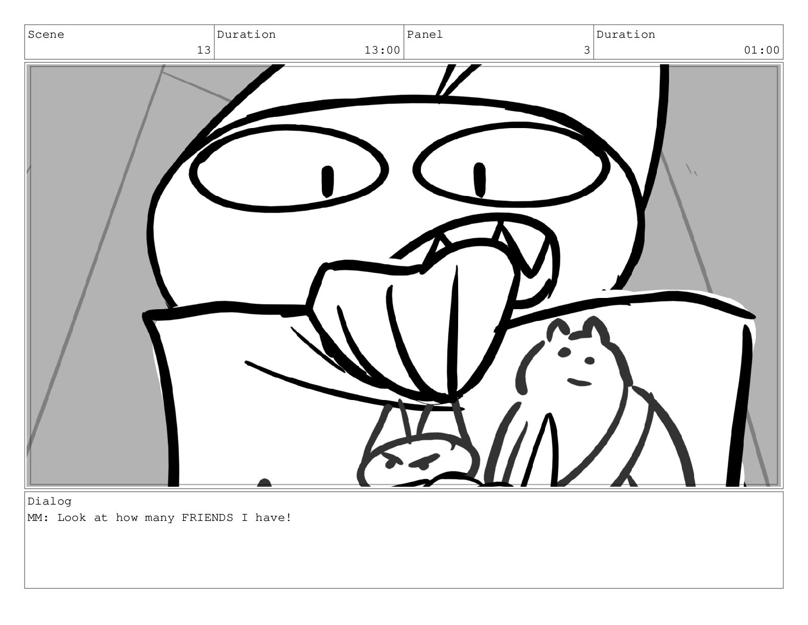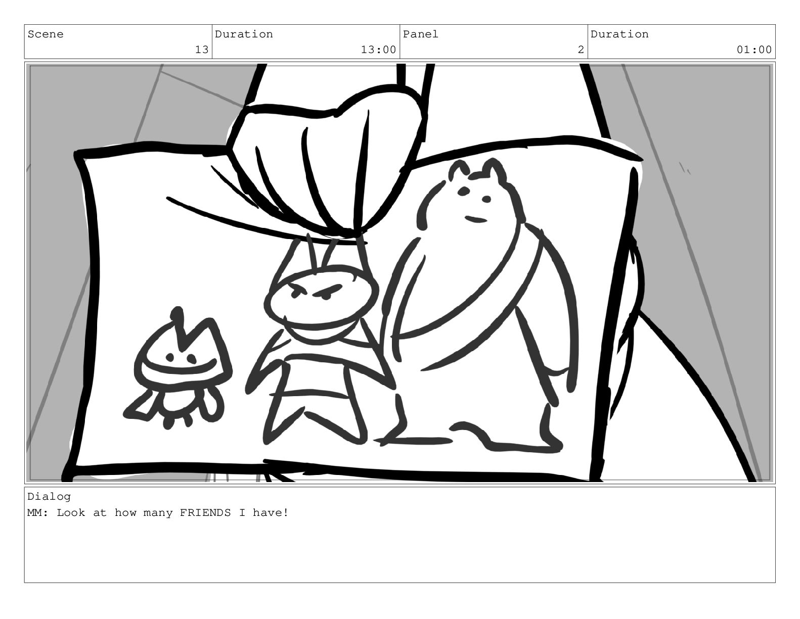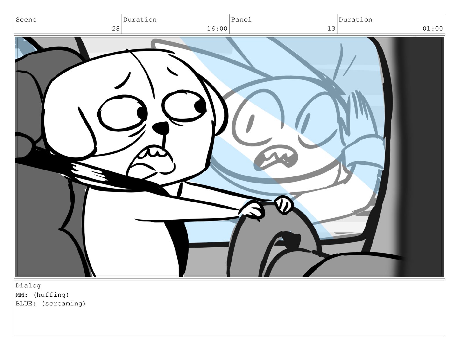 Scene 28 Duration 16:00 Panel 13 Duration 01:00 Dialog MM: