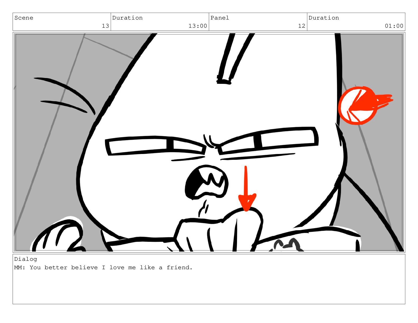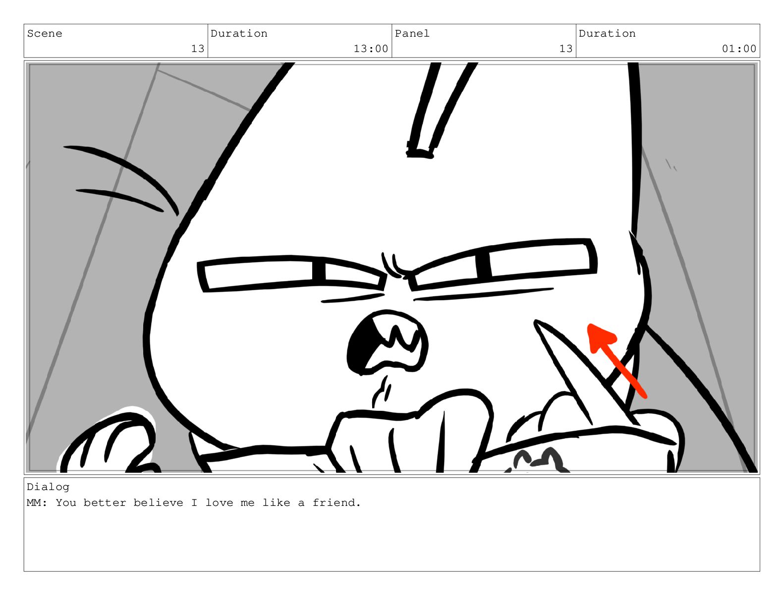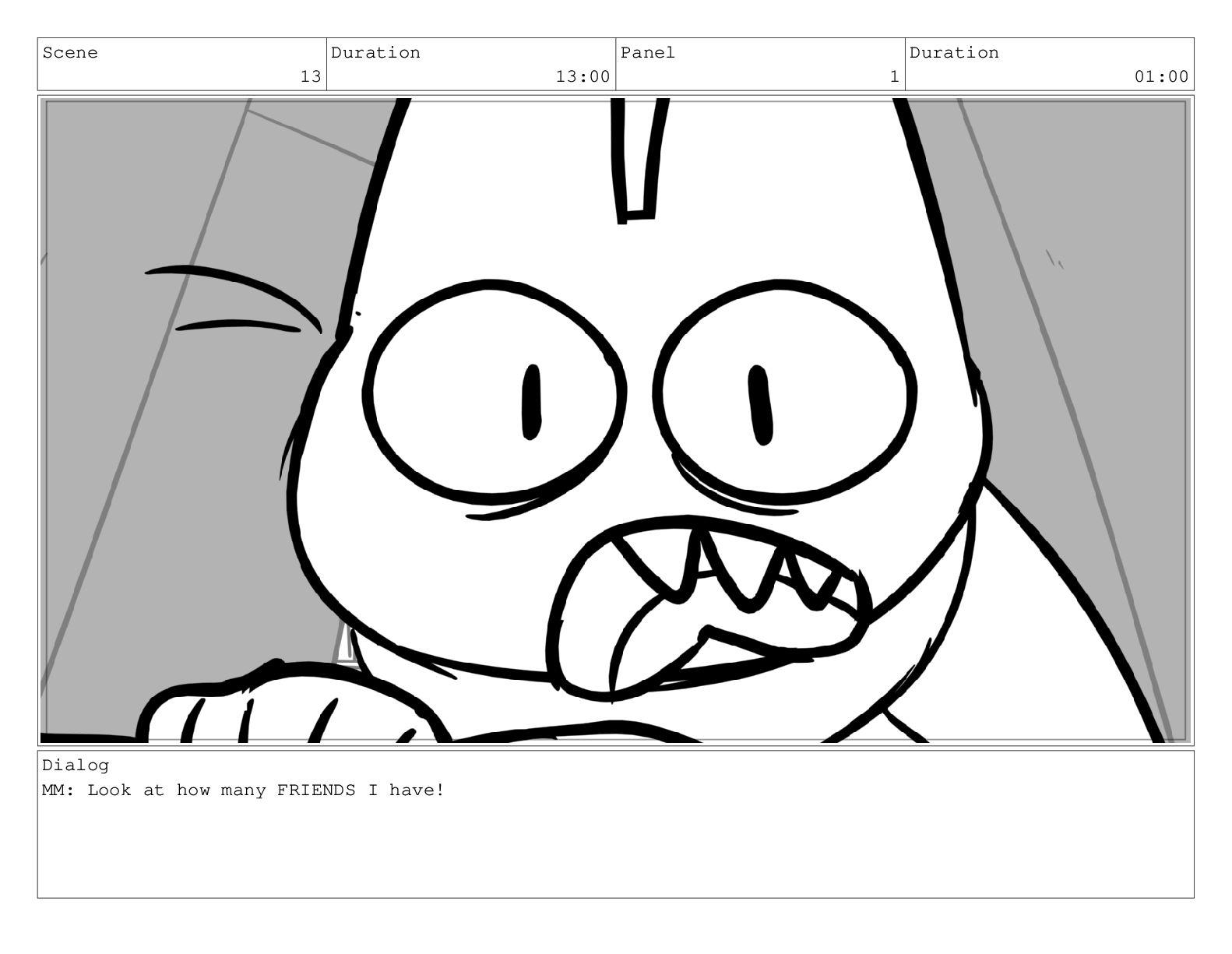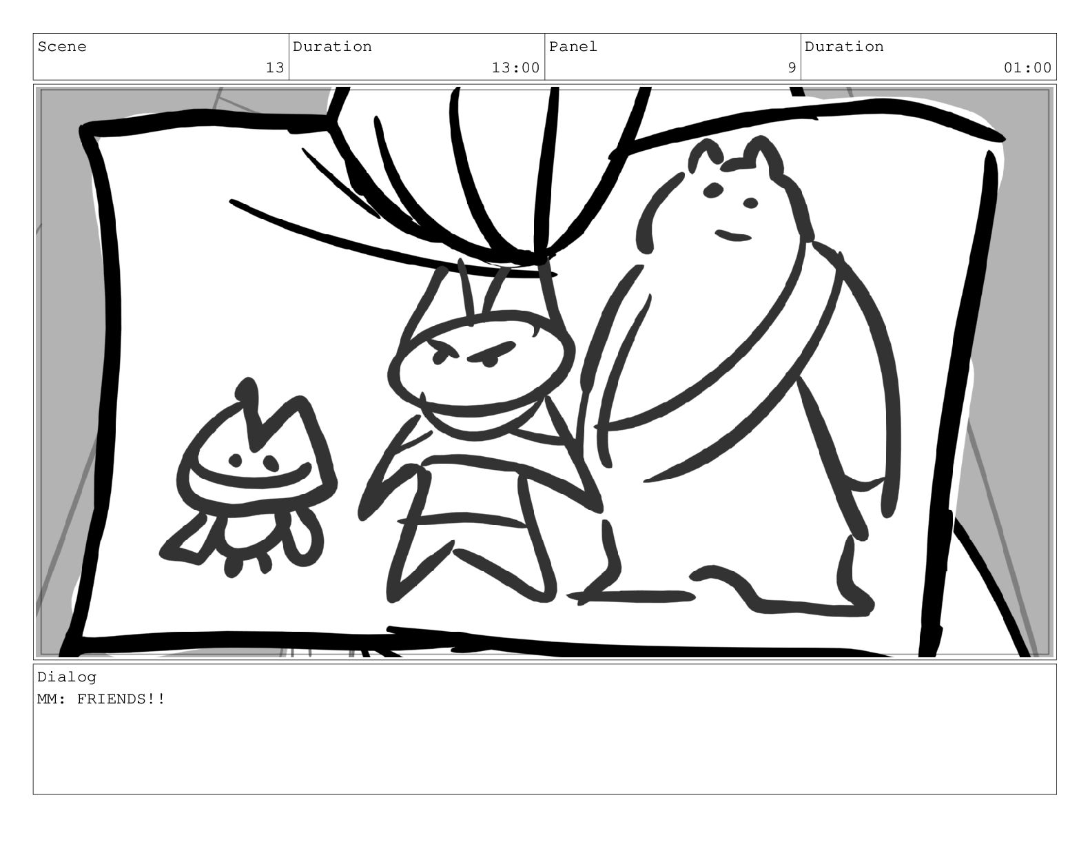 Scene 28 Duration 16:00 Panel 13 Duration 01:00 Dialog MM:
