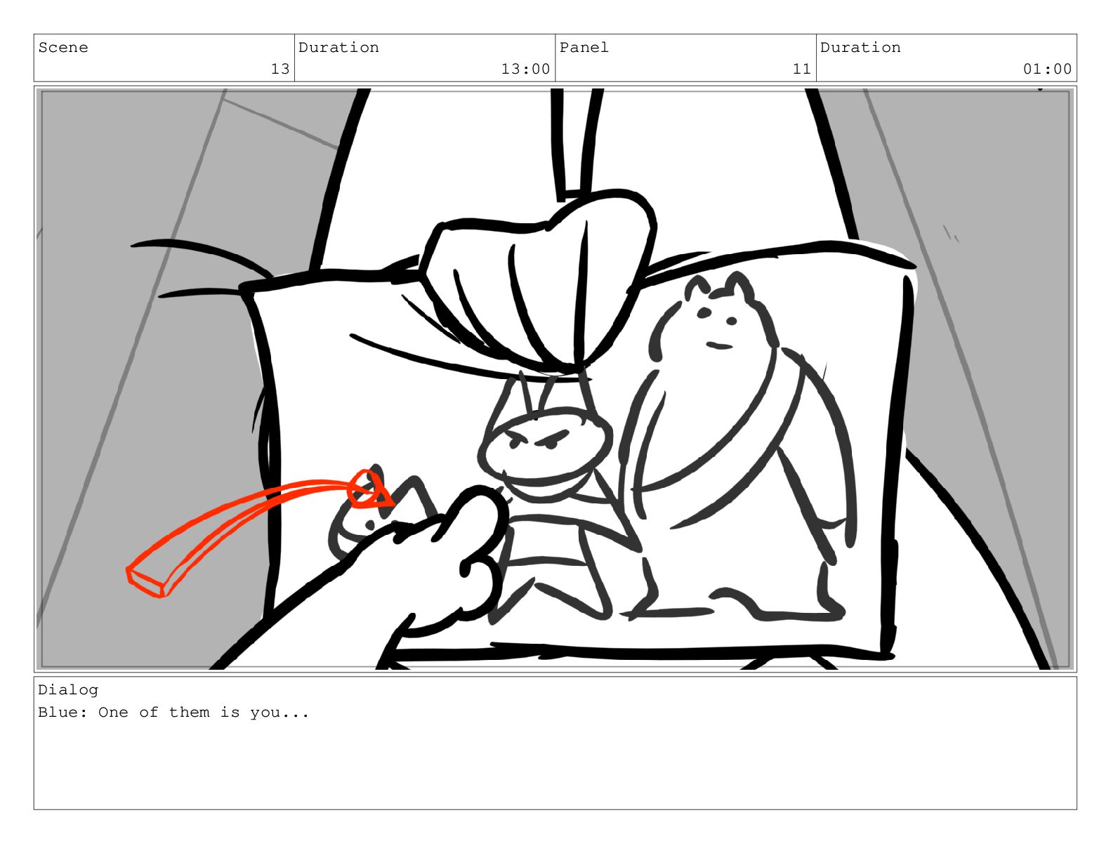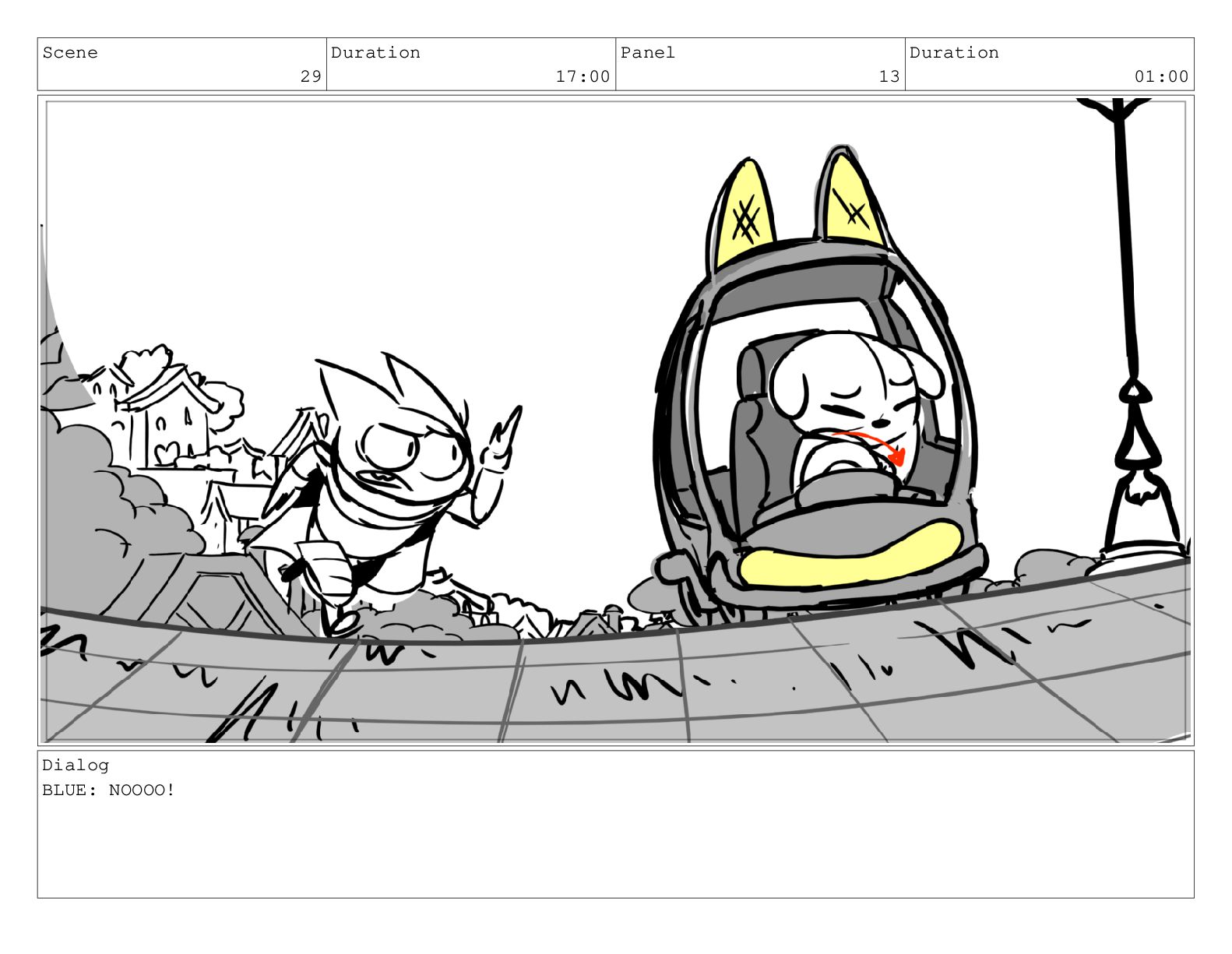 Scene 29 Duration 17:00 Panel 13 Duration 01:00 Dialog BLUE: