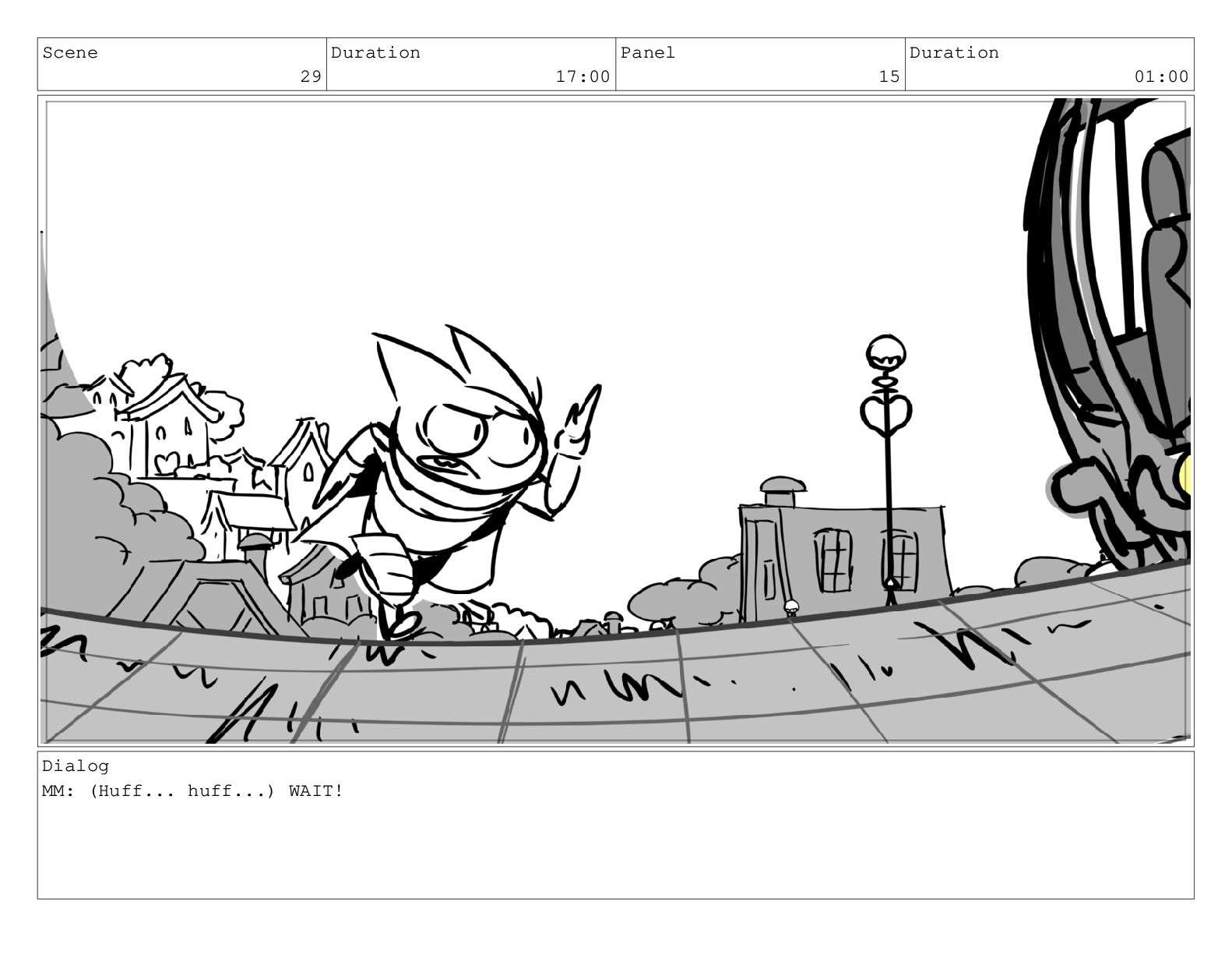 Scene 29 Duration 17:00 Panel 15 Duration 01:00 Dialog MM: