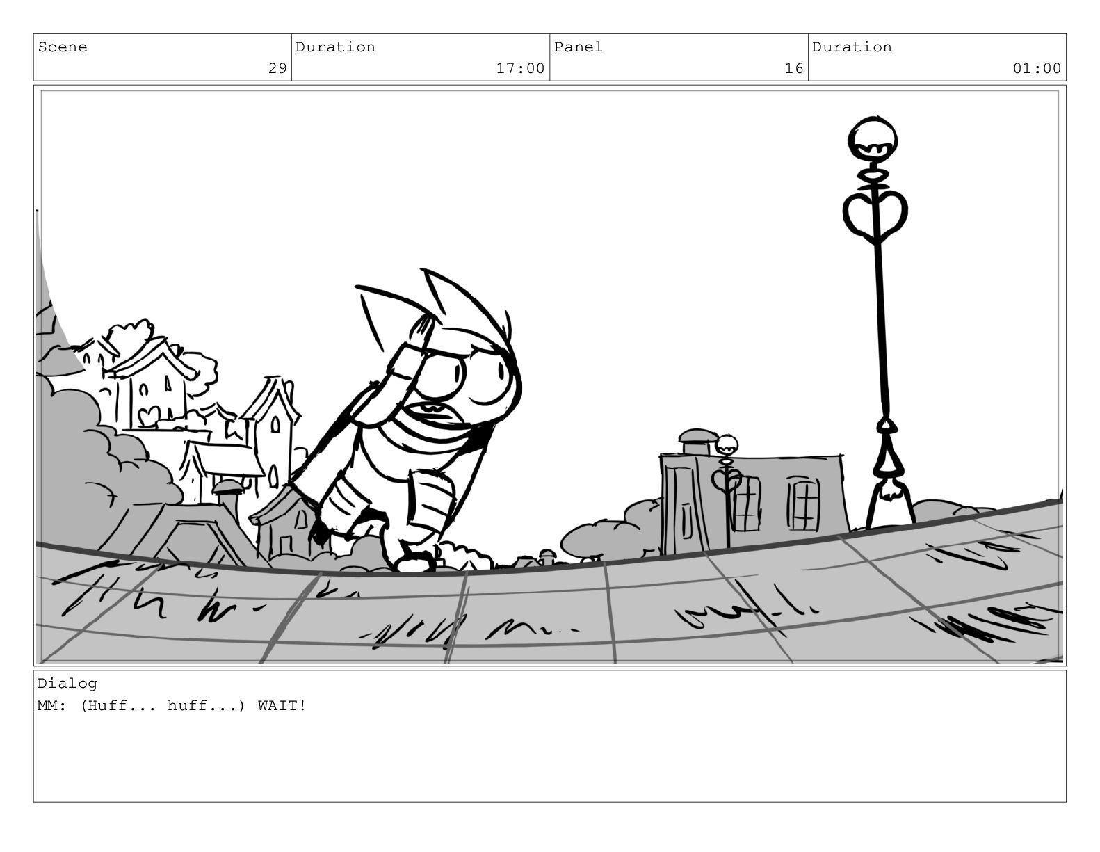 Scene 29 Duration 17:00 Panel 16 Duration 01:00 Dialog MM: