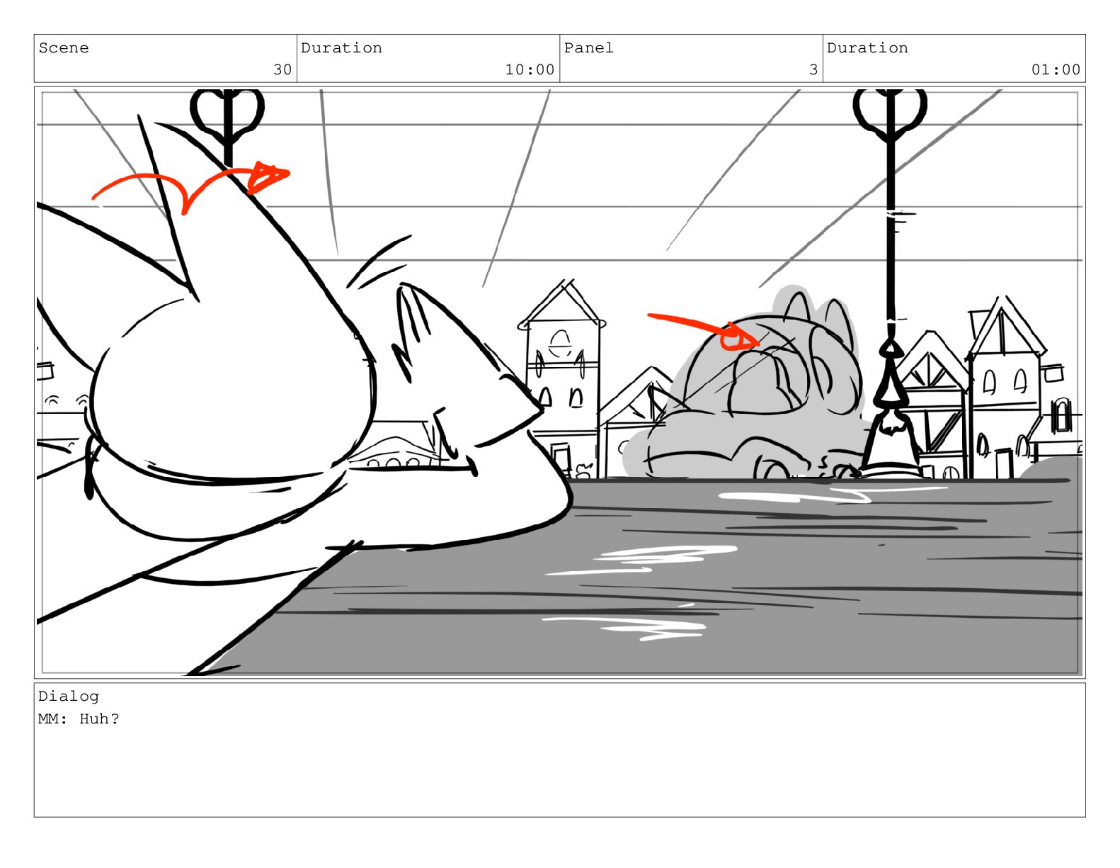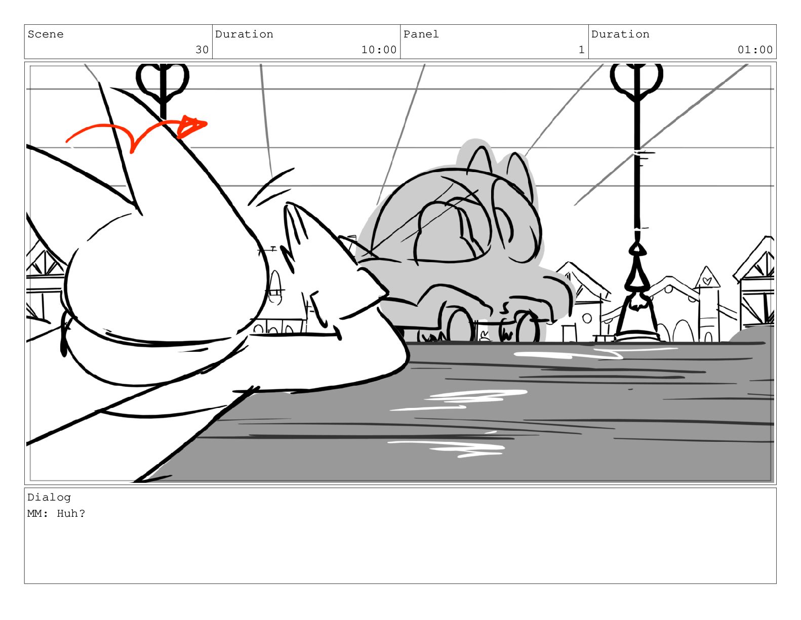 Scene 30 Duration 10:00 Panel 3 Duration 01:00 Dialog MM: