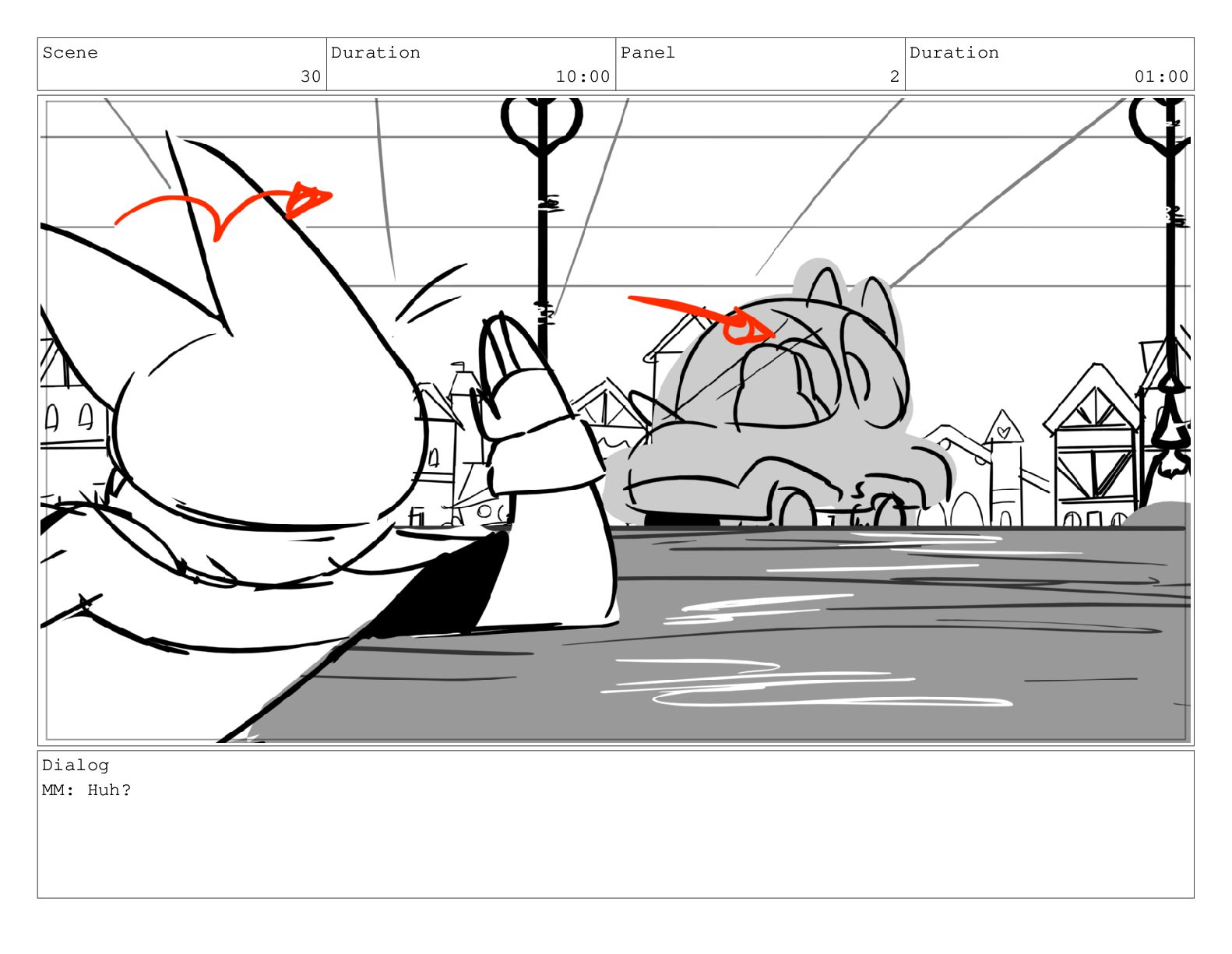 Scene 30 Duration 10:00 Panel 2 Duration 01:00 Dialog MM: