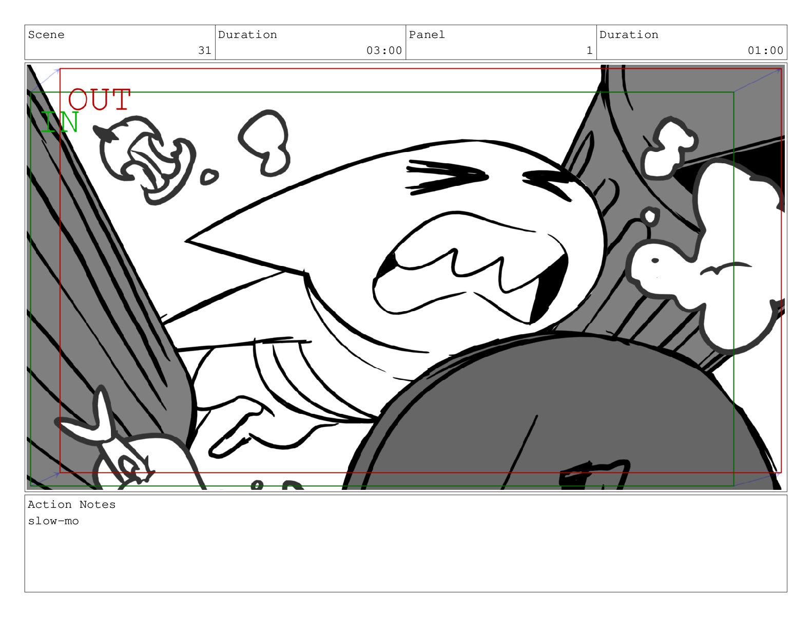 Scene 31 Duration 03:00 Panel 1 Duration 01:00 Action Notes