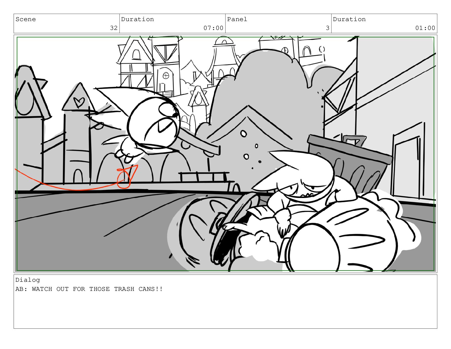 Scene 32 Duration 07:00 Panel 3 Duration 01:00 Dialog AB: