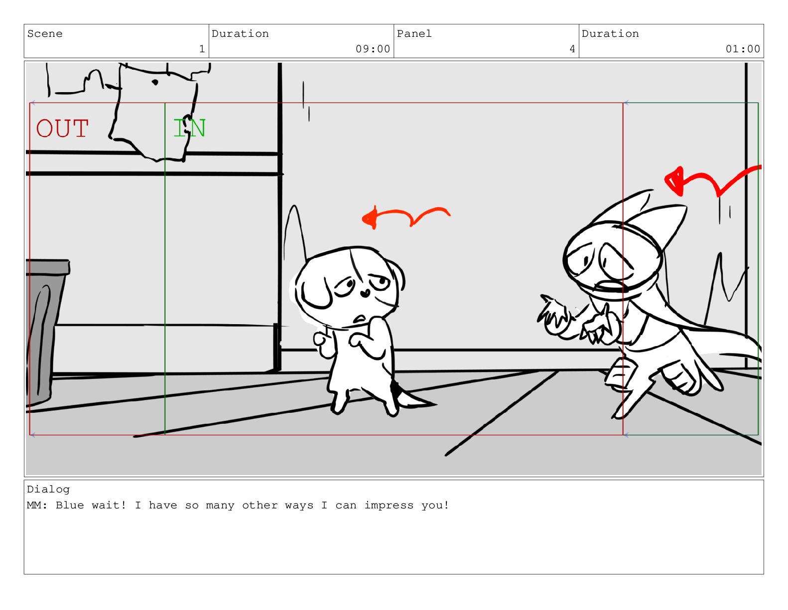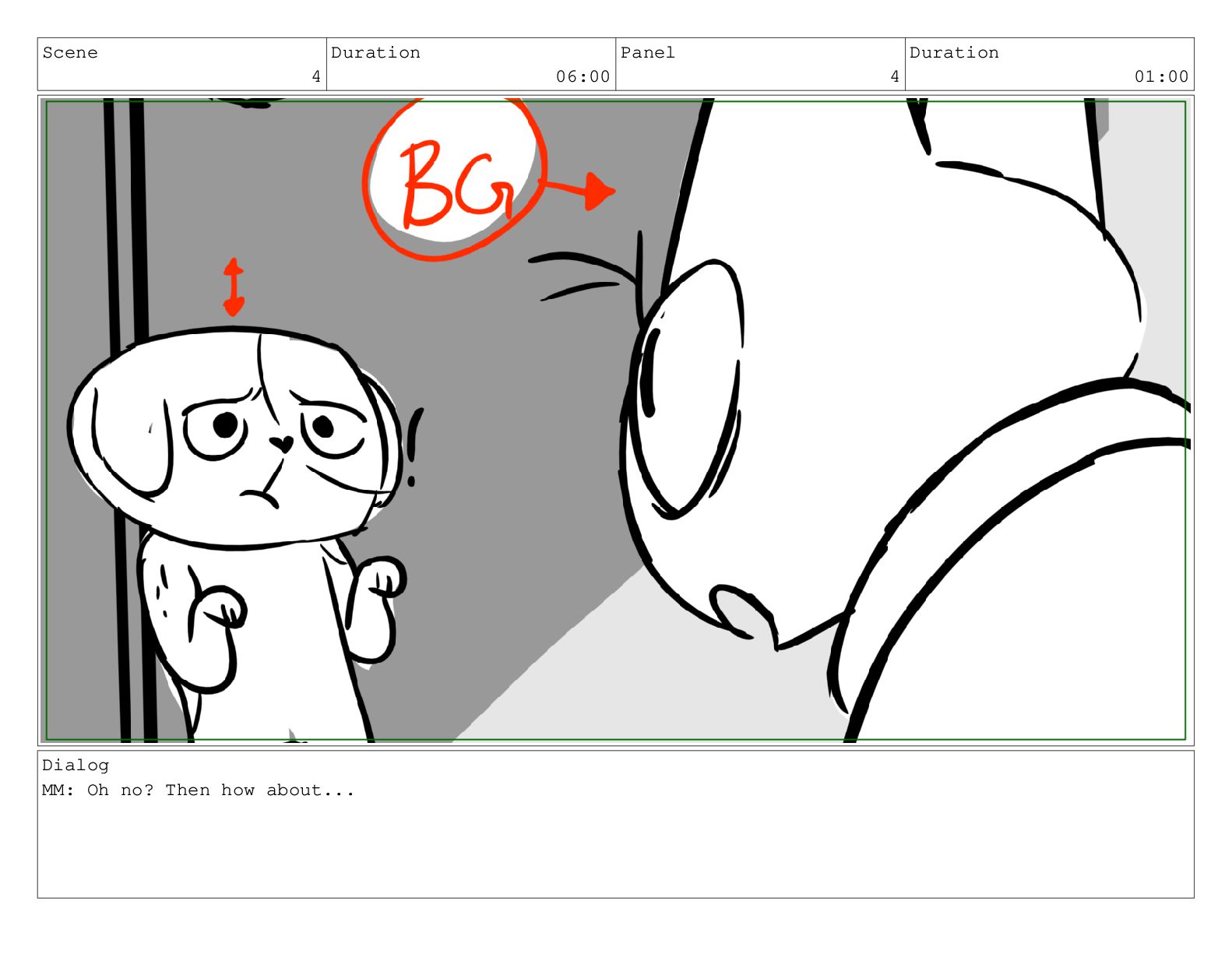 Scene 1 Duration 09:00 Panel 4 Duration 01:00 Dialog MM: