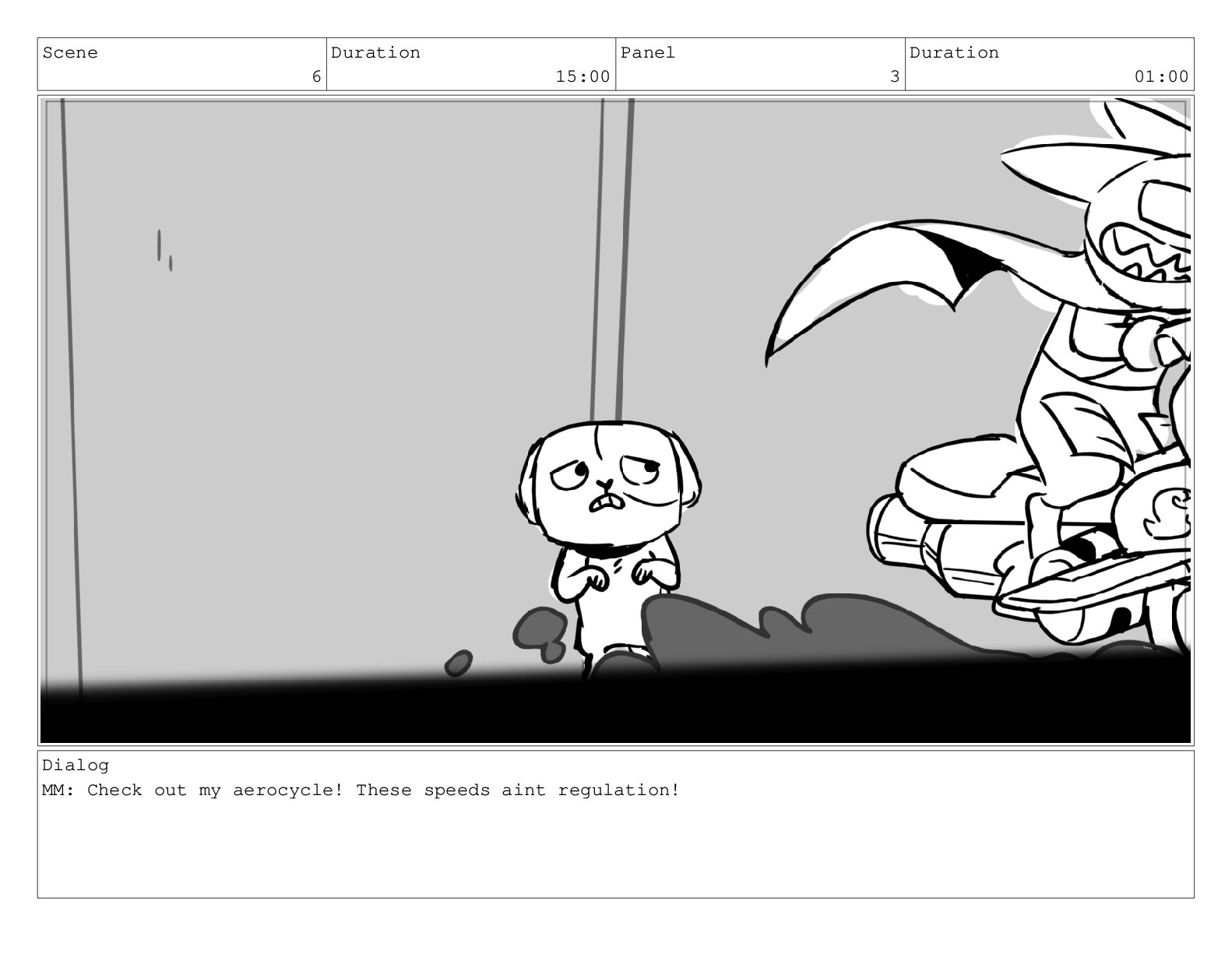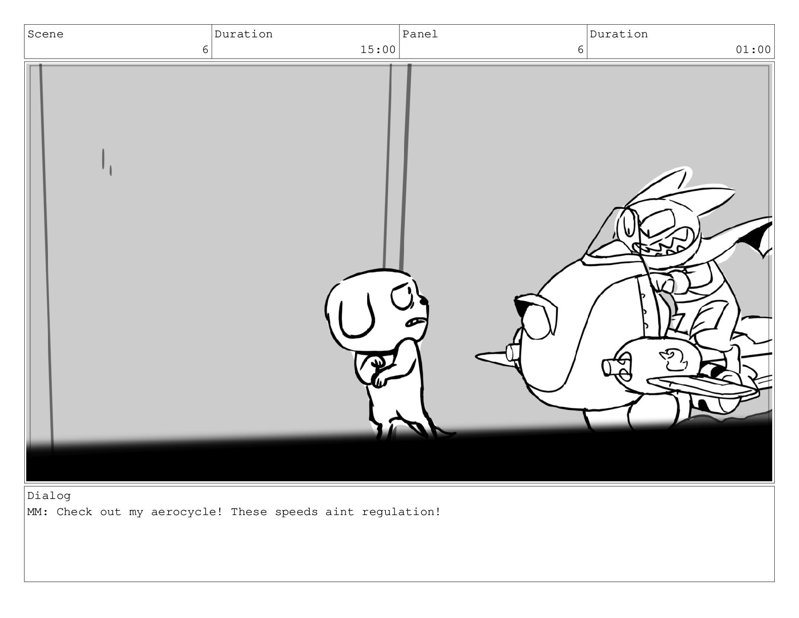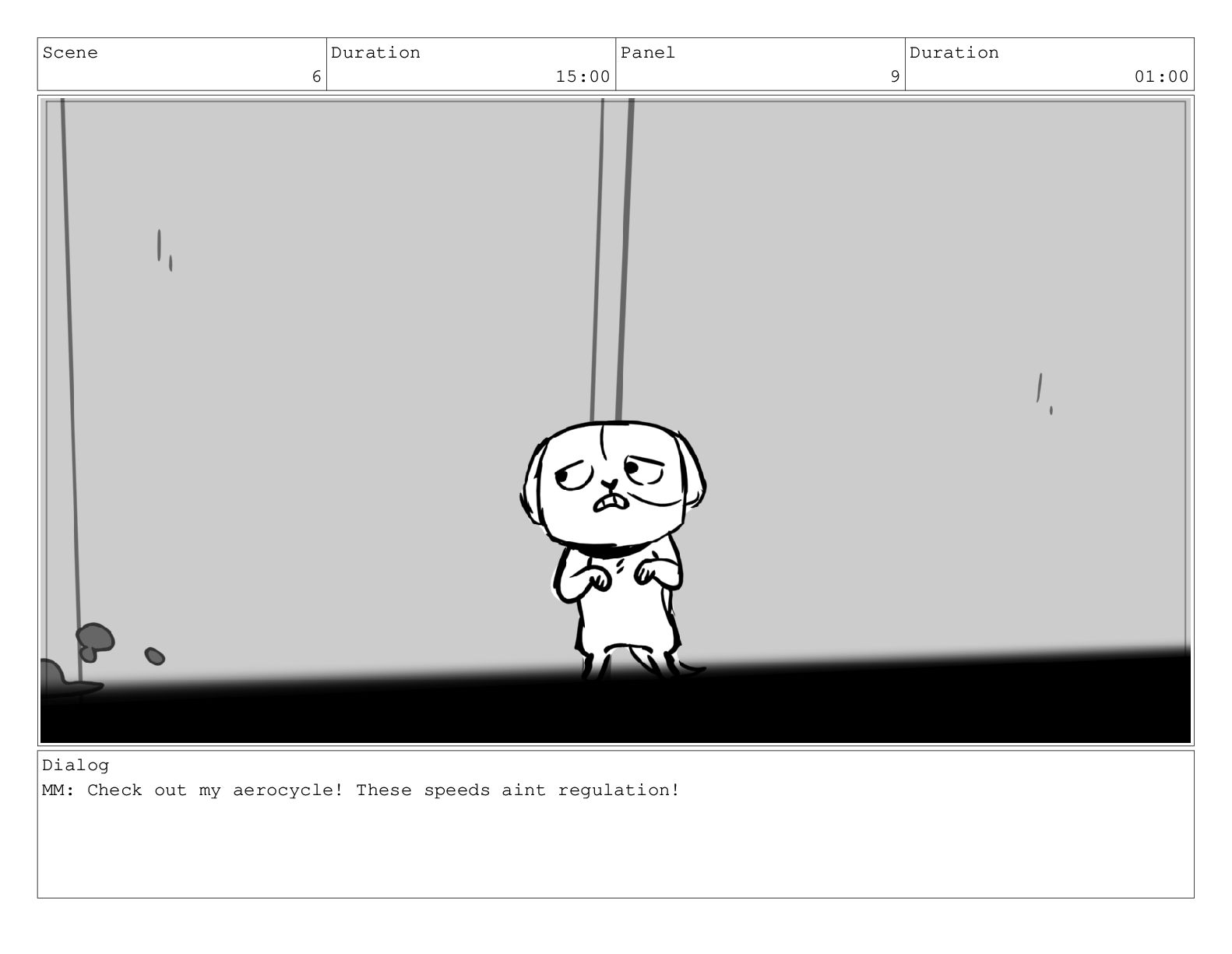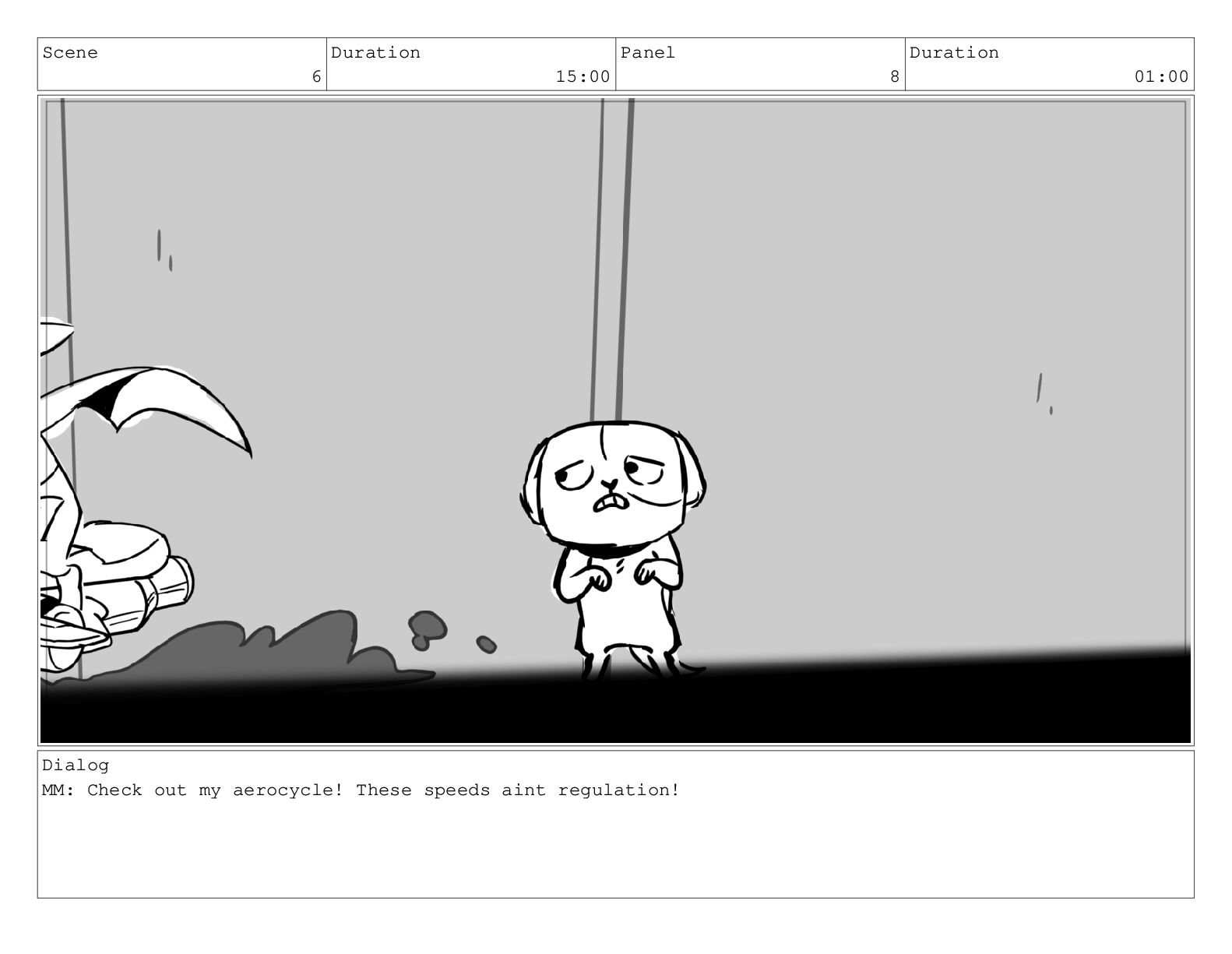 Scene 1 Duration 09:00 Panel 6 Duration 01:00 Dialog MM: