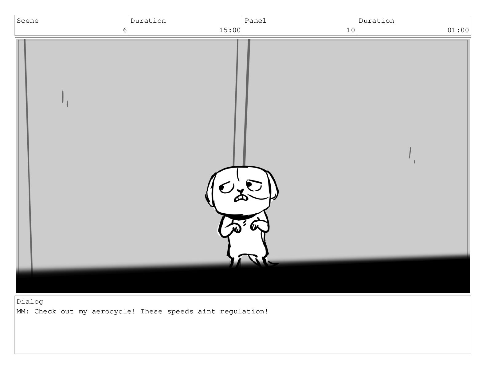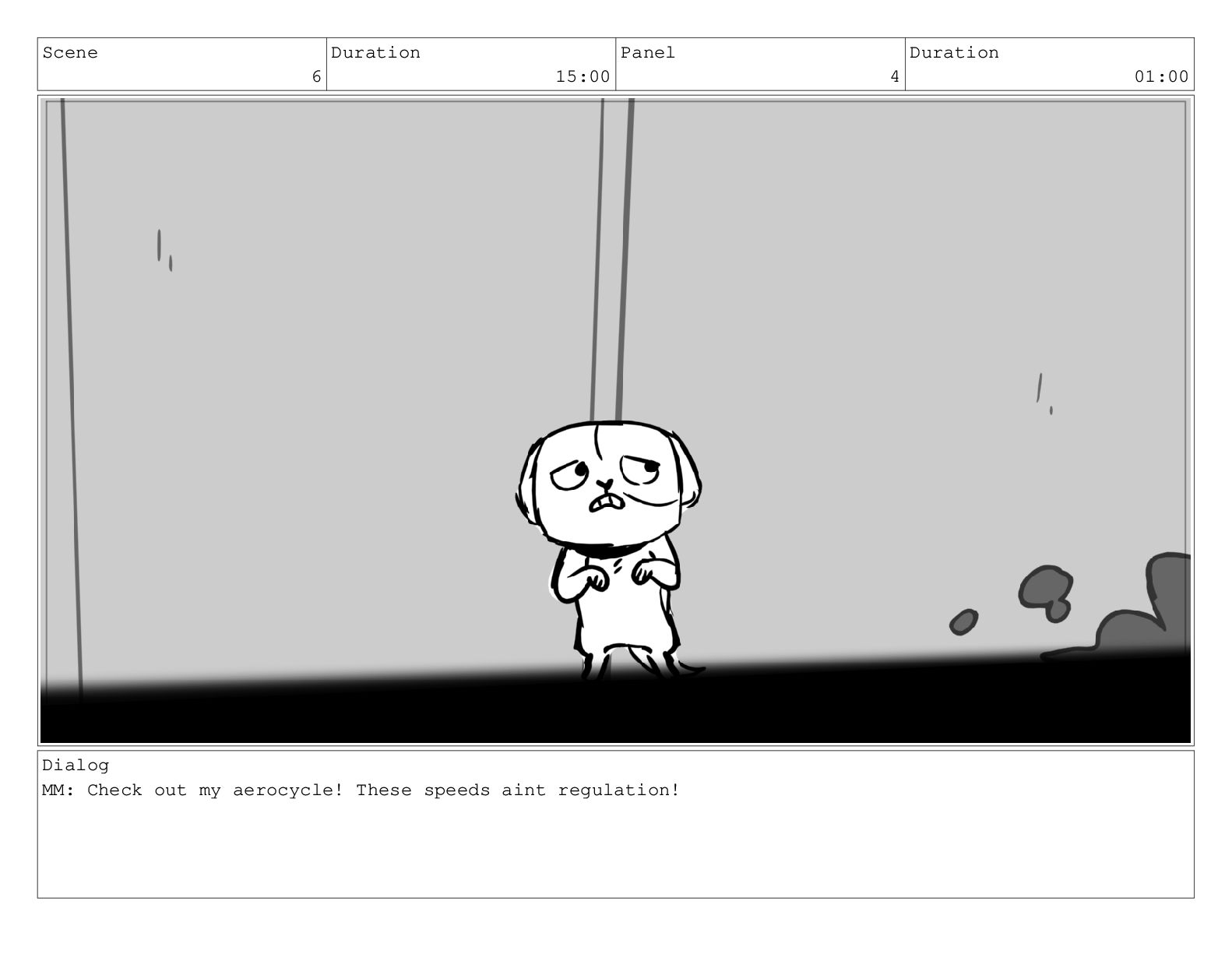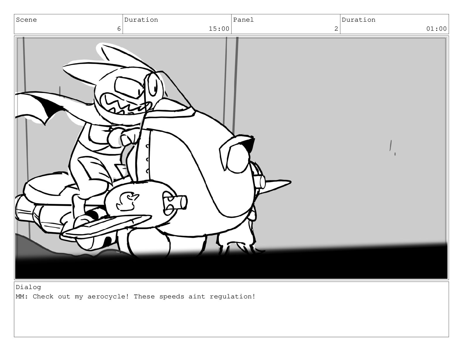 Scene 1 Duration 09:00 Panel 6 Duration 01:00 Dialog MM: