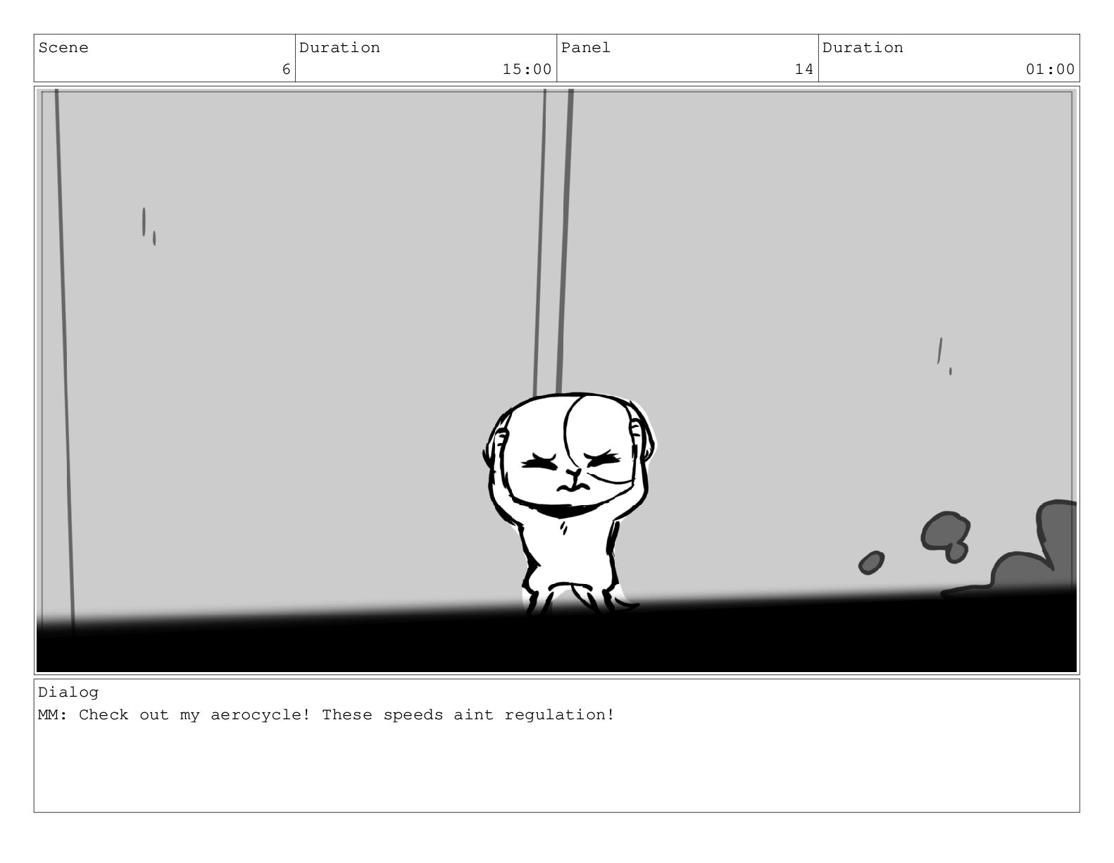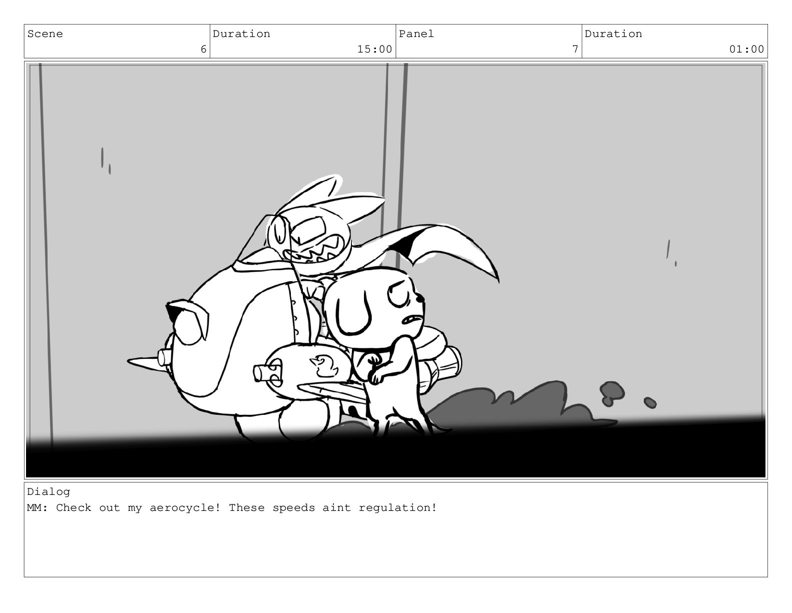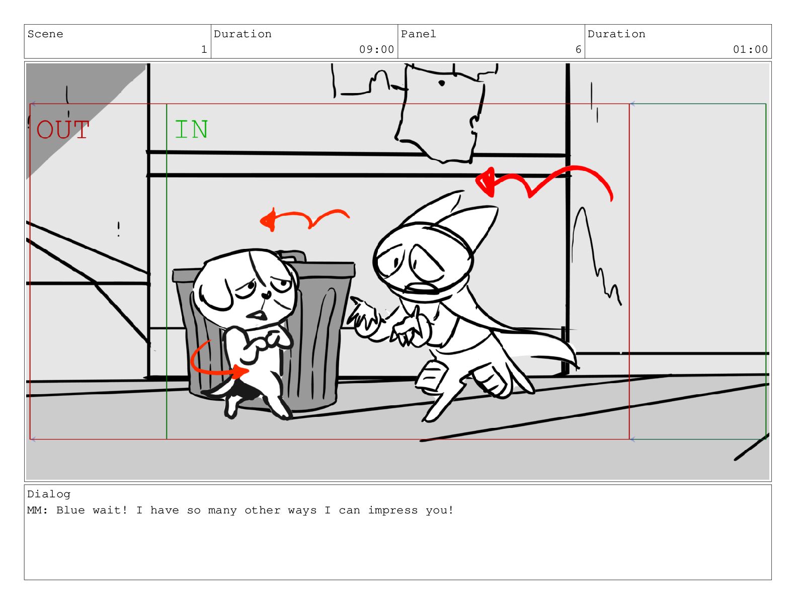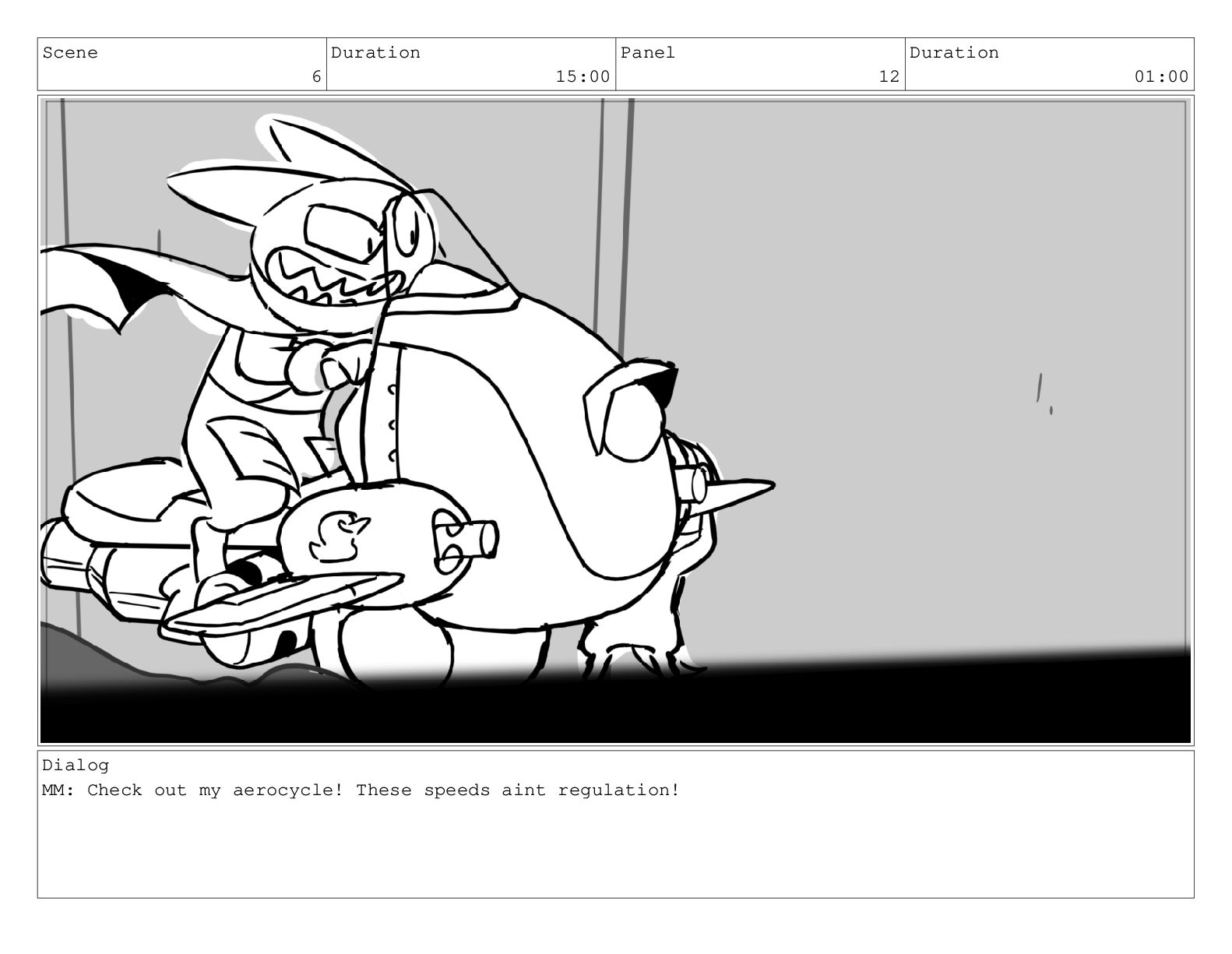 Scene 1 Duration 09:00 Panel 6 Duration 01:00 Dialog MM: