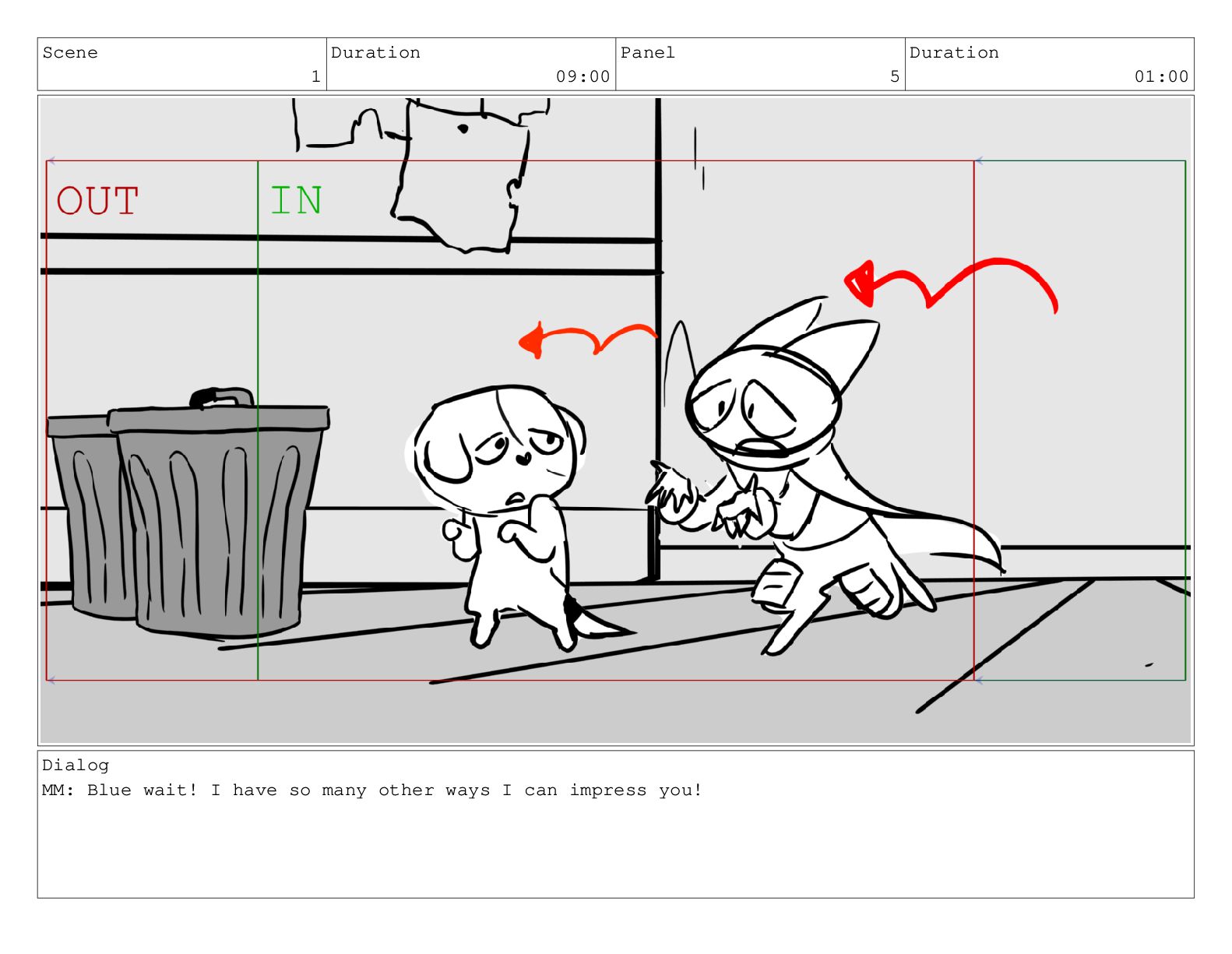 Scene 1 Duration 09:00 Panel 5 Duration 01:00 Dialog MM: