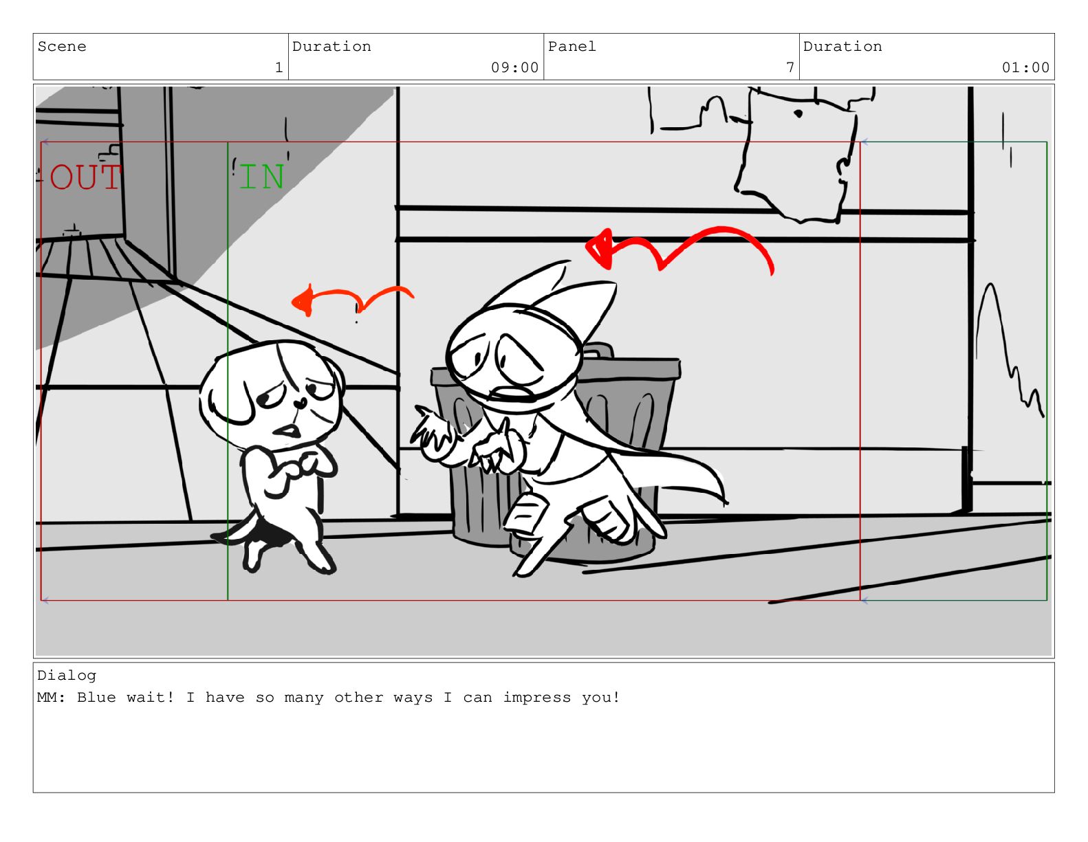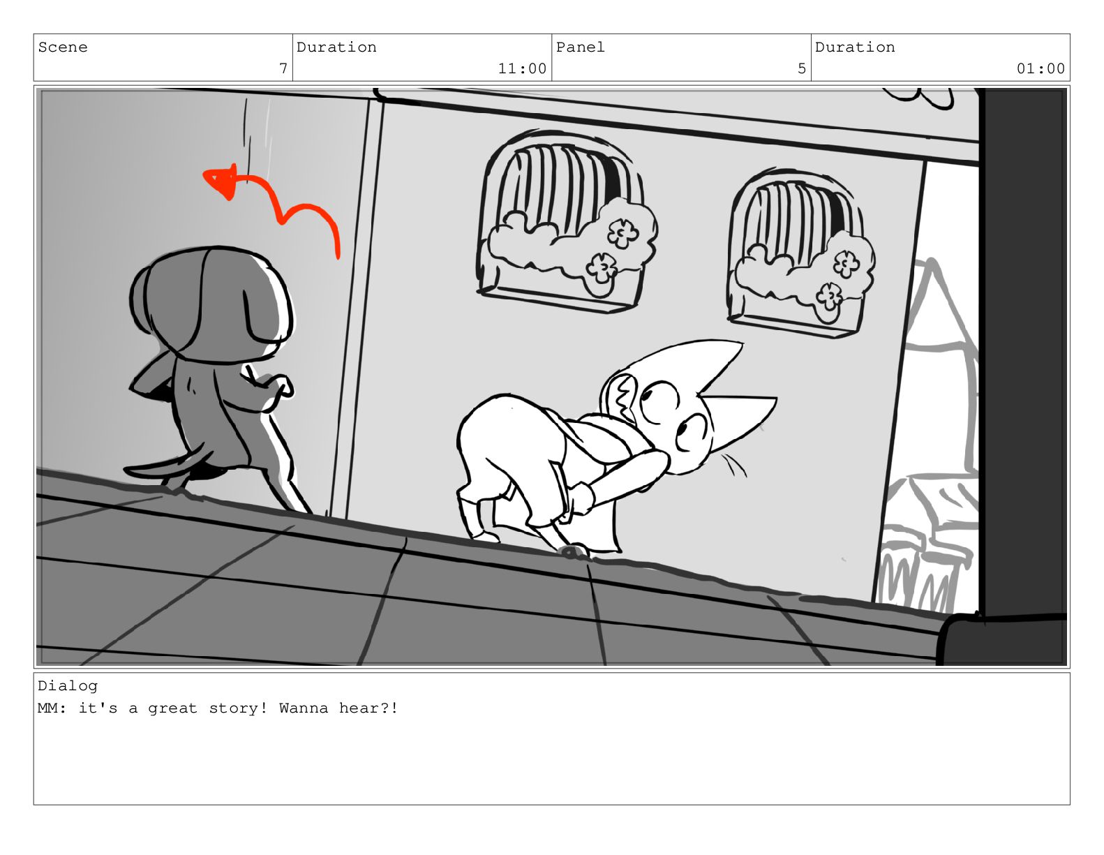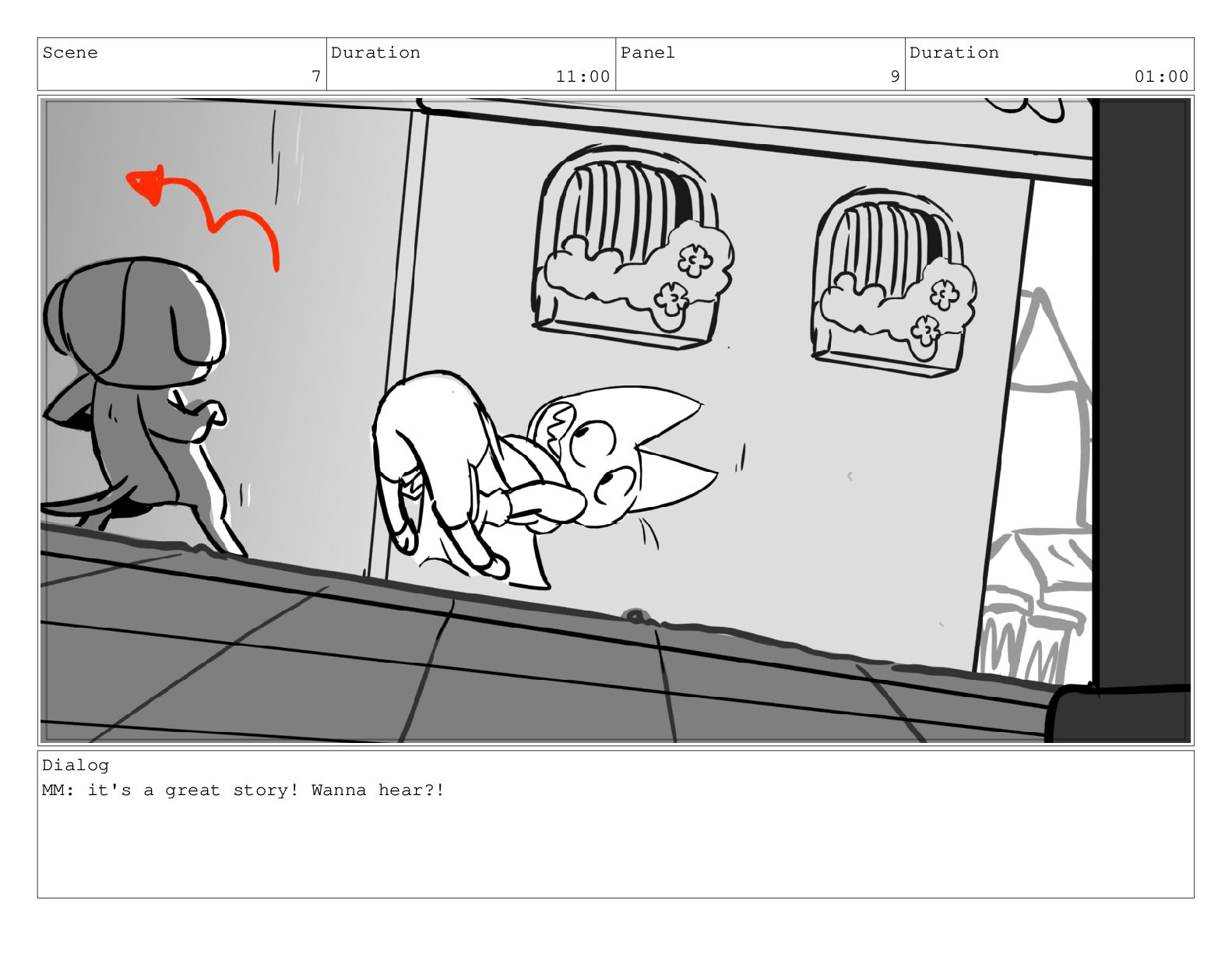 Scene 1 Duration 09:00 Panel 7 Duration 01:00 Dialog MM: