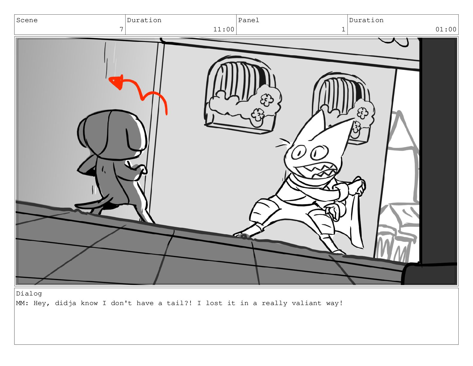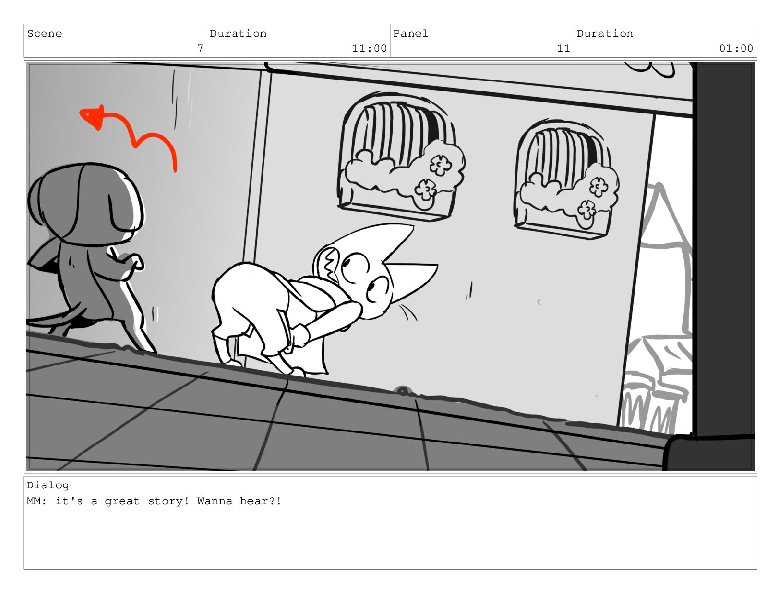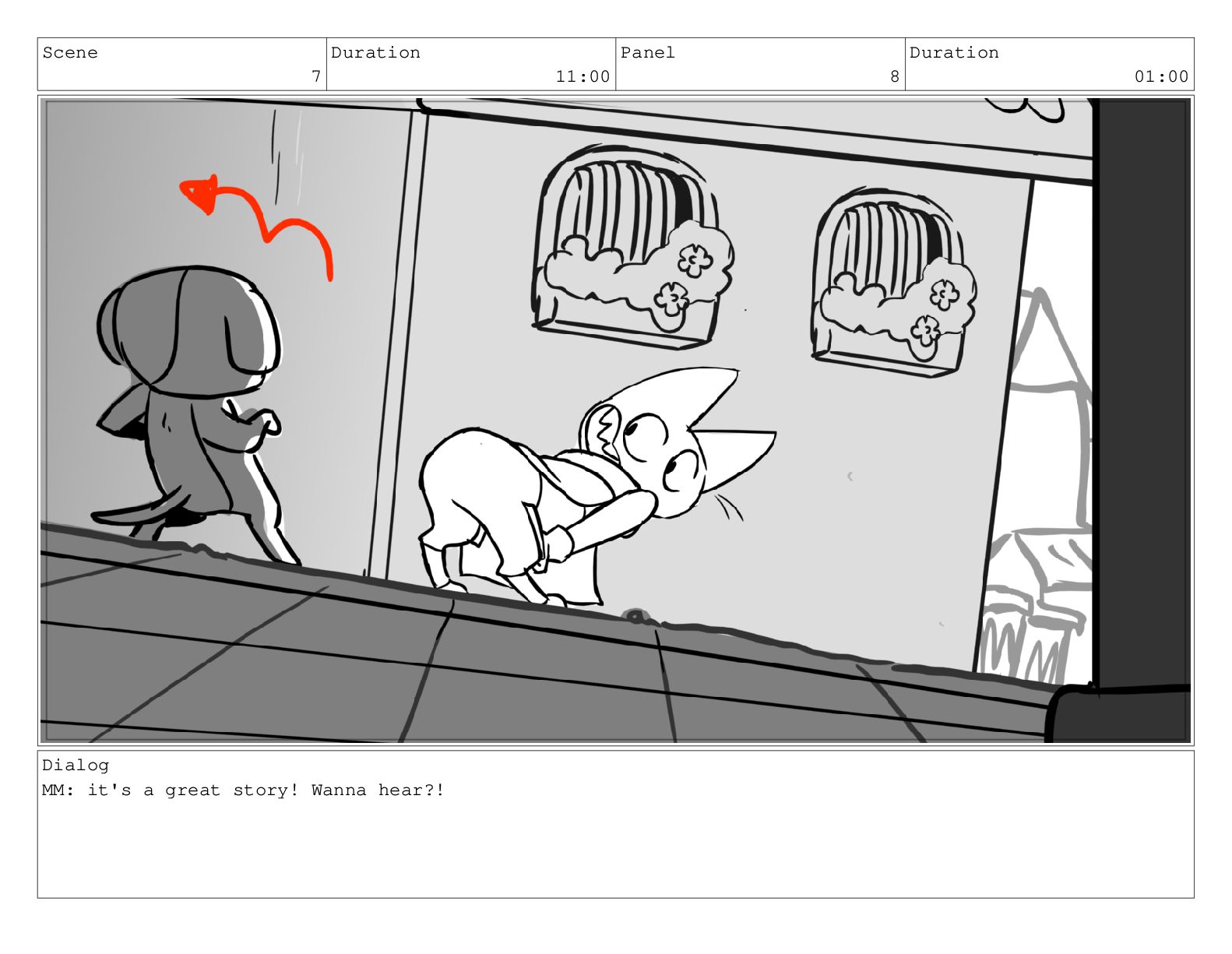 Scene 1 Duration 09:00 Panel 7 Duration 01:00 Dialog MM: