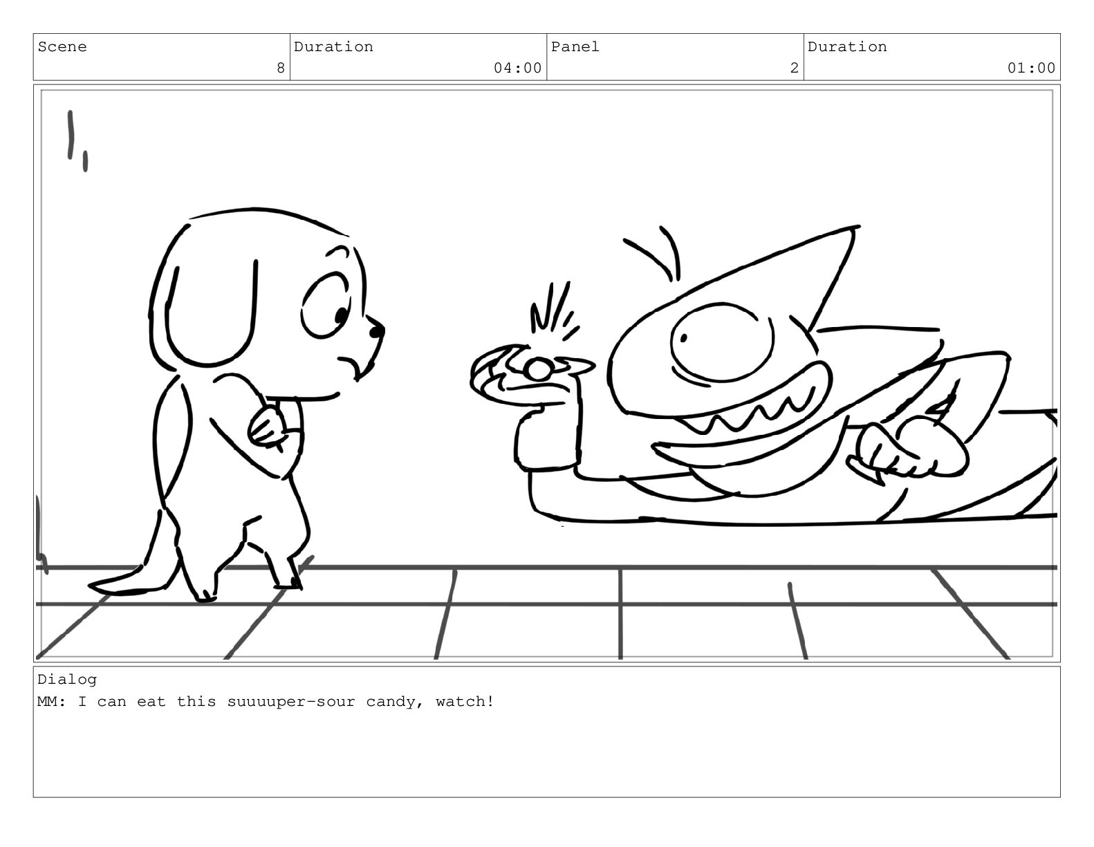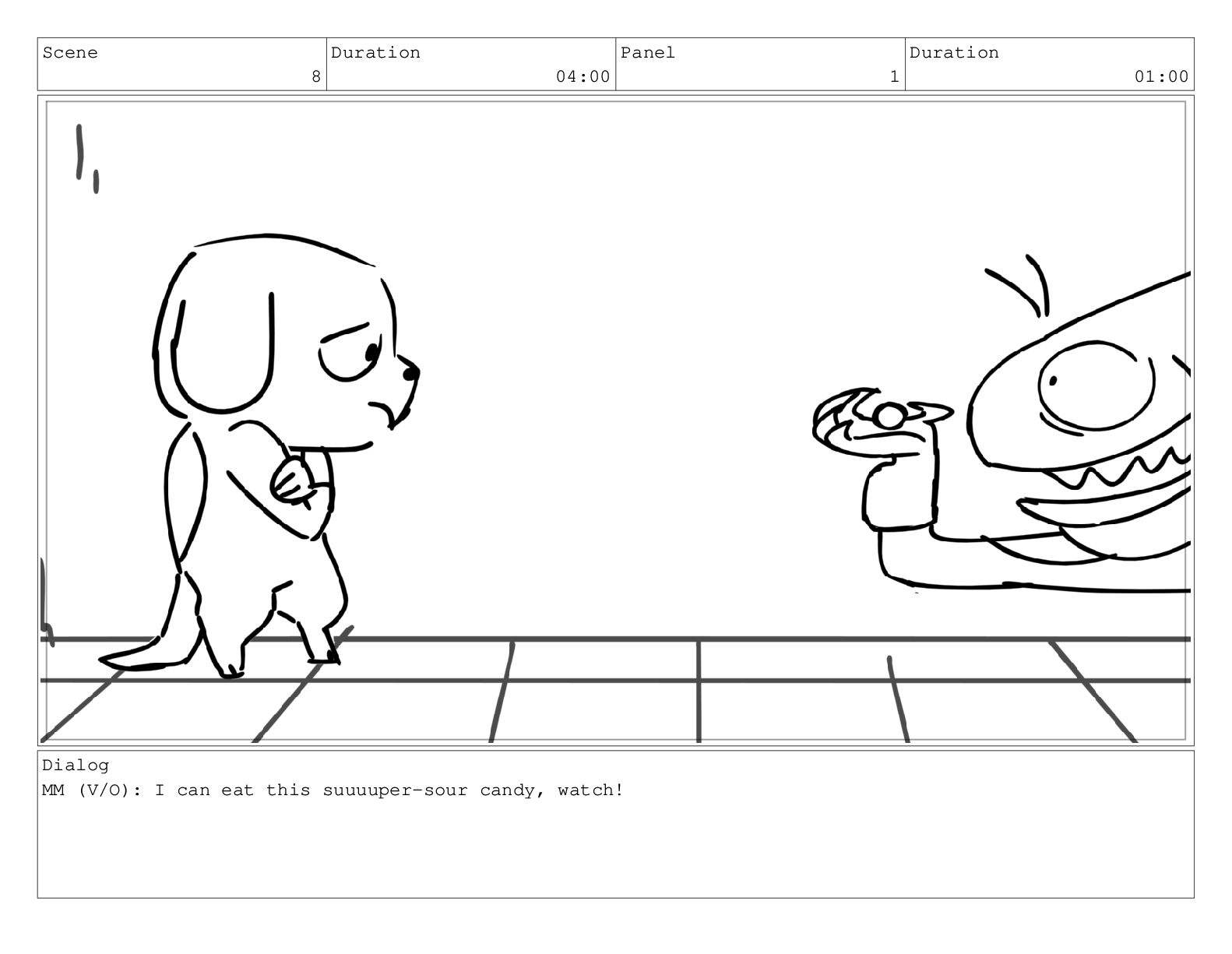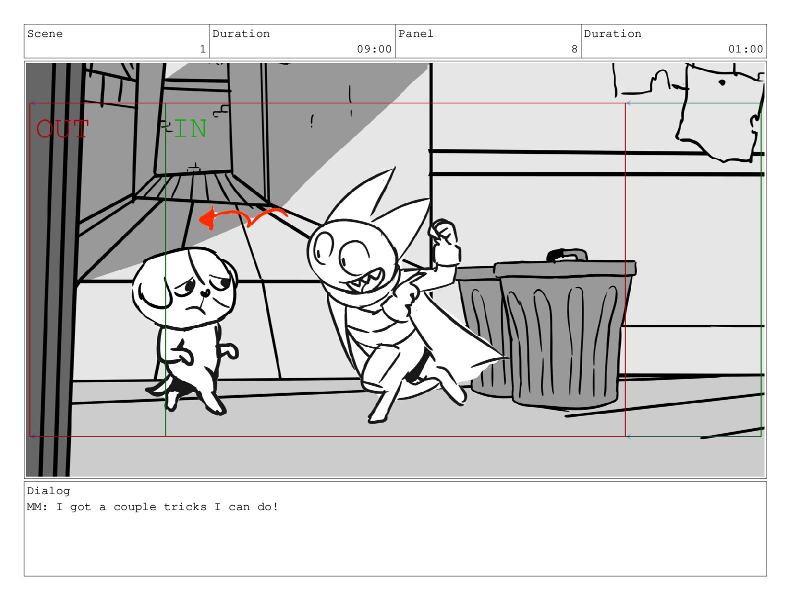 Scene 1 Duration 09:00 Panel 8 Duration 01:00 Dialog MM: