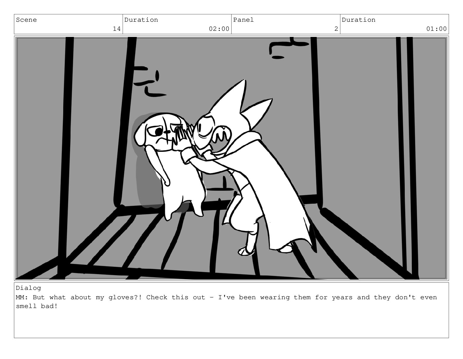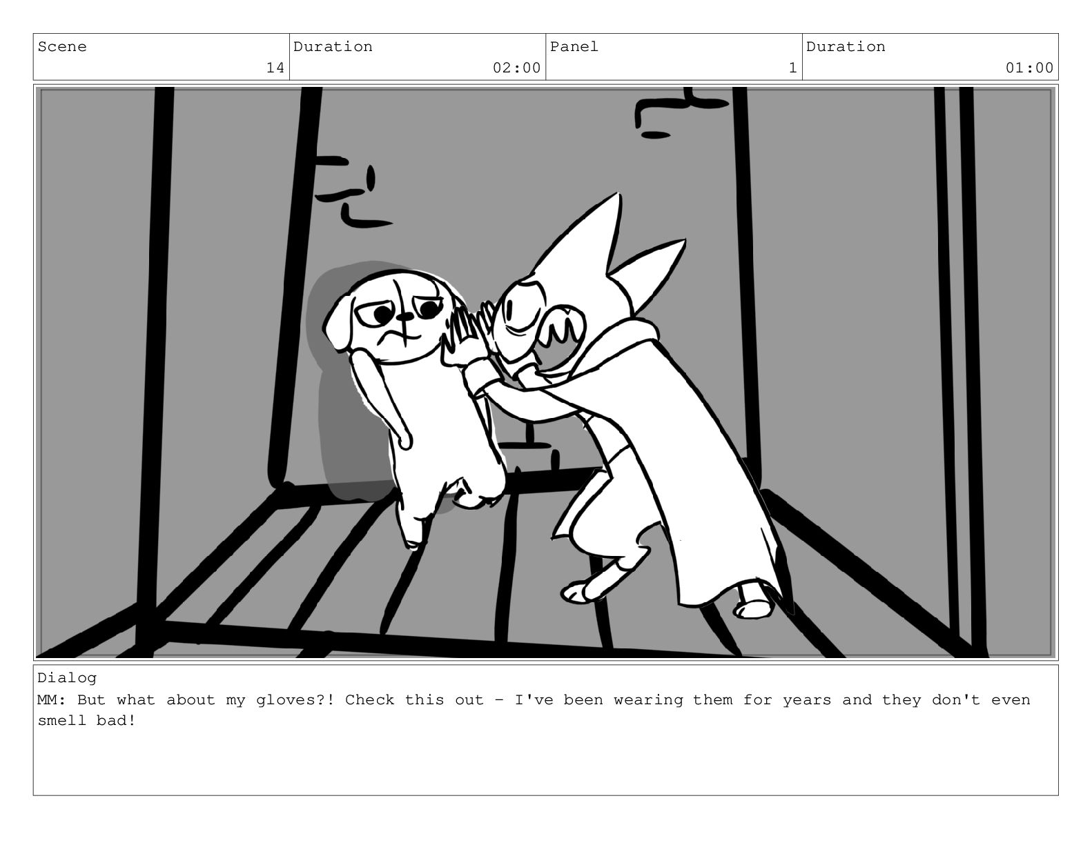 Scene 28 Duration 16:00 Panel 14 Duration 01:00 Dialog MM:
