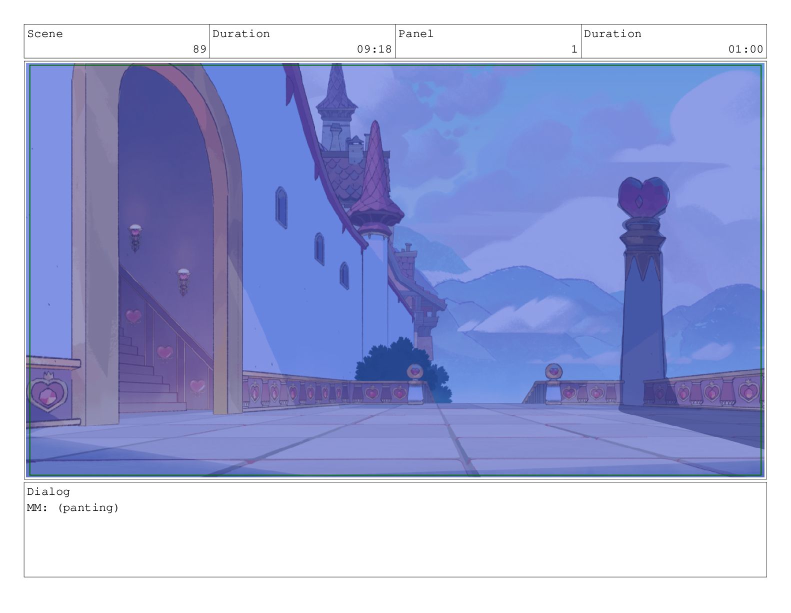 Scene 89 Duration 09:18 Panel 1 Duration 01:00 Dialog MM: