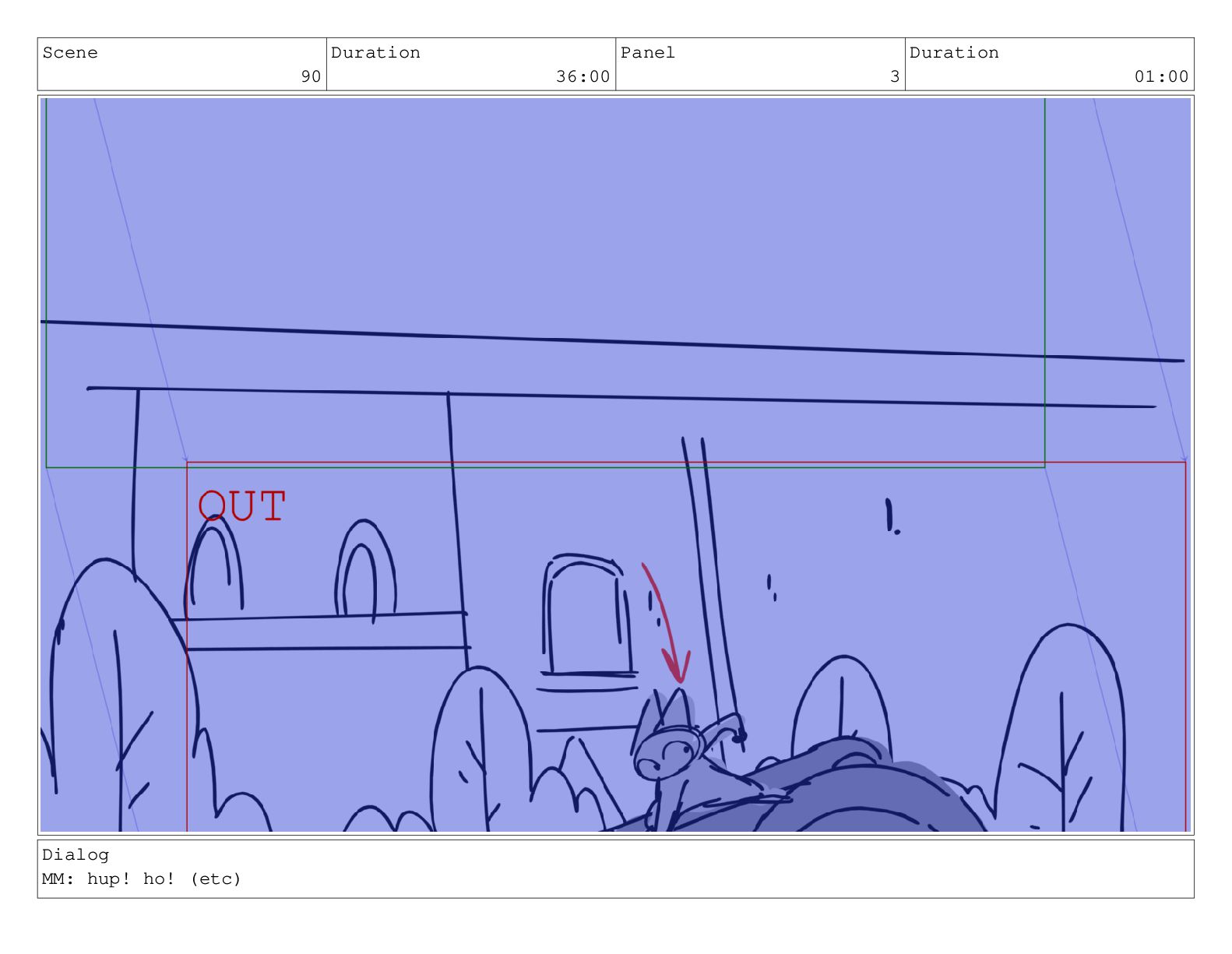 Scene 90 Duration 36:00 Panel 3 Duration 01:00 Dialog MM: