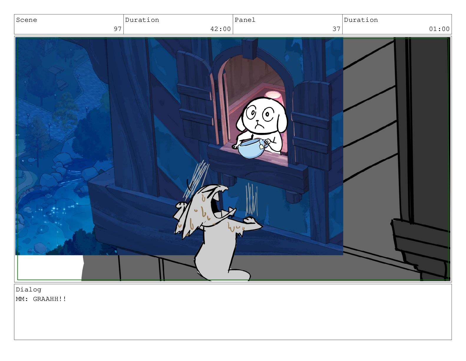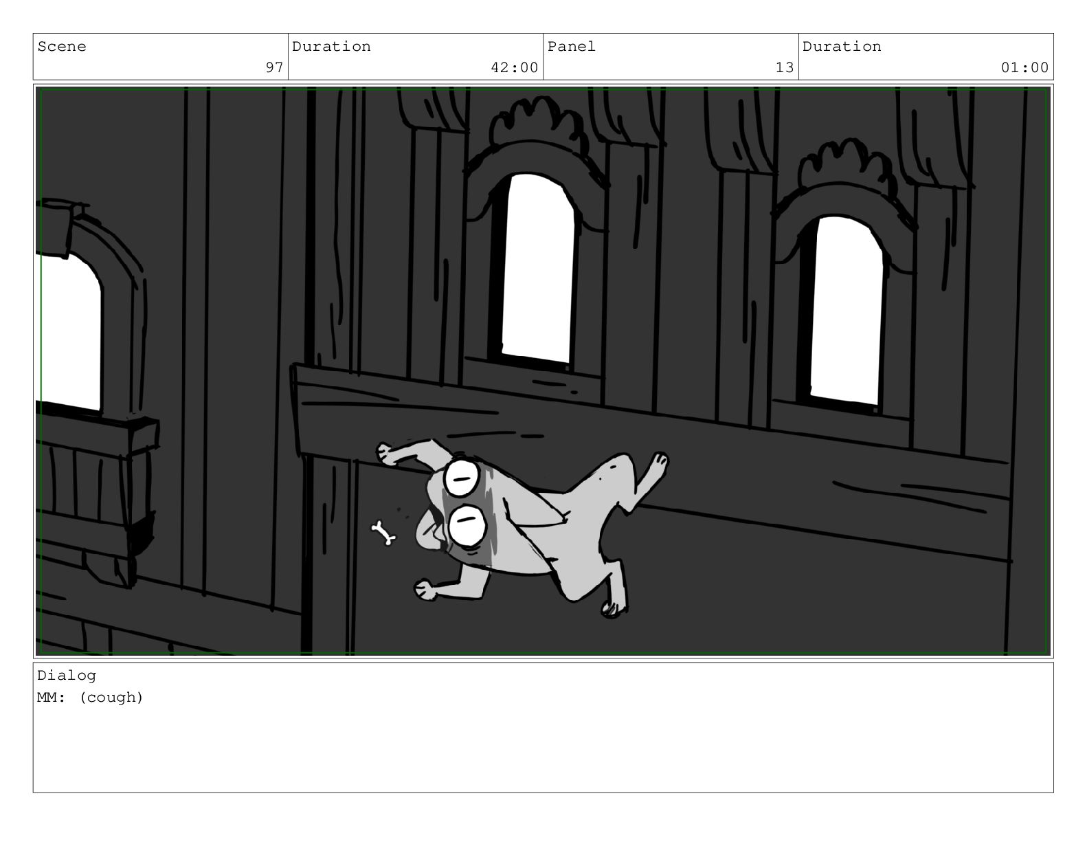 Scene 97 Duration 42:00 Panel 13 Duration 01:00 Dialog MM: