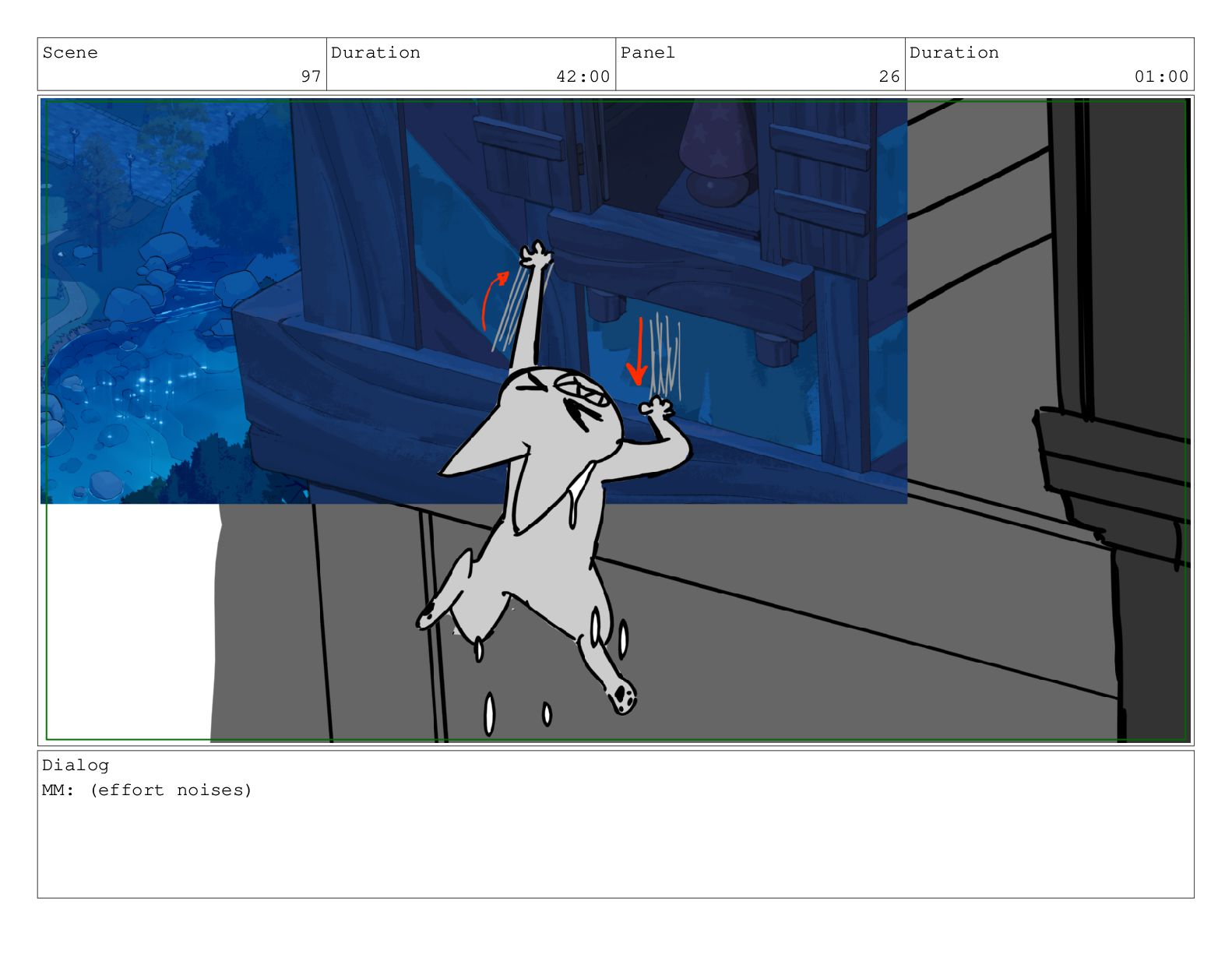 Scene 97 Duration 42:00 Panel 26 Duration 01:00 Dialog MM: