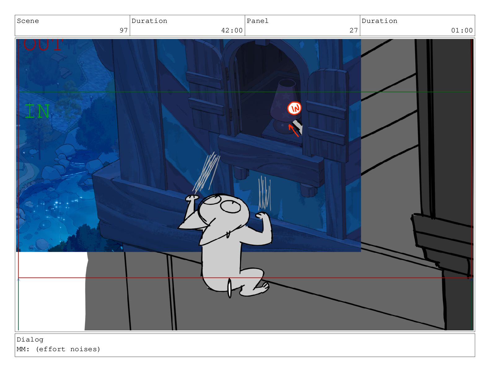Scene 97 Duration 42:00 Panel 27 Duration 01:00 Dialog MM: