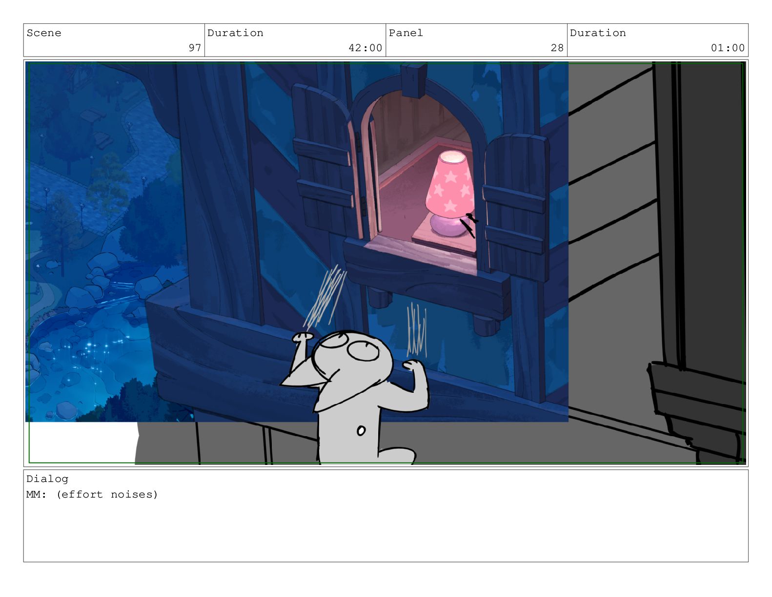 Scene 97 Duration 42:00 Panel 28 Duration 01:00 Dialog MM: