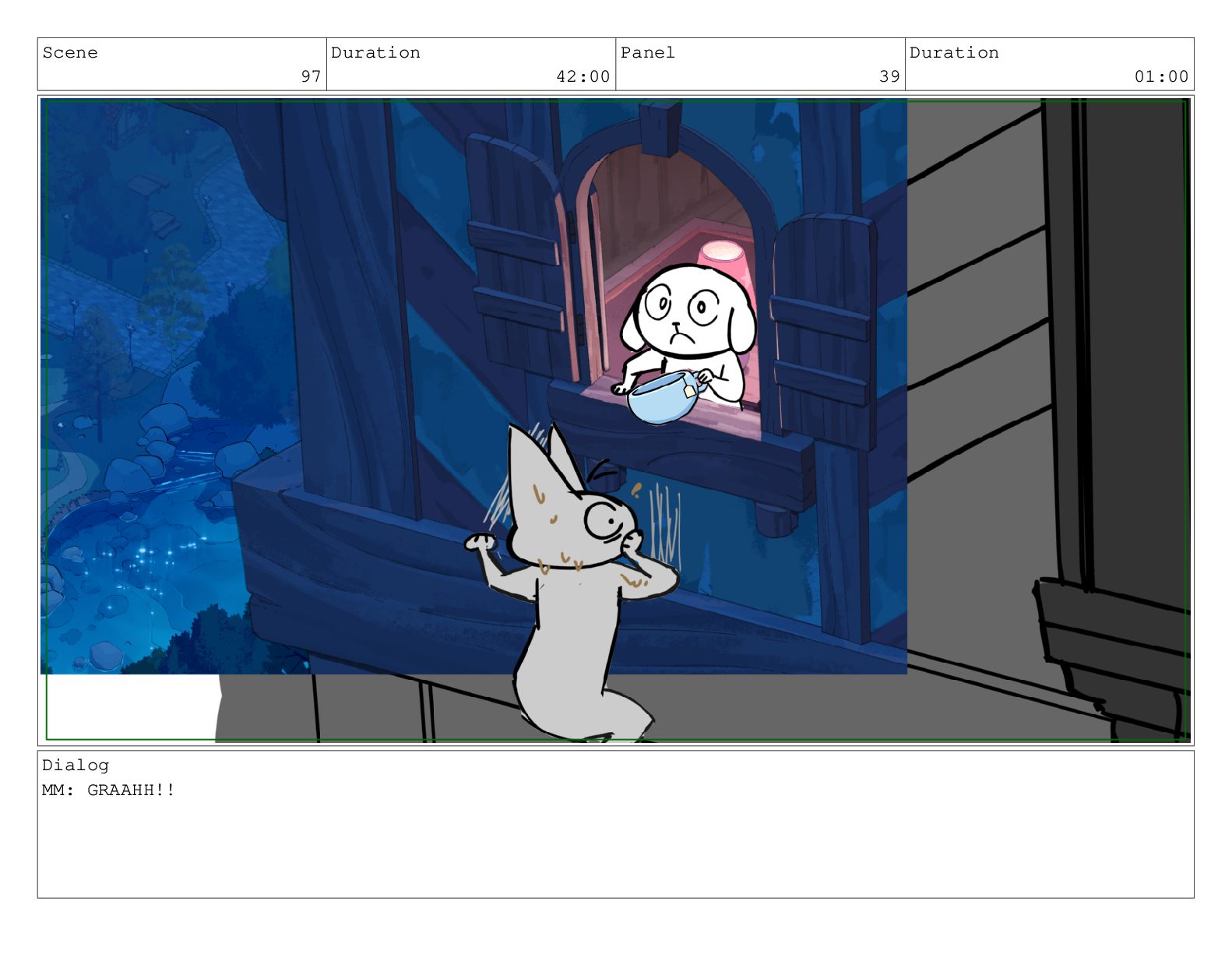 Scene 97 Duration 42:00 Panel 39 Duration 01:00 Dialog MM: